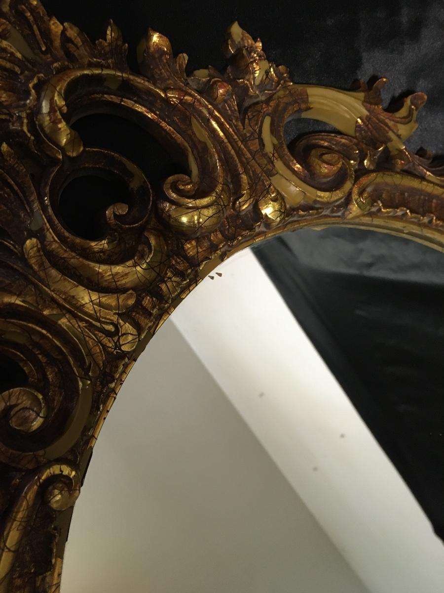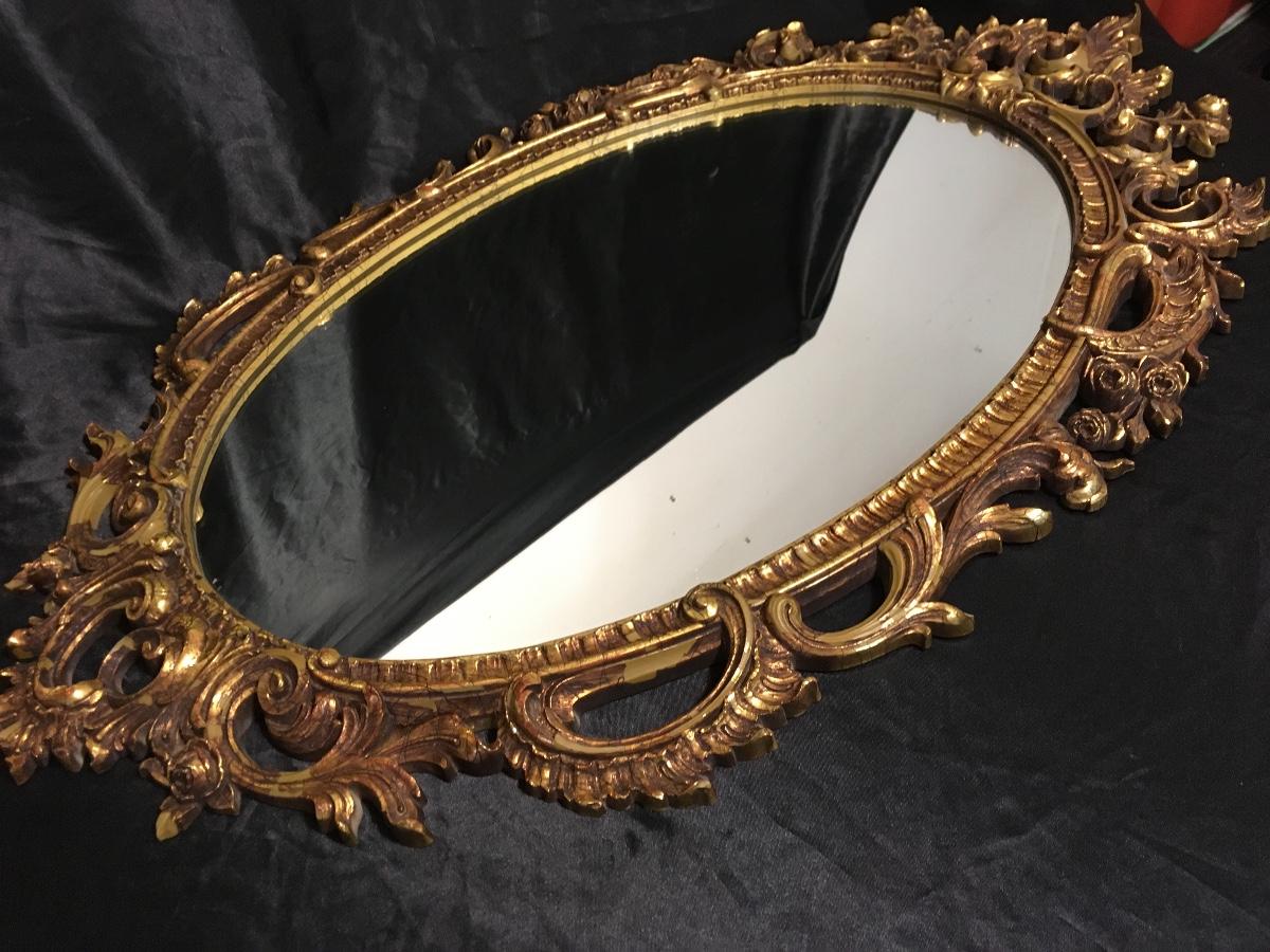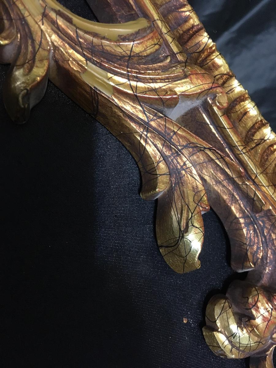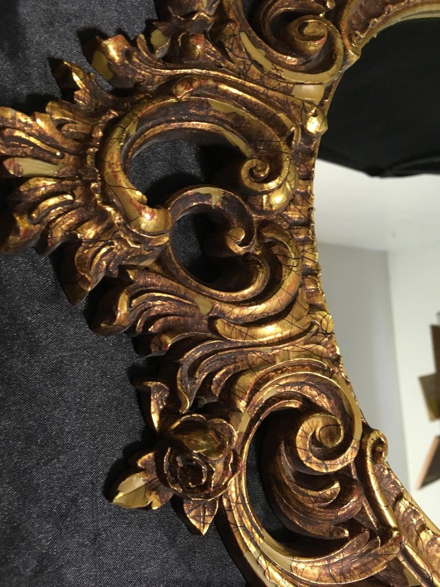 L 38 - wide 23. Heavy. Mirror Excellent. Has Flaking paint on several places on Frame Due to age Gorgeous No breaks