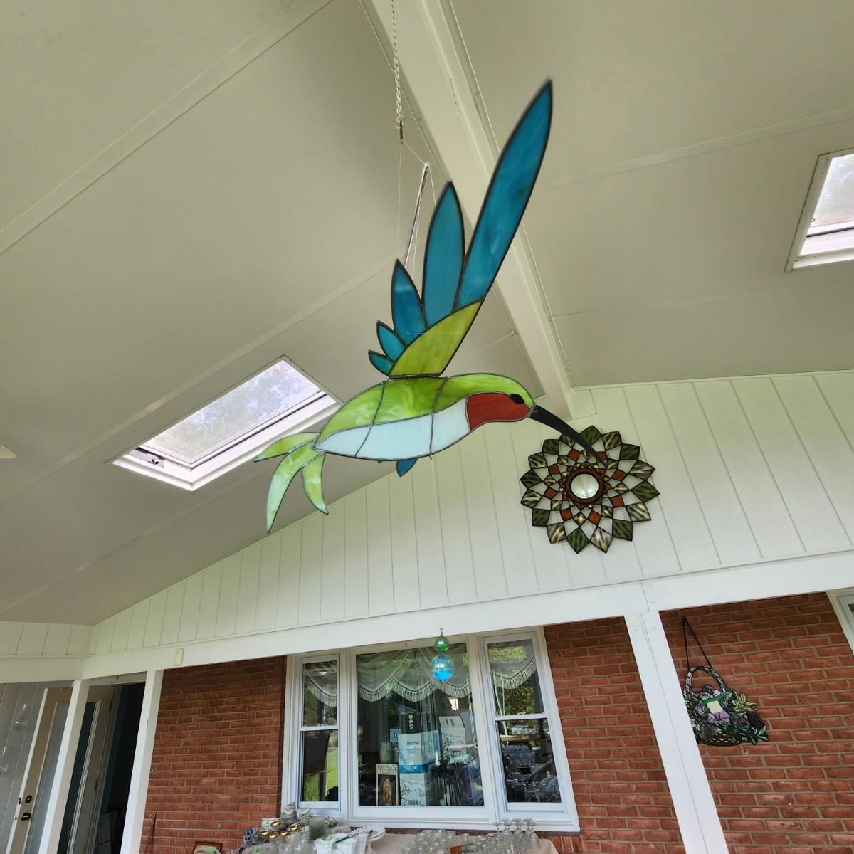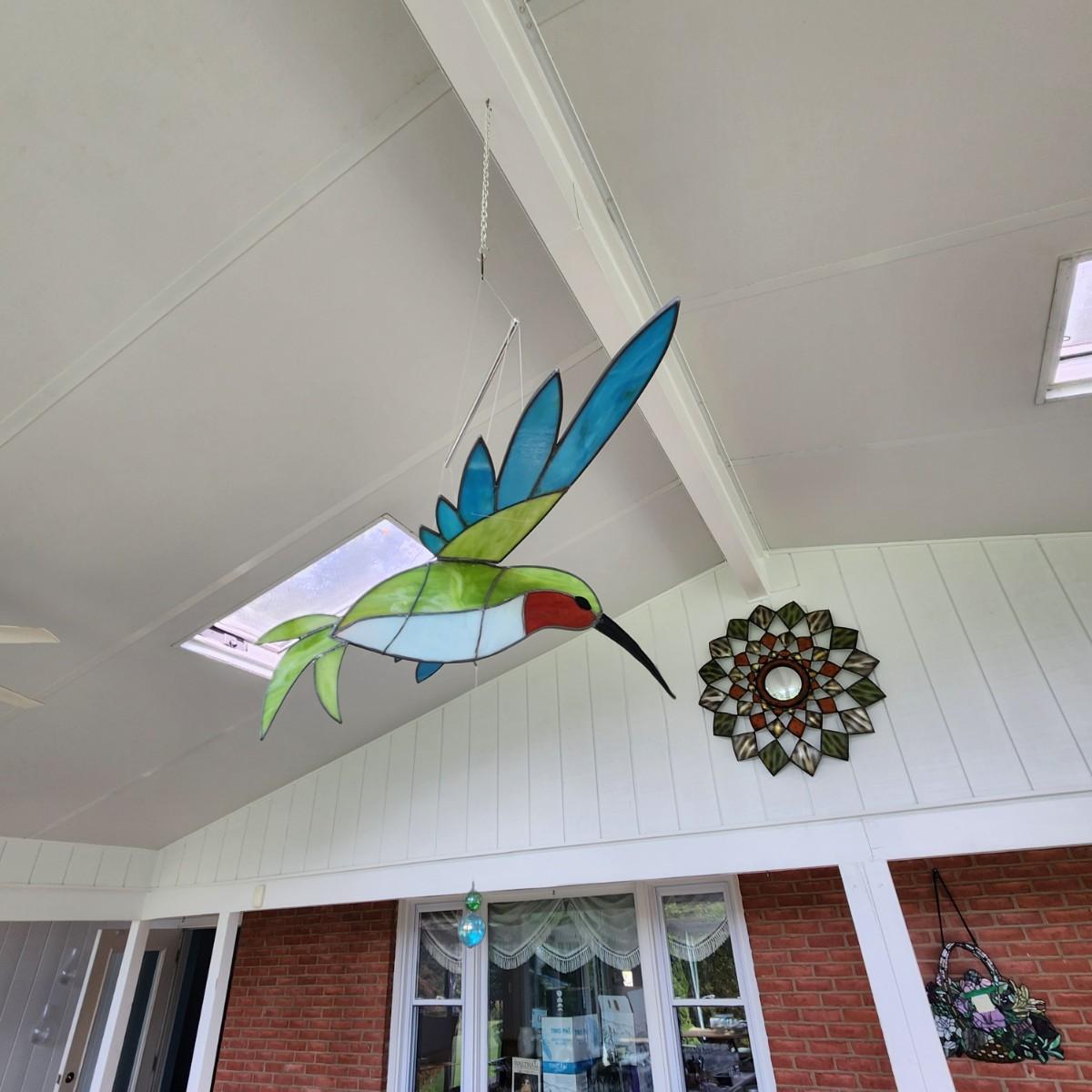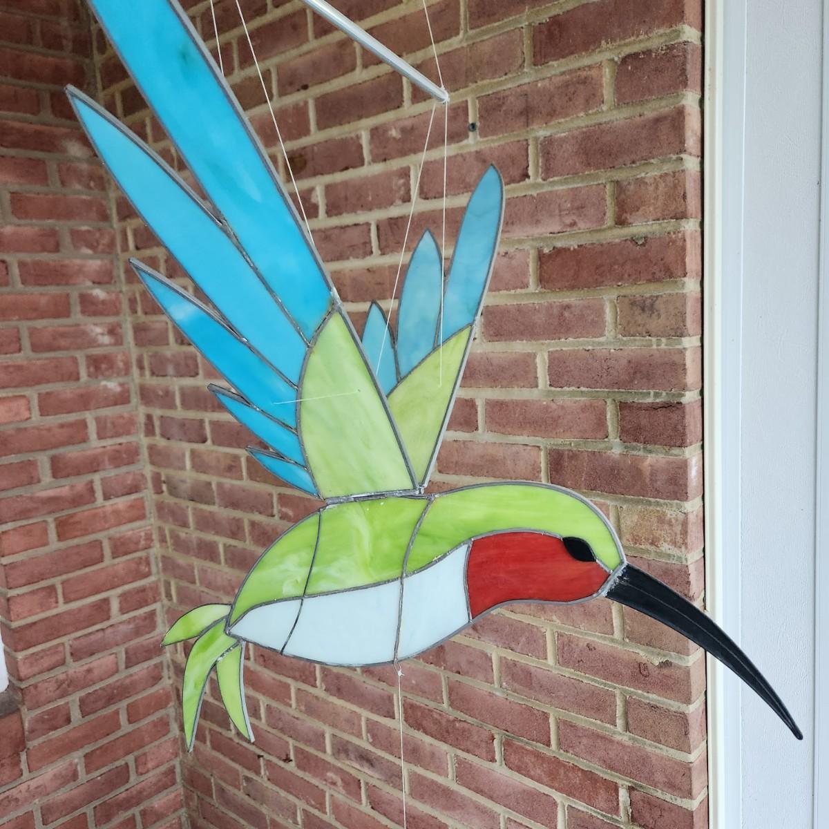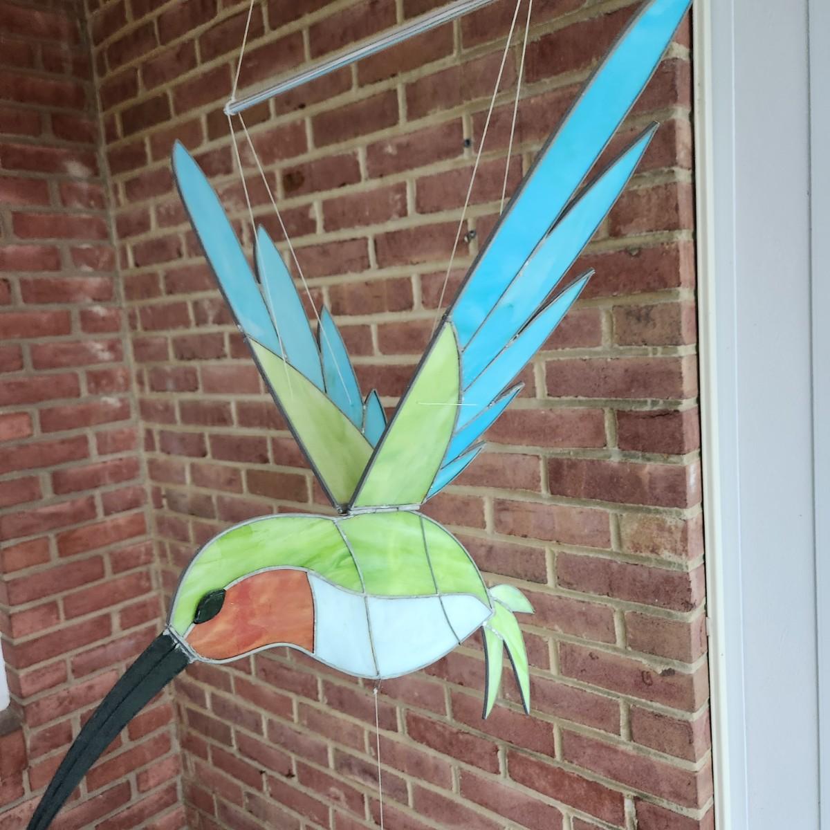 Large Hanging Stained Glass Flying Hummingbird Bird 19x32