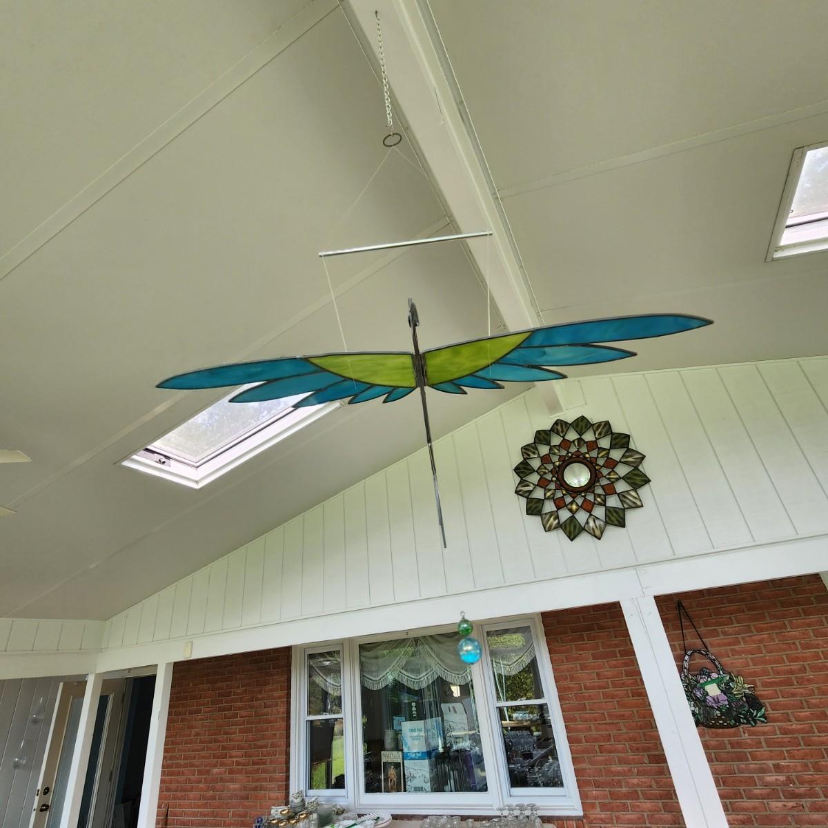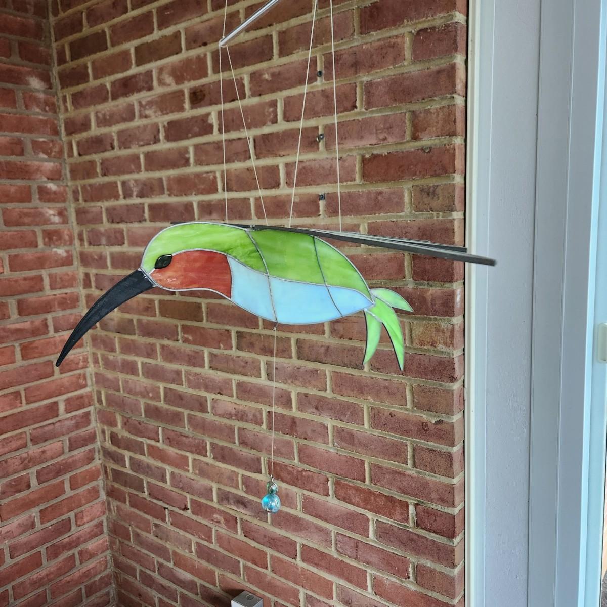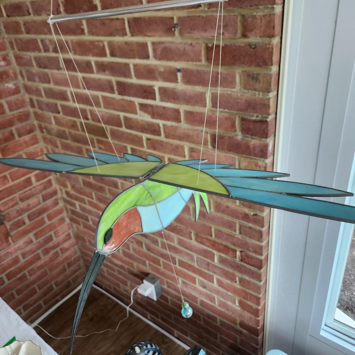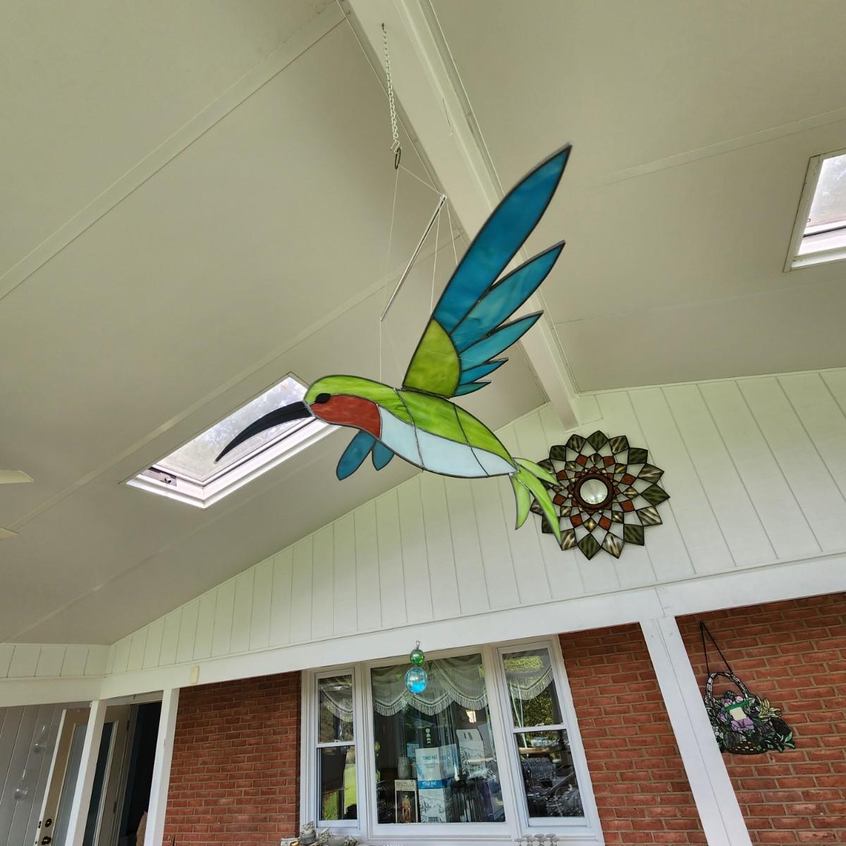 Large Hanging Stained Glass Flying Hummingbird Bird 19x32