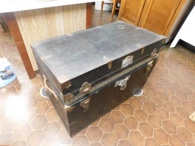 Large Hard Case Steamer Trunk with Tray 32"x22"