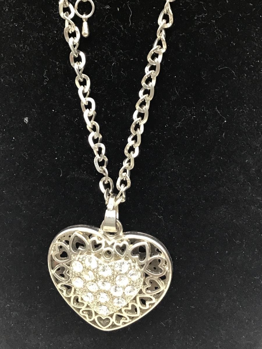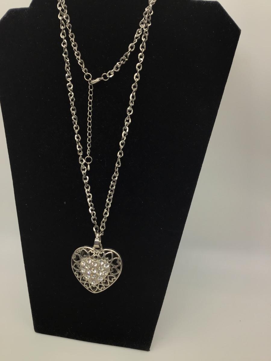 Large Heart Necklace Silver Tone