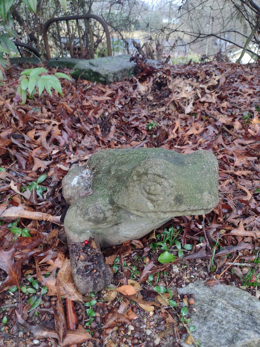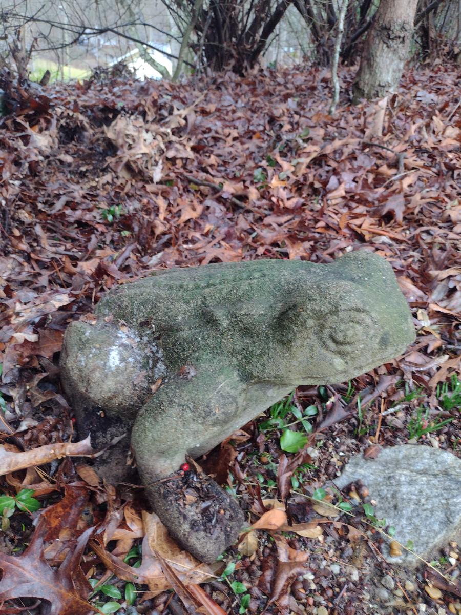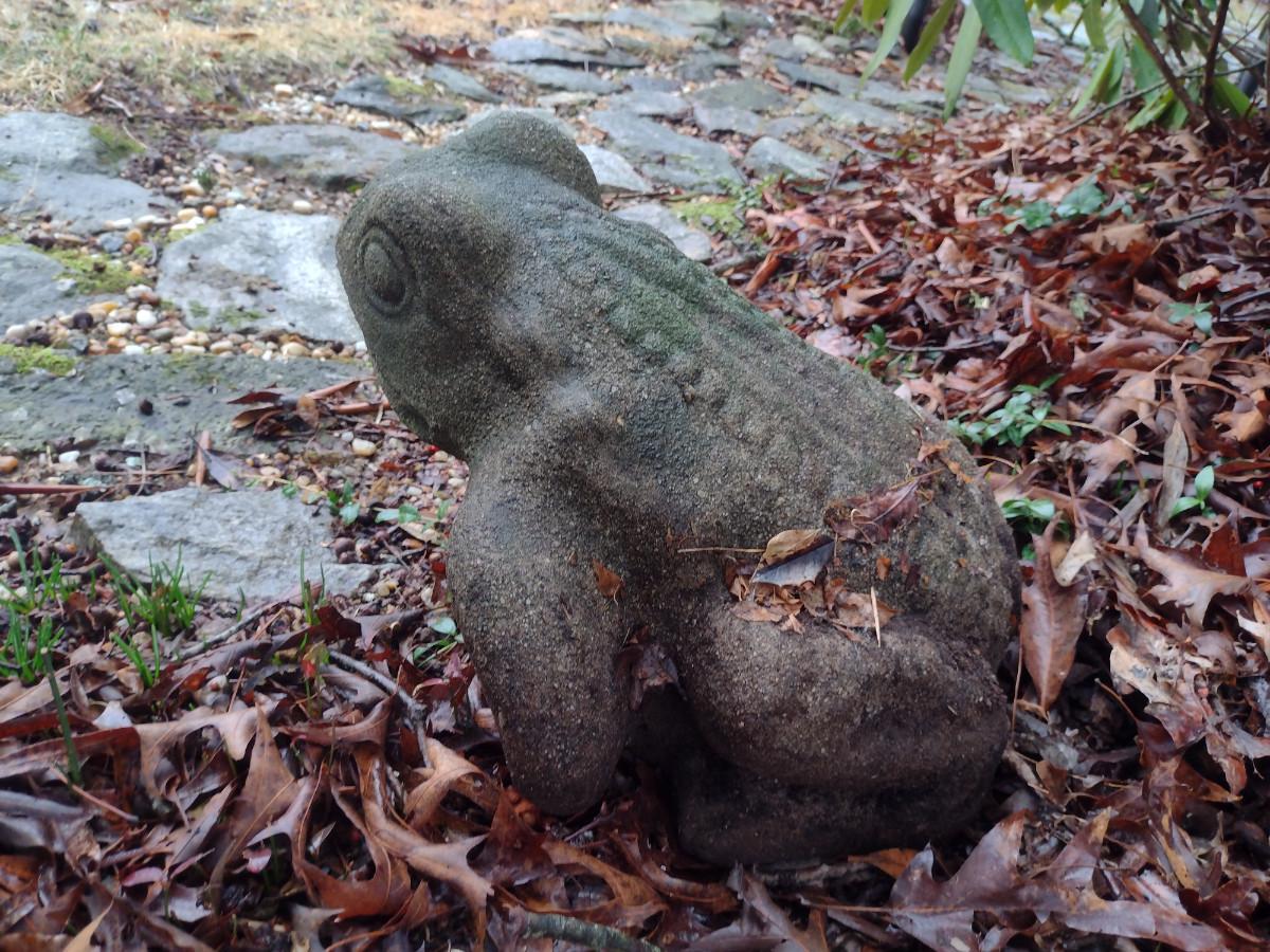 Large, Heavy Concrete Frog Statue. Approx 12" tall, 13" wide.