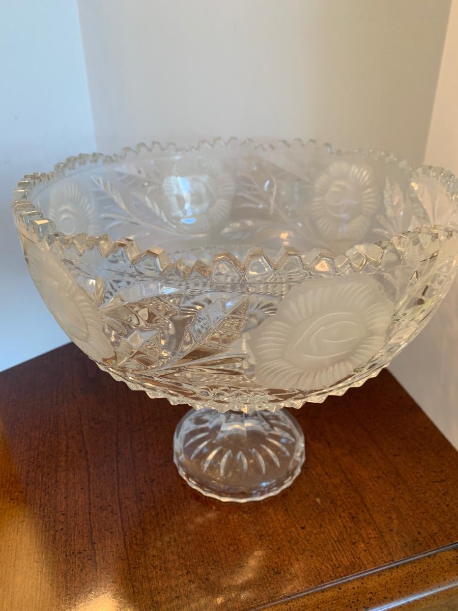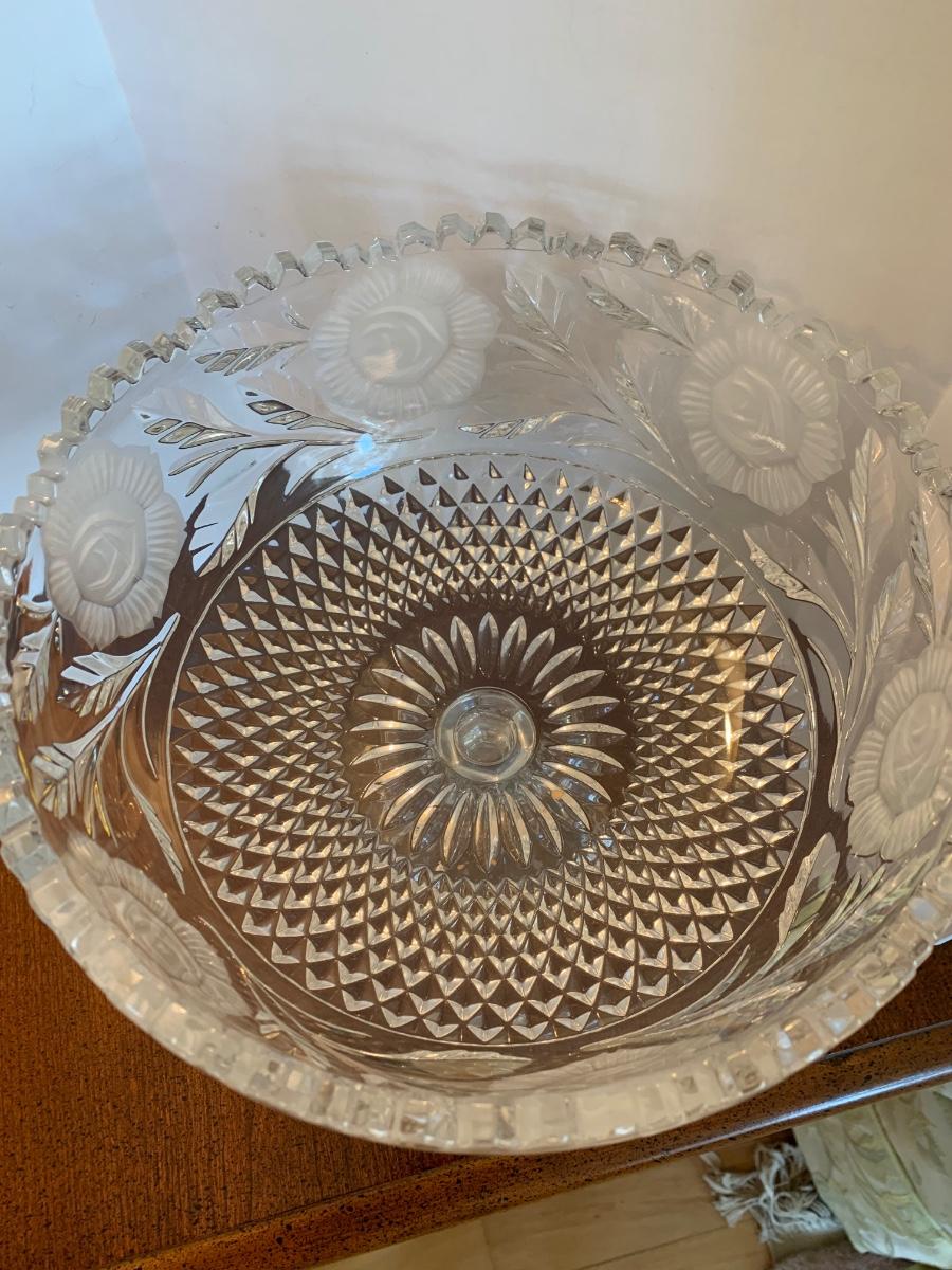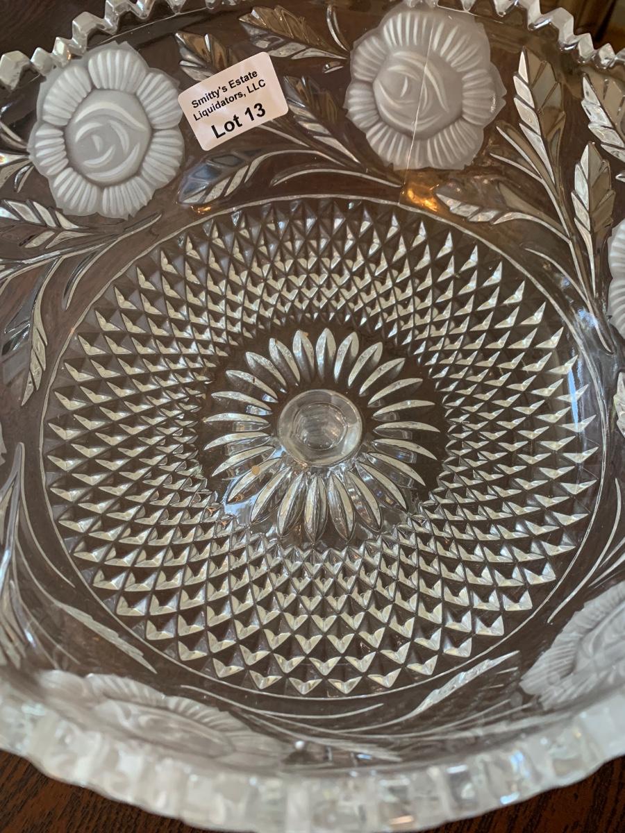 Large Heavy Cut Glass Centerpiece Raised Bowl - LOT 13