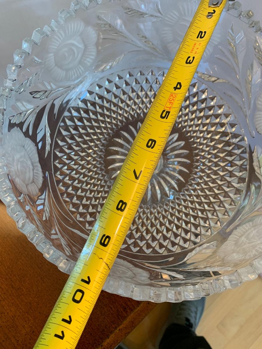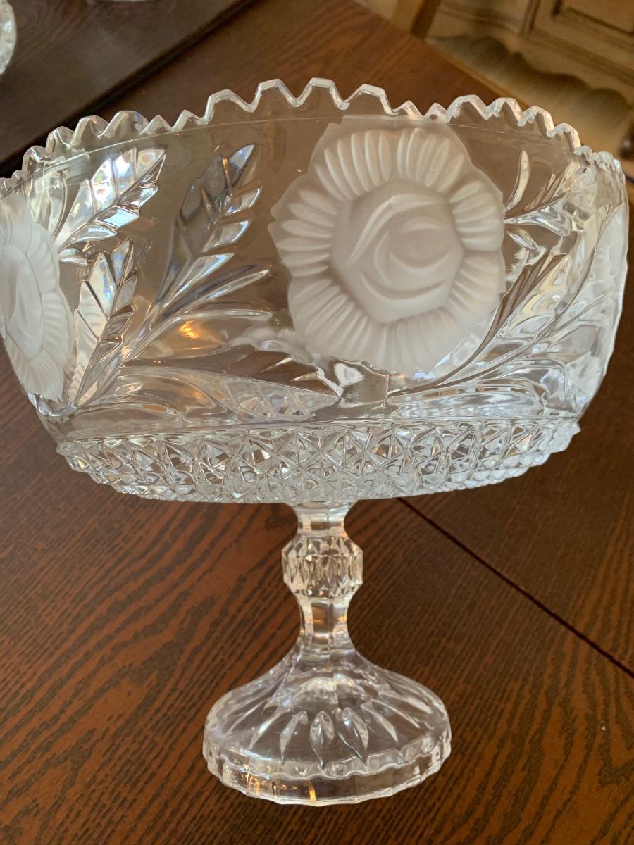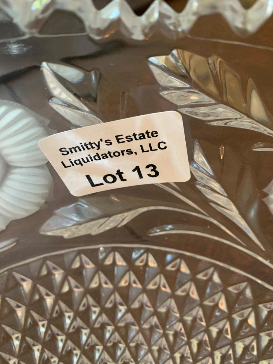 Large Heavy Cut Glass Centerpiece Raised Bowl - LOT 13