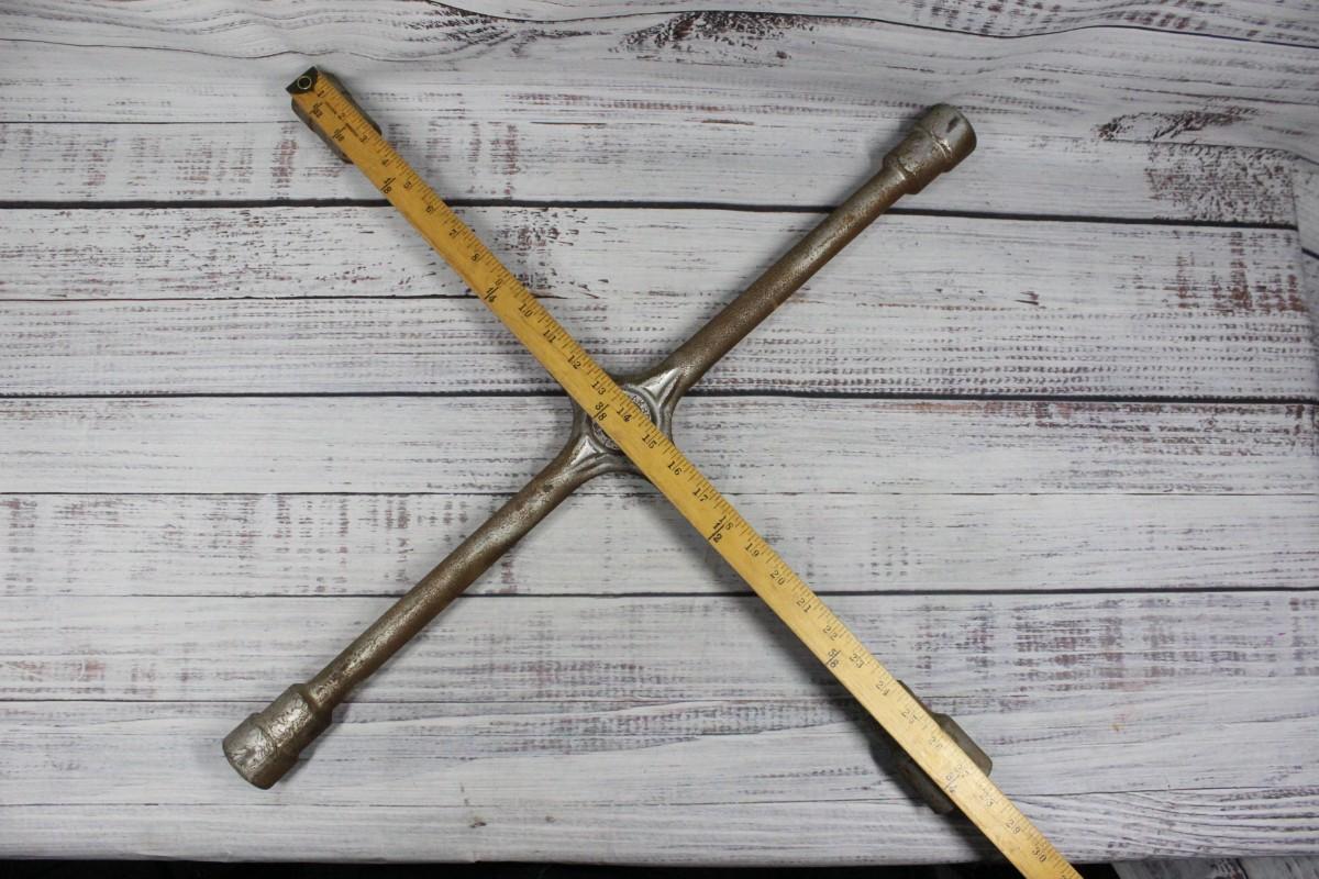 Heavy Duty Lug Wrench 4 Way Cross Wrench, there are no bends or dented areas on the tool and is in good working condition. Measures 28" across, check pictures for more details.