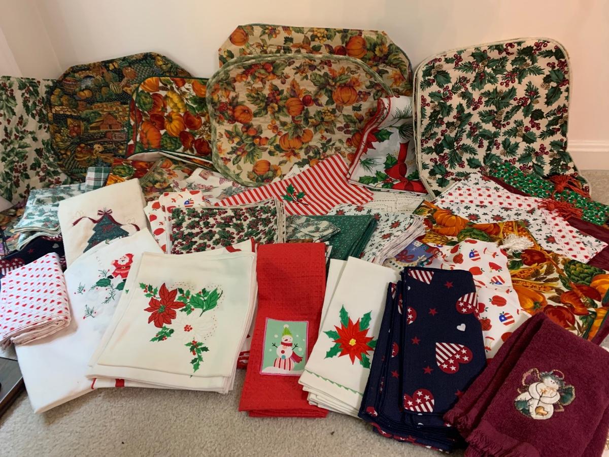 Large Holiday Dining Linens Lot Table Runners Napkins Placemats - Lot 210