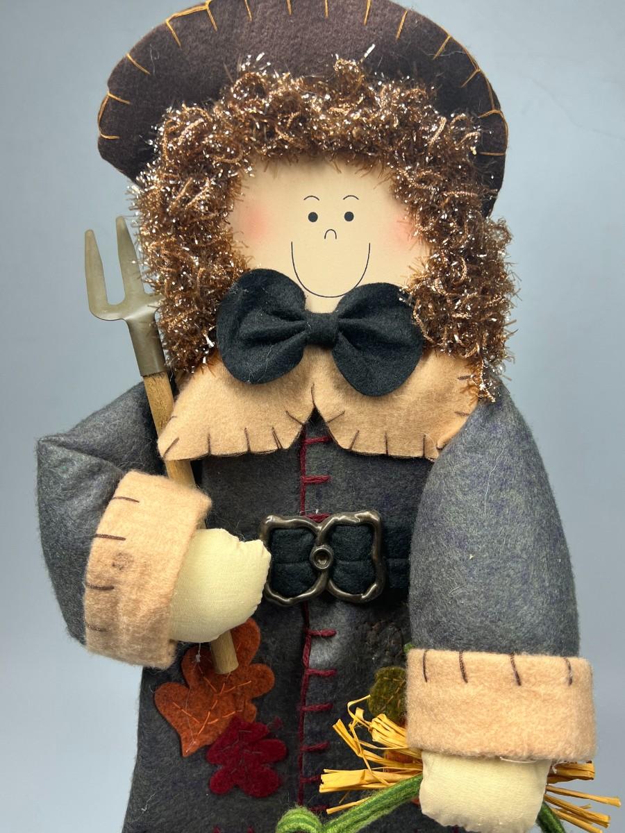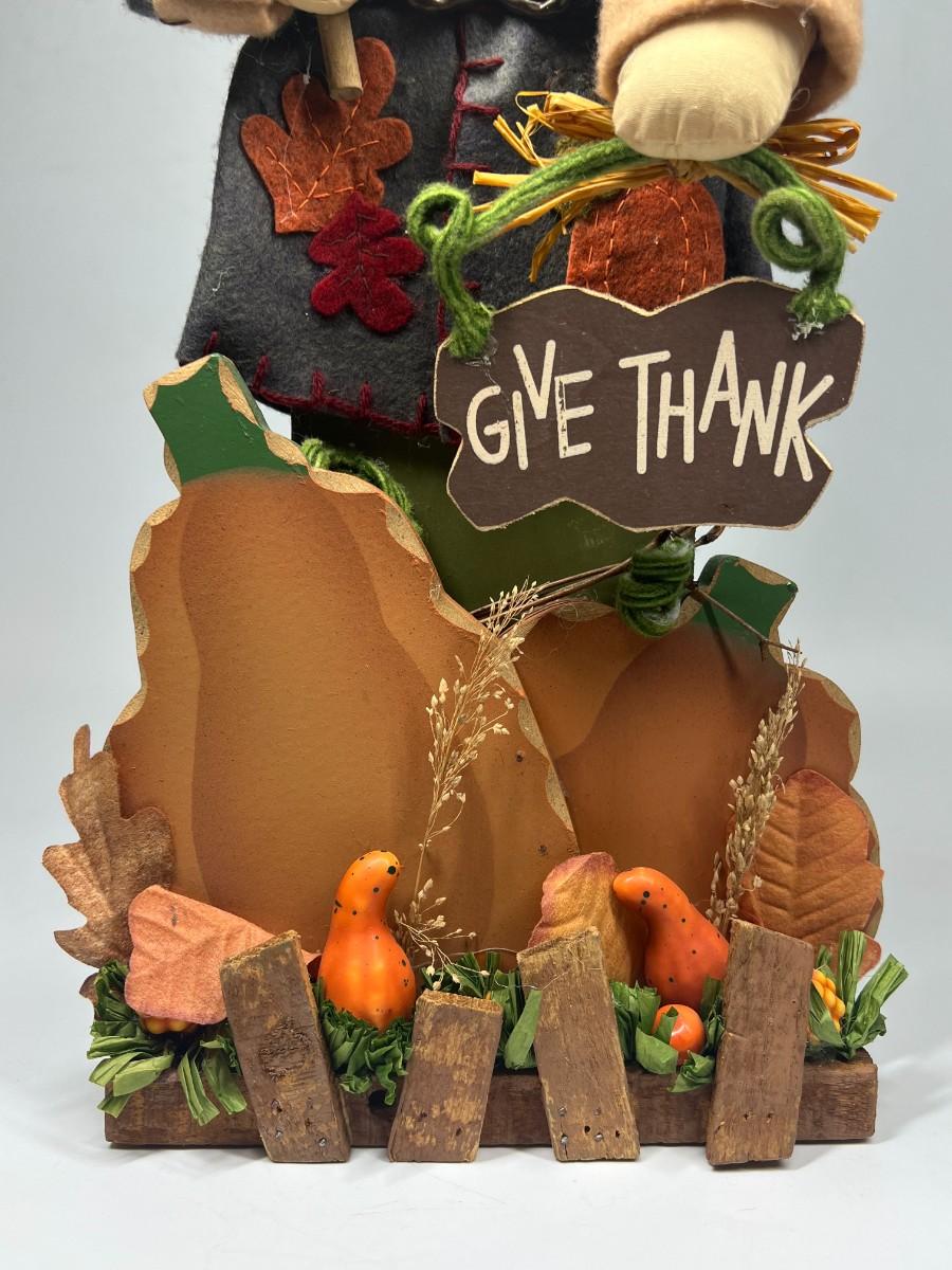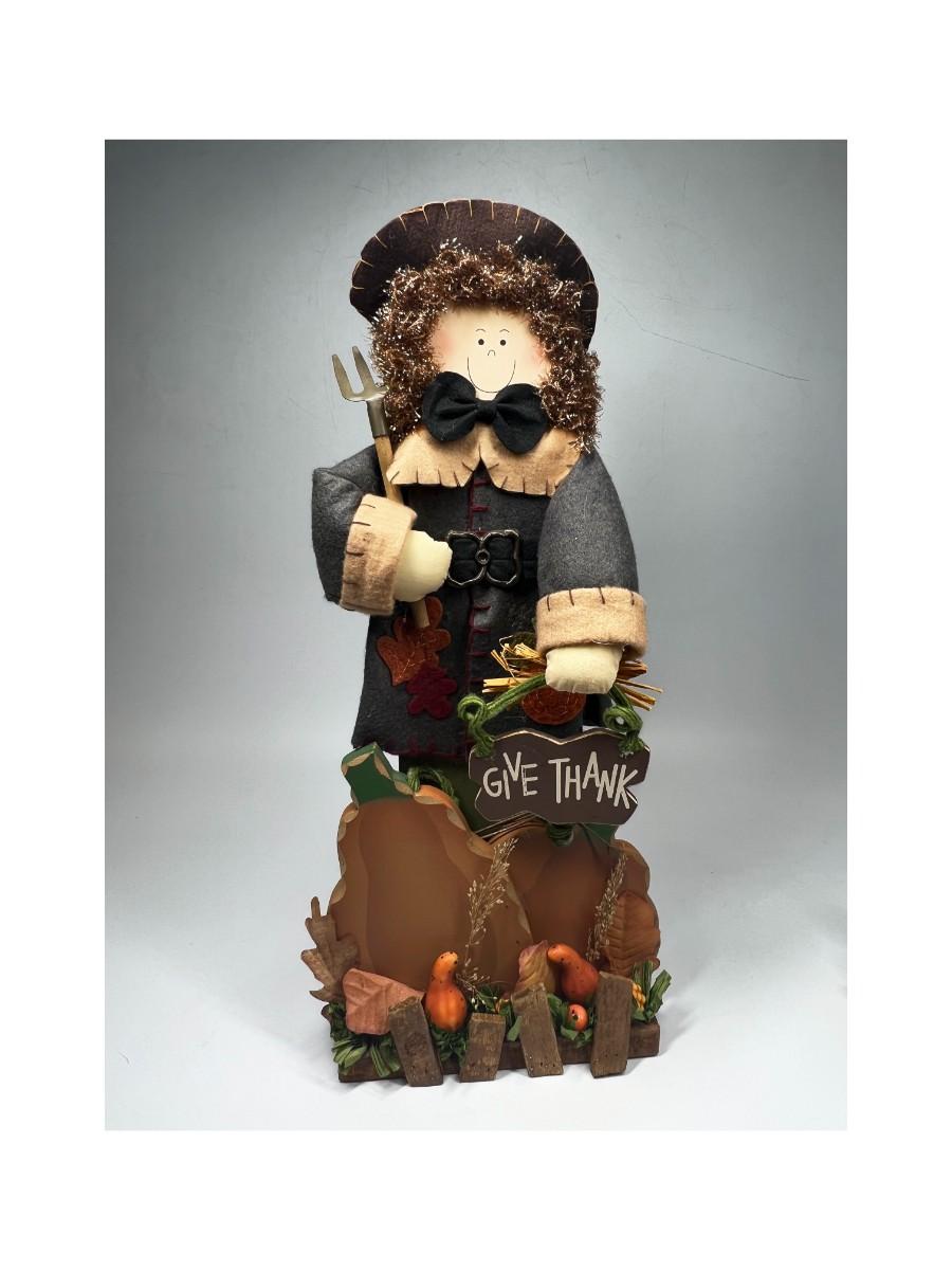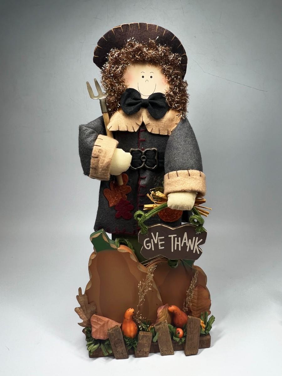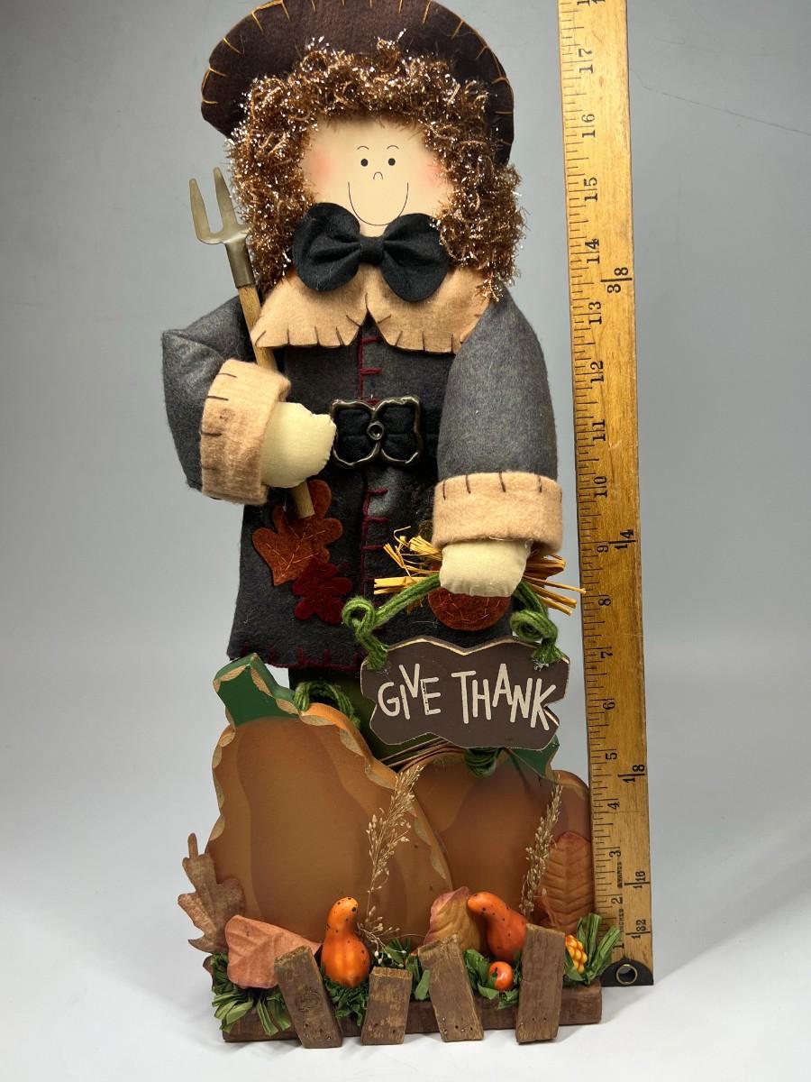 Large Holiday Home Decor Give Thanks Autumn Thanksgivng Felt & Wood Pilgrim Figurine
