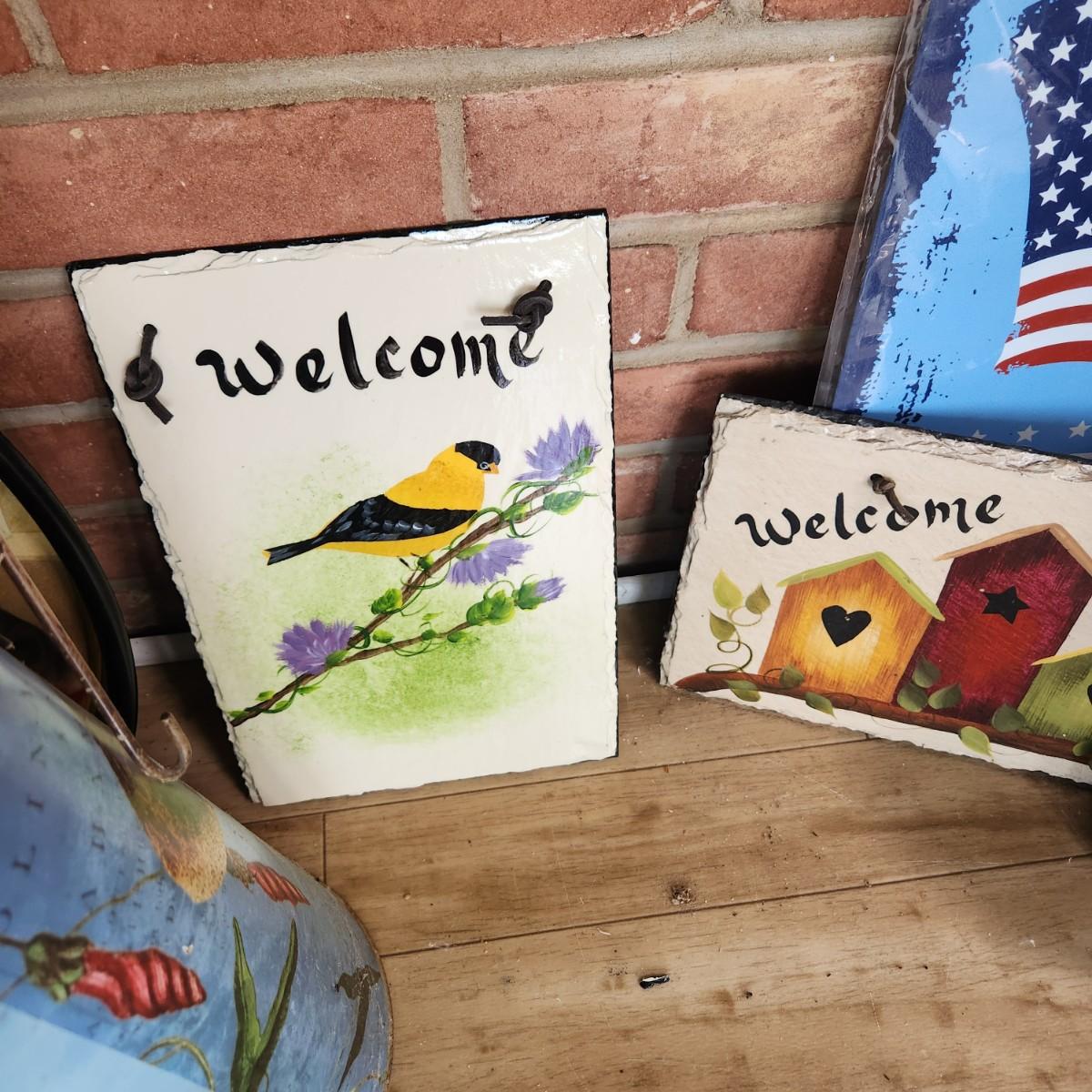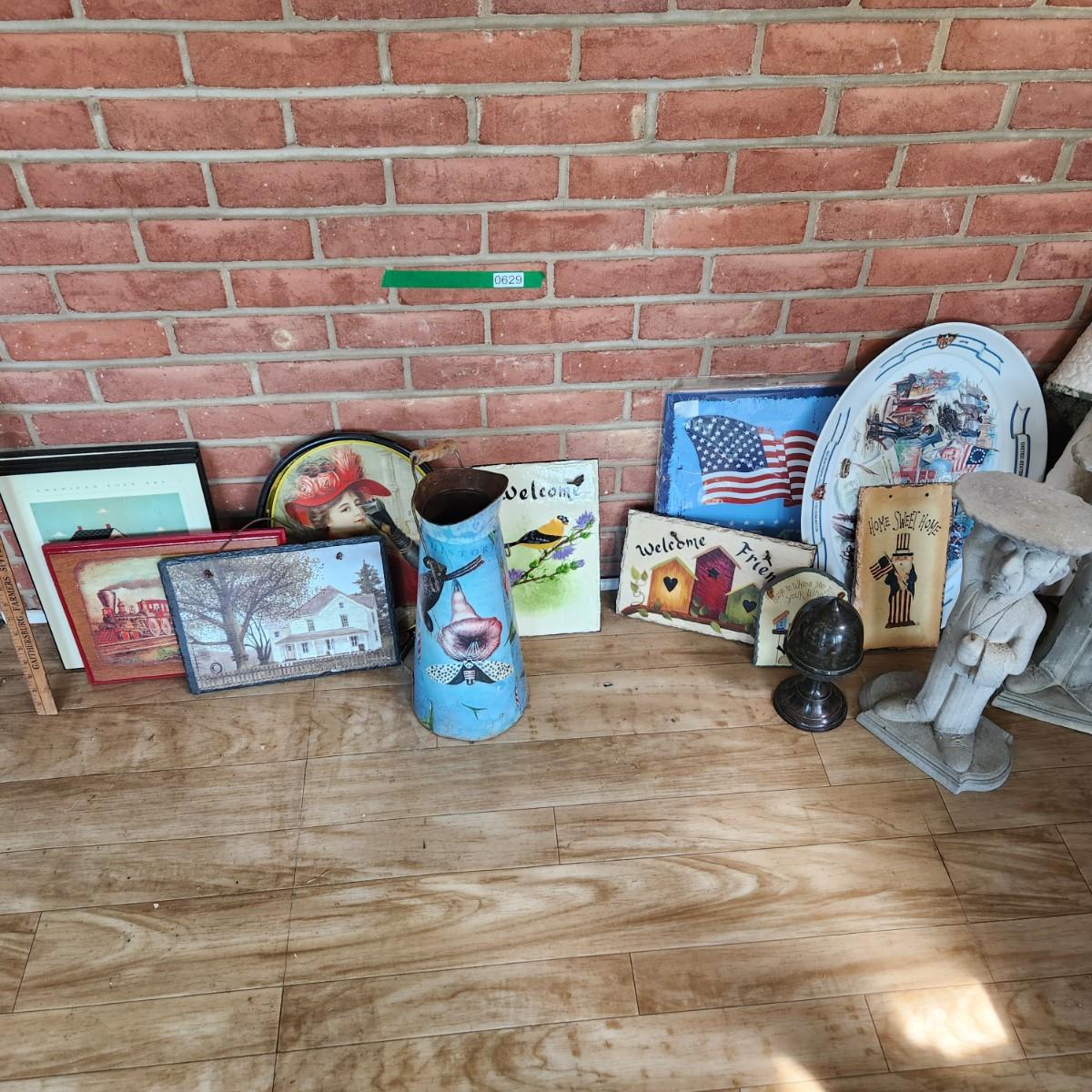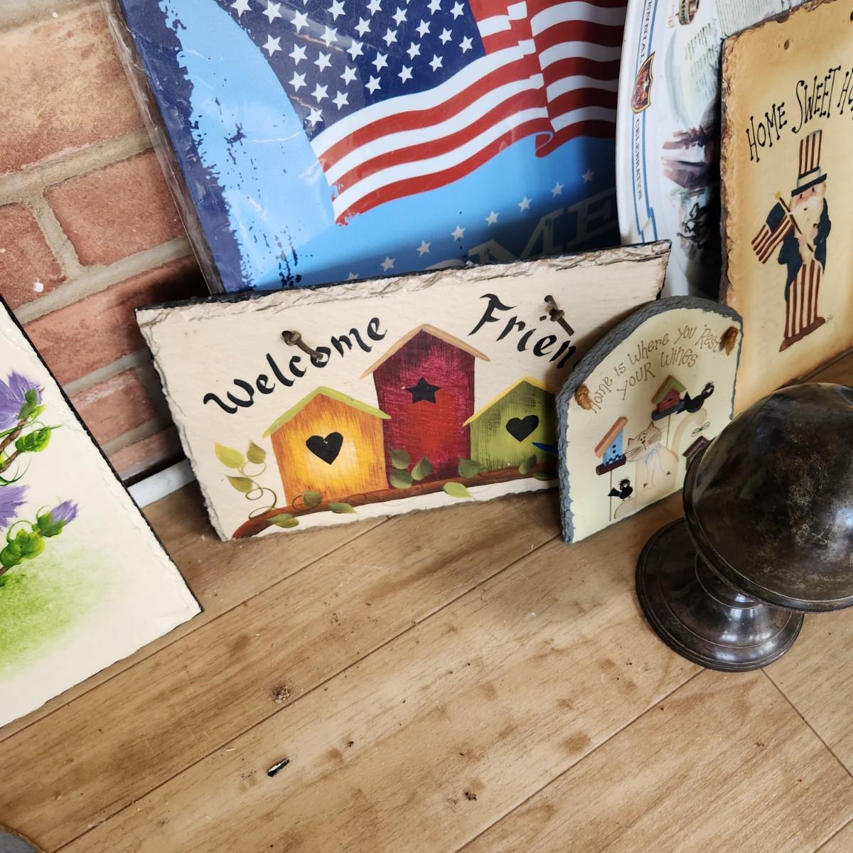 Large Home Decor Lot Art, Hand Painted Slates, Umbrella Stand , plant stands