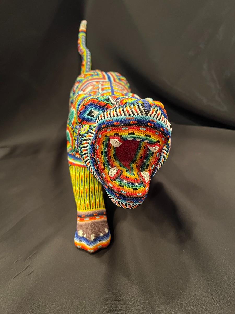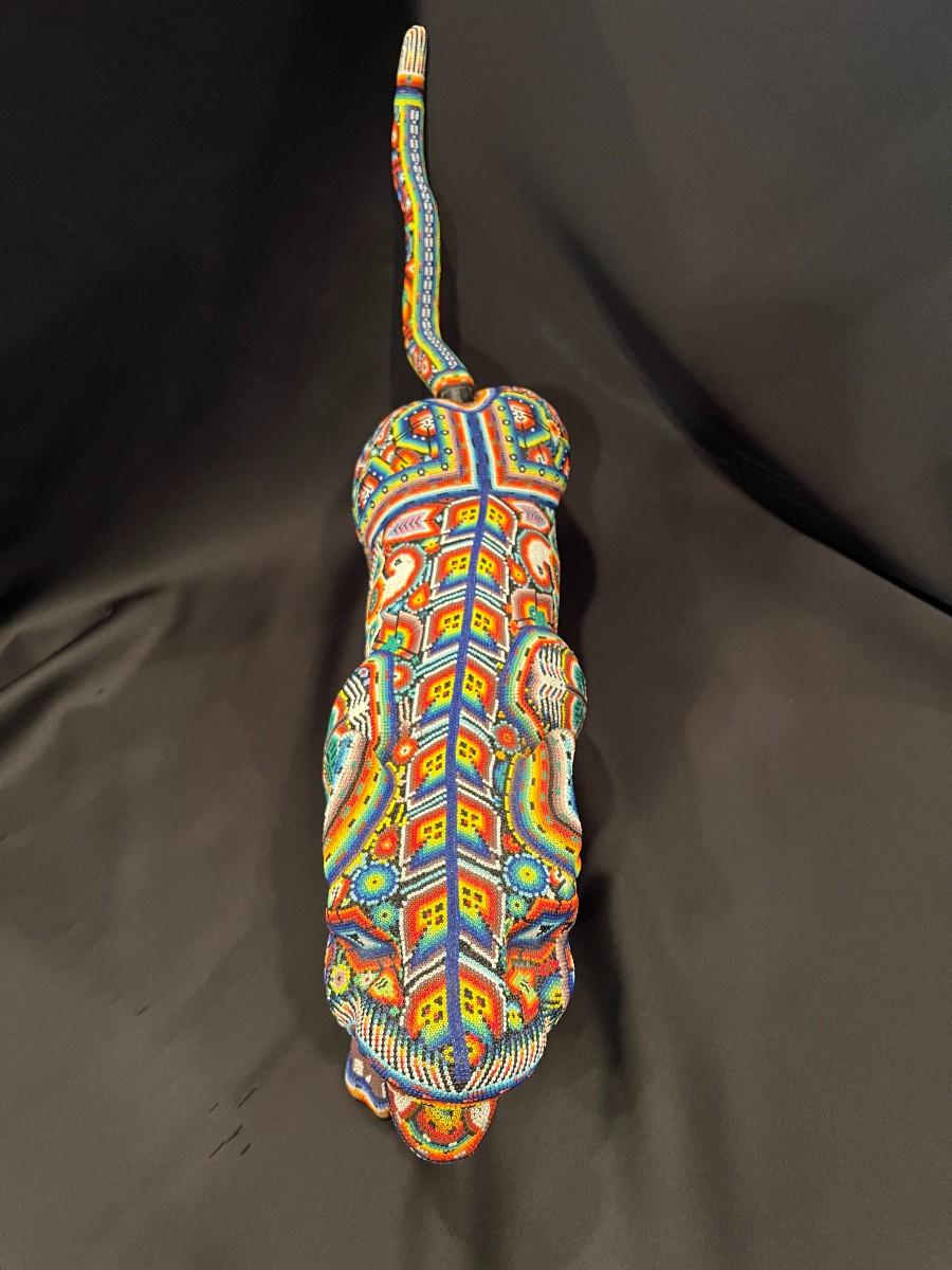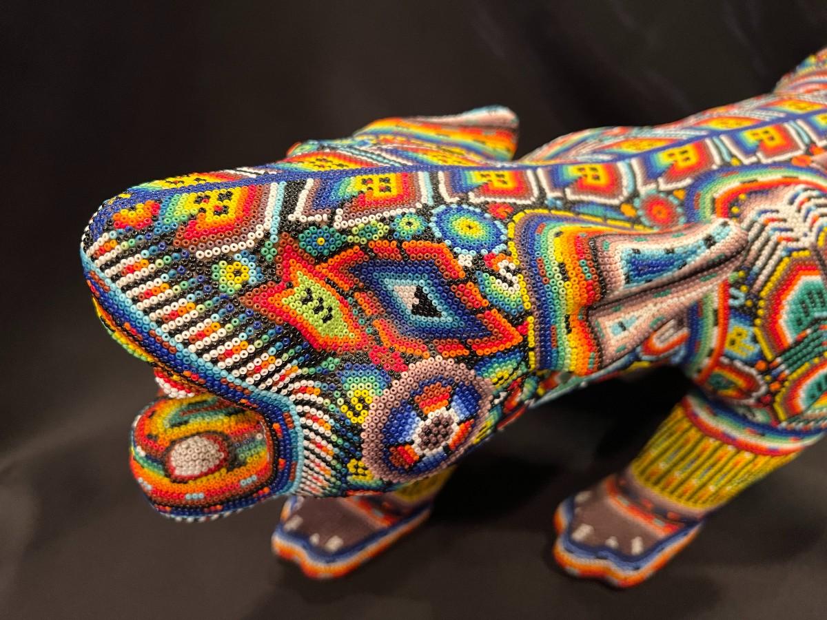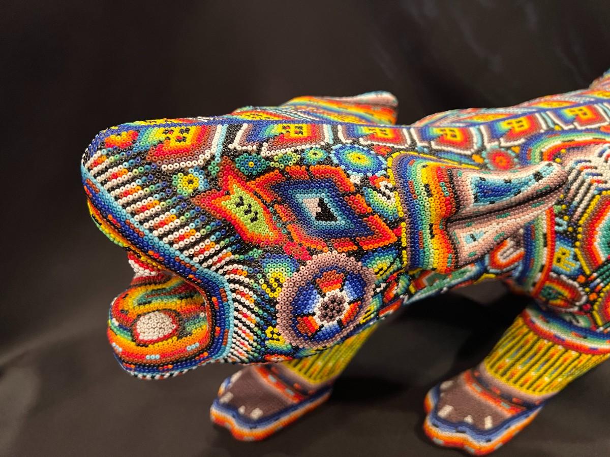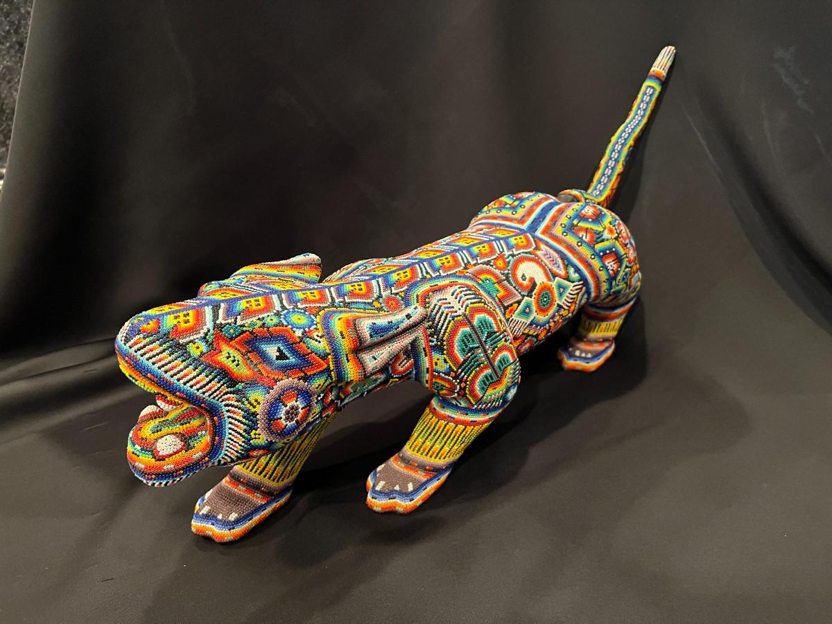 Large Huichol Multicolor Beaded Jaguar Art 34 Inches Long