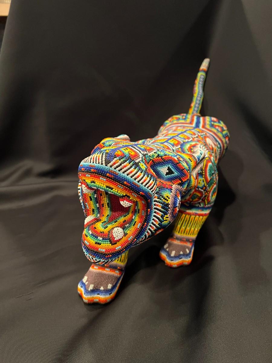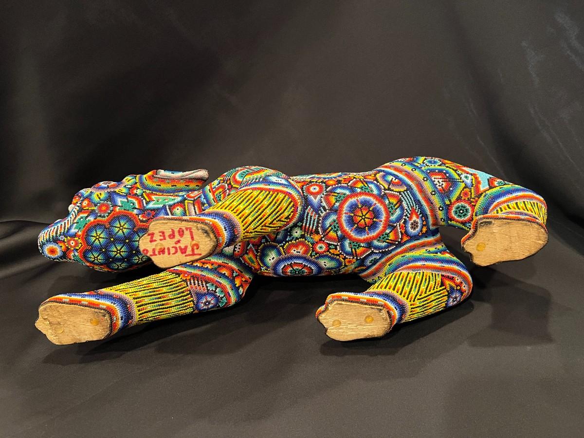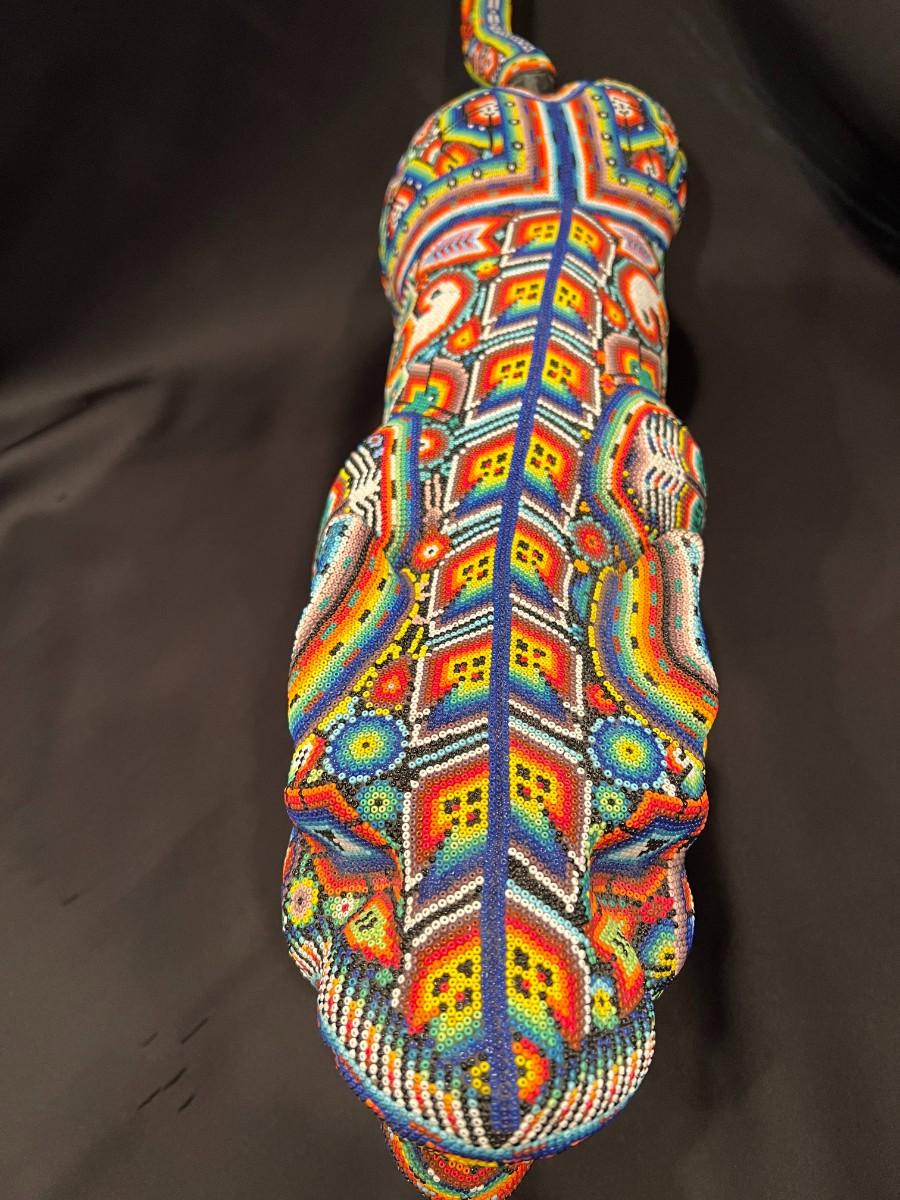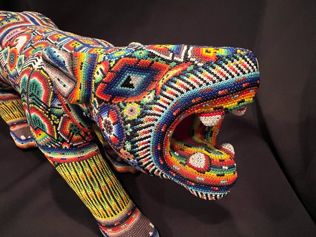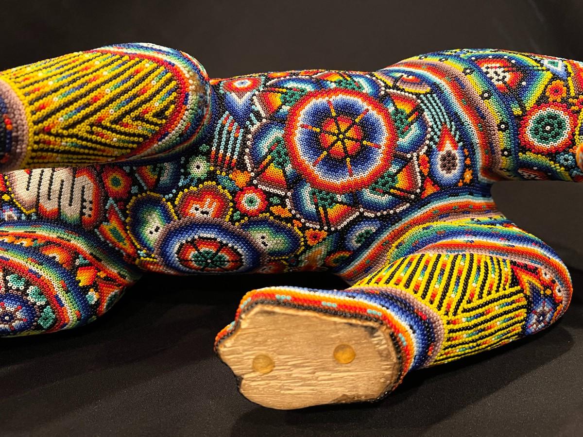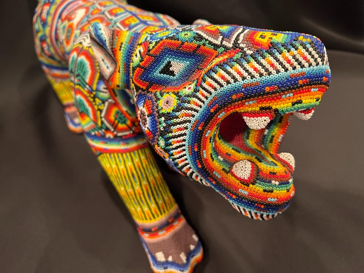 Large Huichol Multicolor Beaded Jaguar Art 34 Inches Long