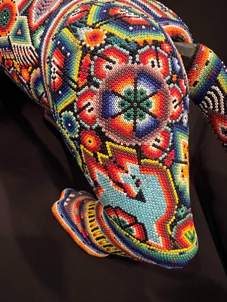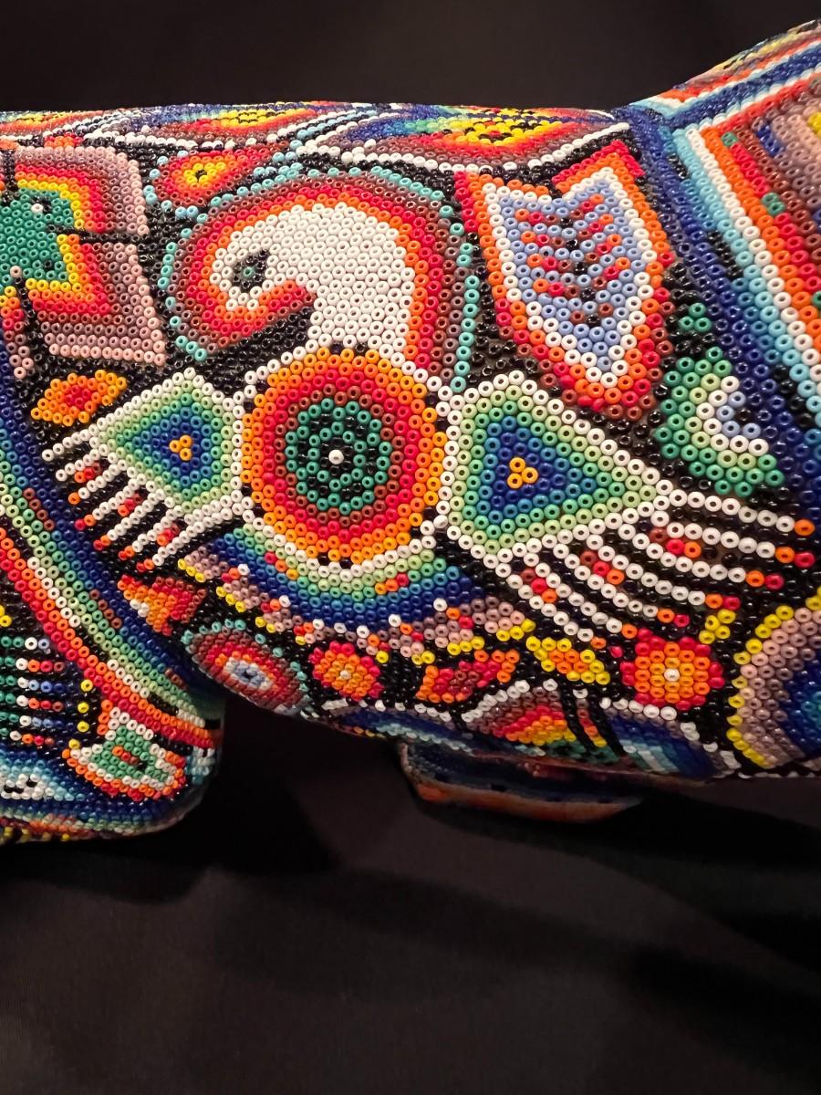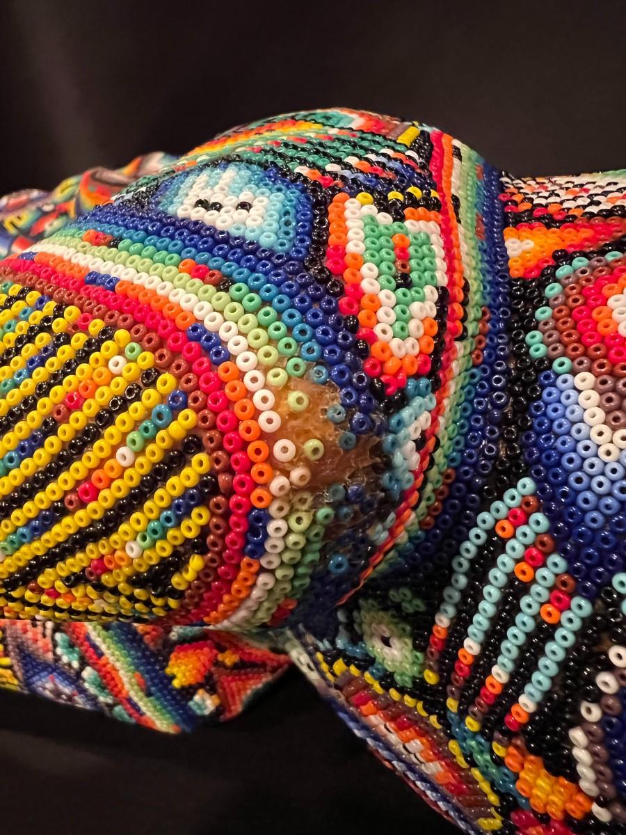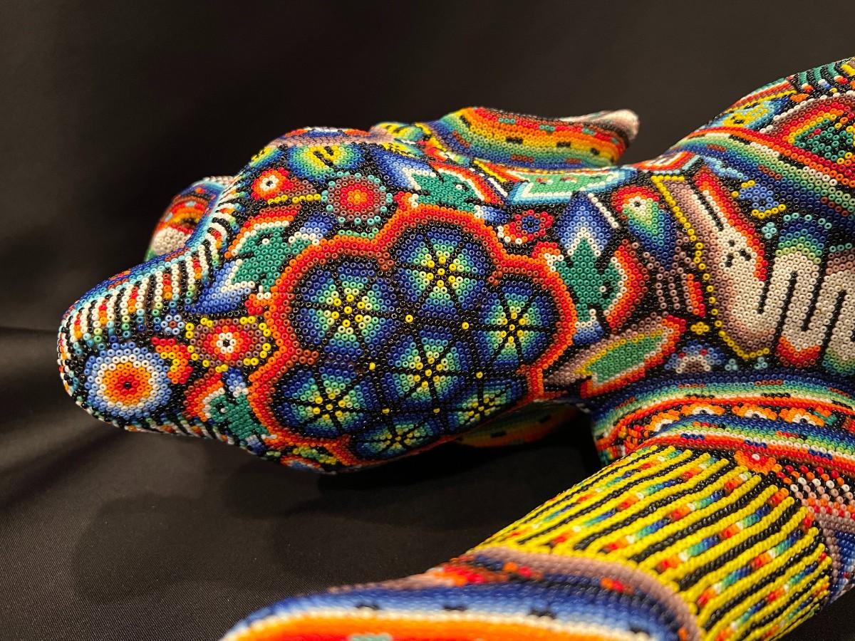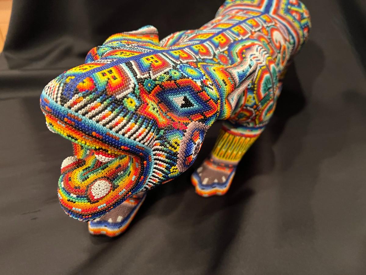Large Huichol Multicolor Beaded Jaguar Art 34 Inches Long
