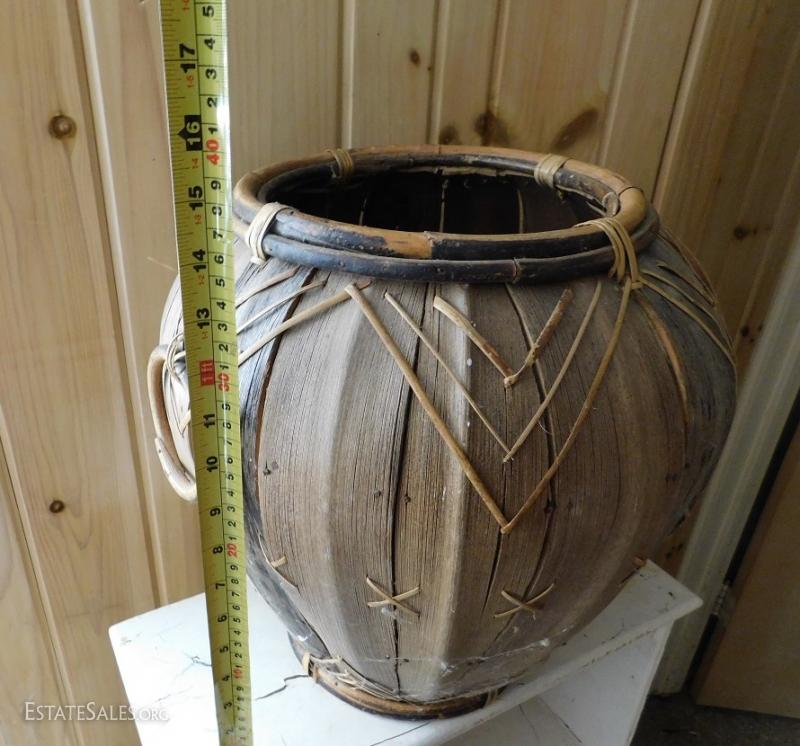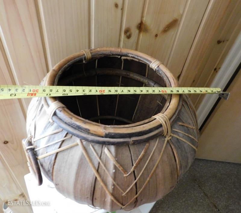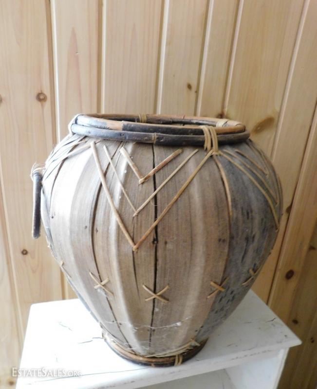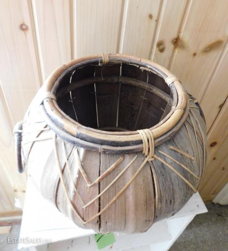 Large Husk Basket Hand Tied and Strung in good condition. Unique and very nice appearance