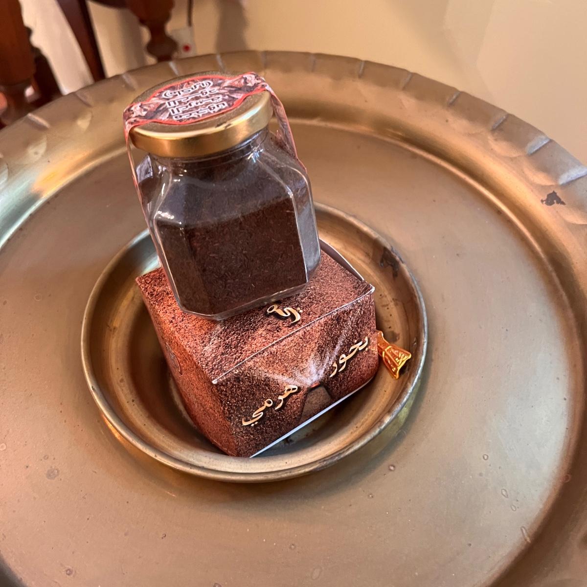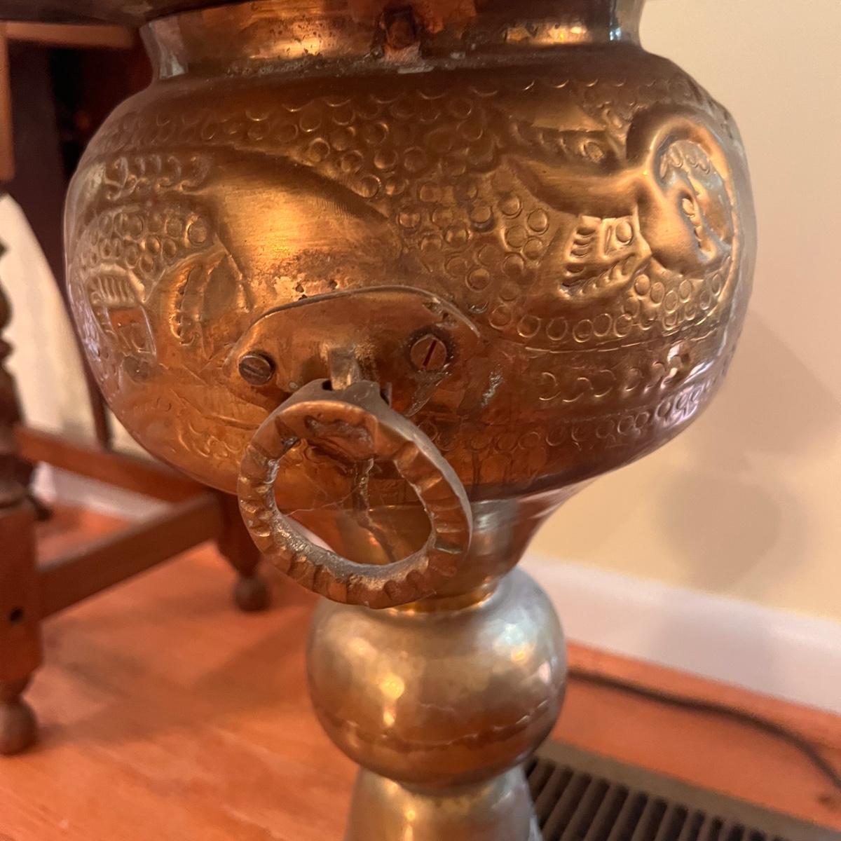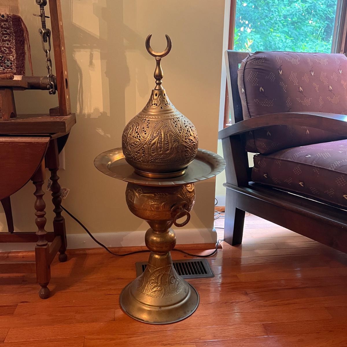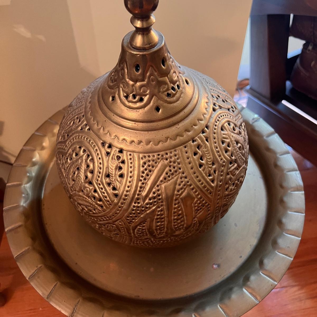 Large brass floor incense burner with new jar of incense. Beautifully decorated conversation piece!