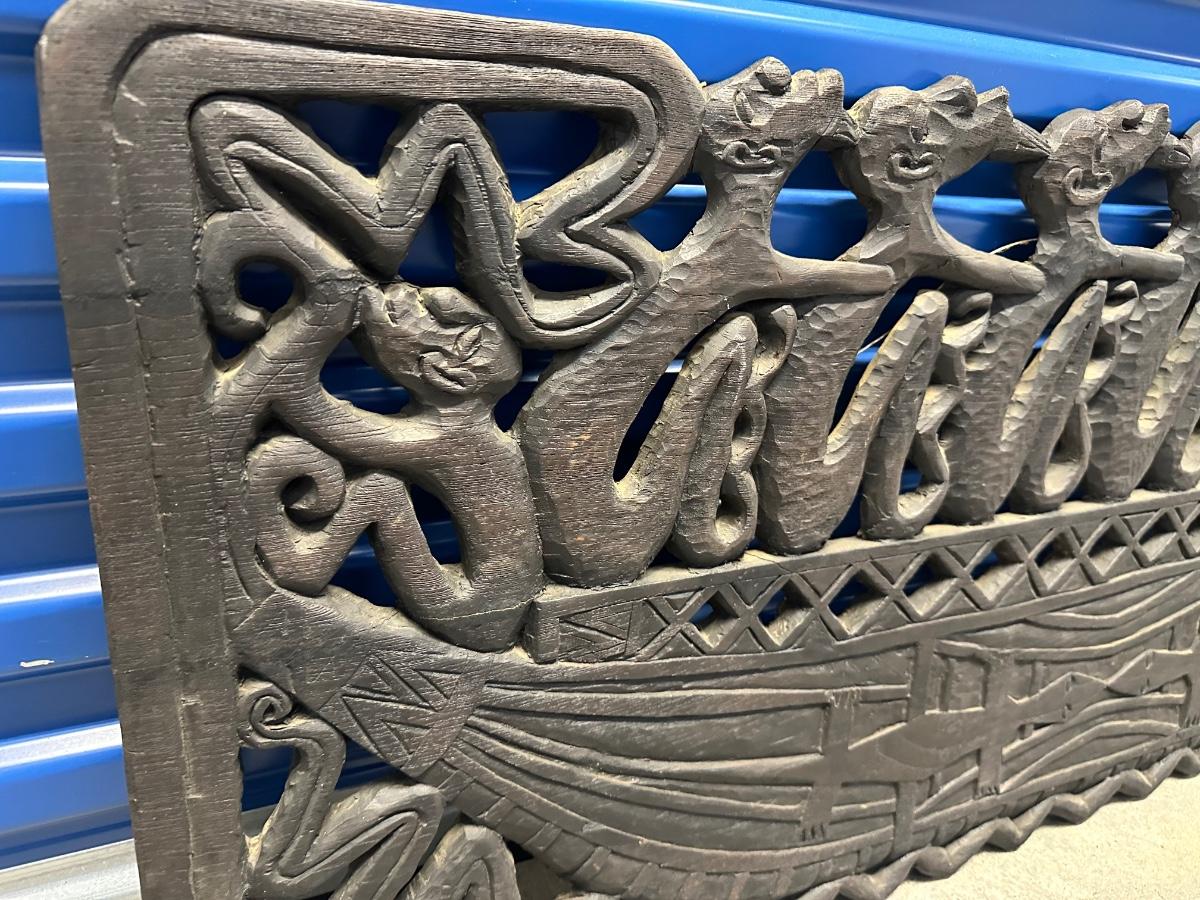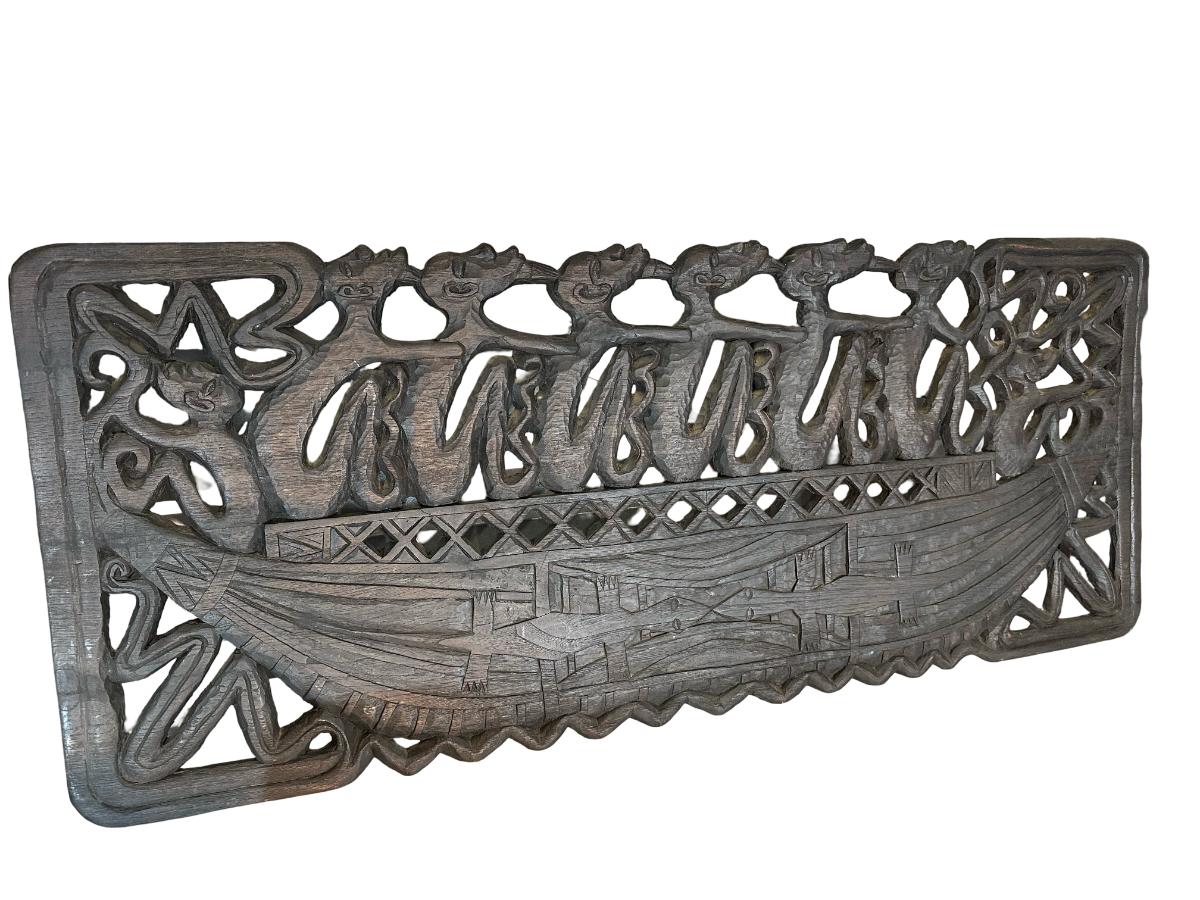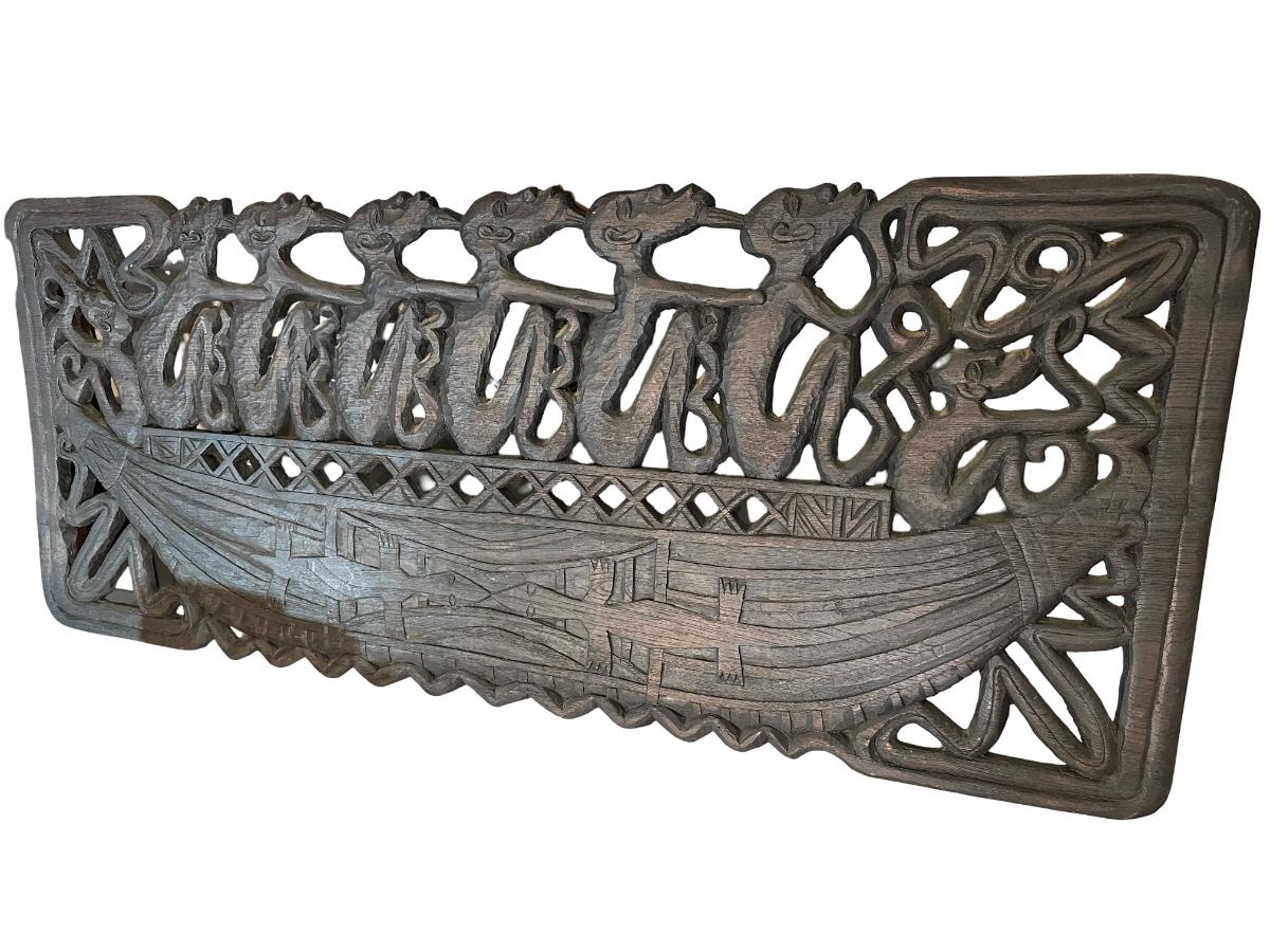 Large Indonesian Hand-Carved Wooden Canoe Relief