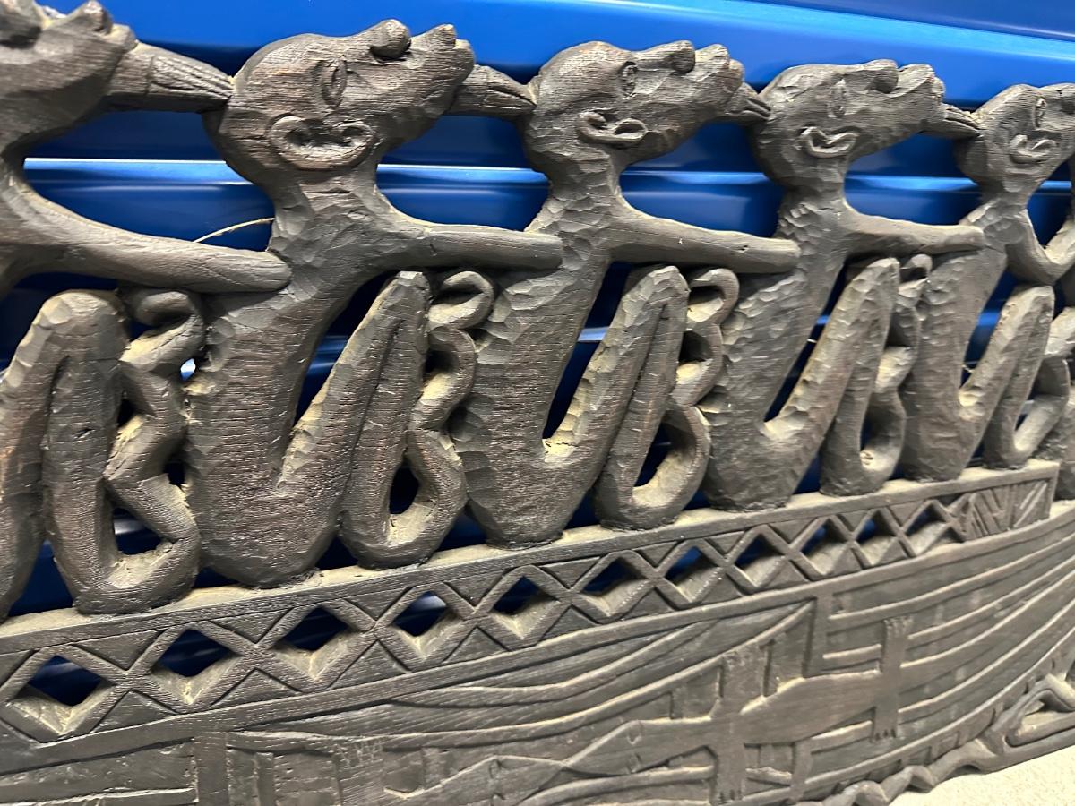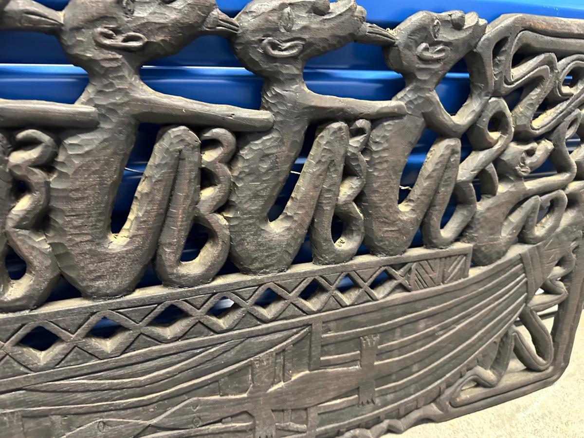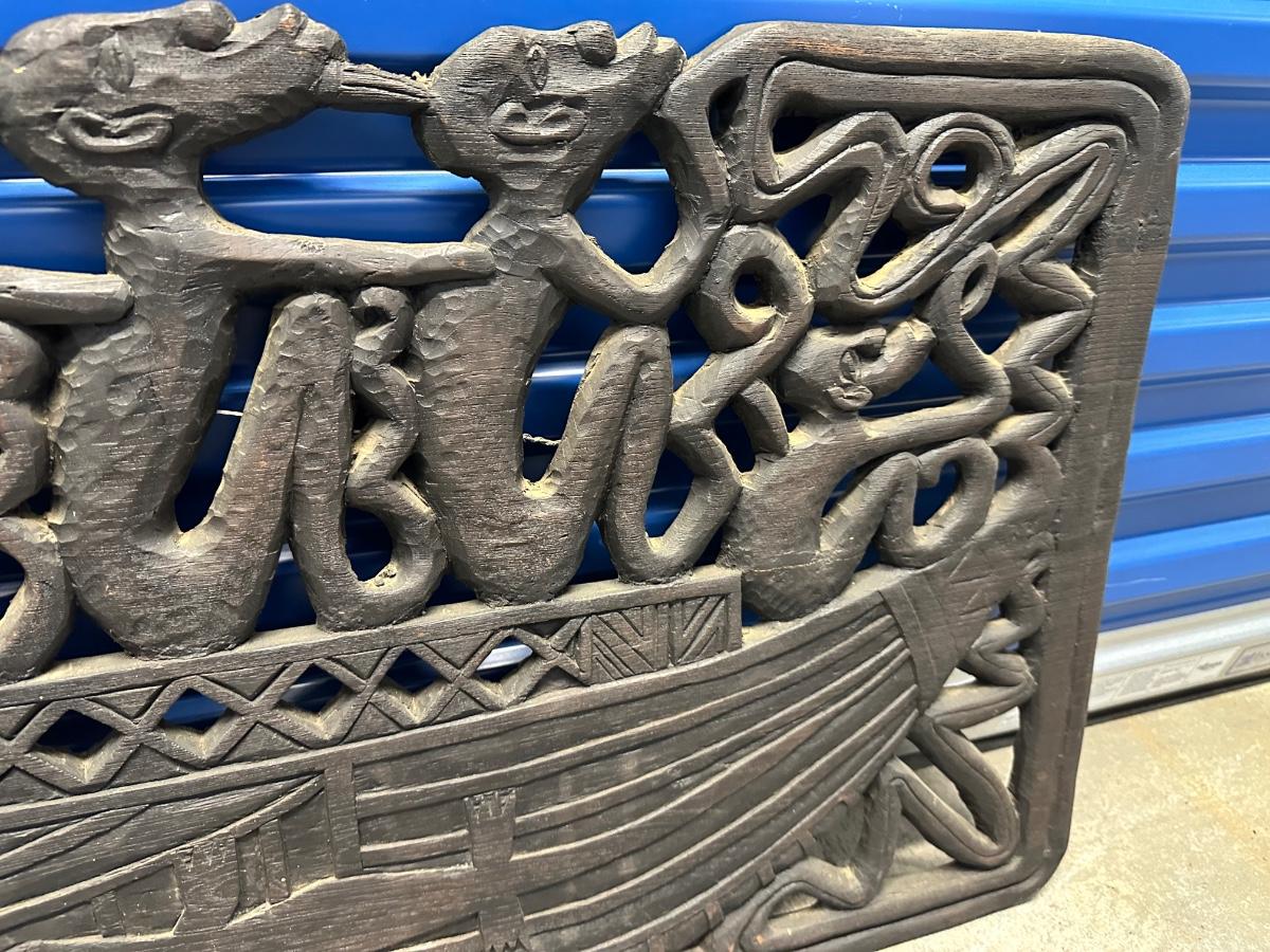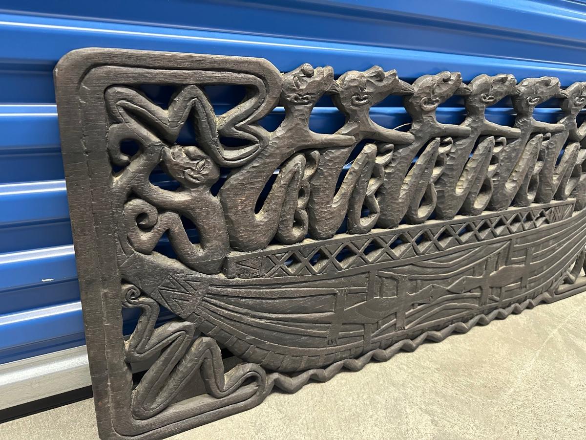 Large Indonesian Hand-Carved Wooden Canoe Relief