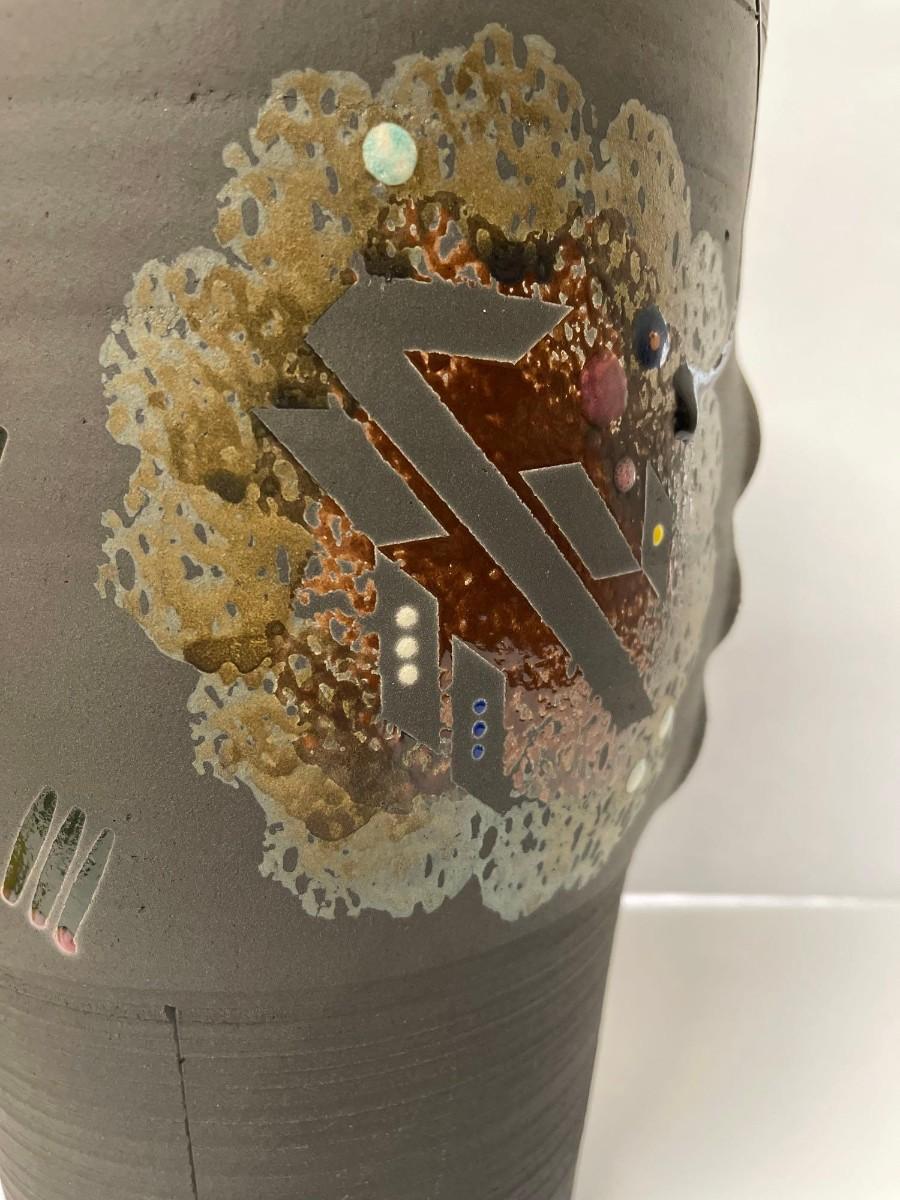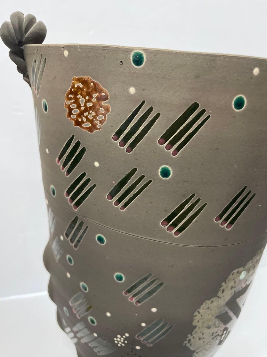 Large, vintage Jamie Davis Ceramic Vase, excellent condition. Approx 16”. Marked JD on bottom. Jamie Davis was born in Philadelphia in 1945. He earned a B.A. from Vanderbilt University, Nashville, in 1967, an M.A. from Exeter College, England, in 1971, and an M.F.A. from Clemson University, South Carolina, in 1973. Primarily a ceramicist, Davis also creates wall-mounted sculptures of metal, fabric, and paper. His work has been exhibited at the Renwick Gallery, Smithsonian Institution, Washington, D.C., and in several galleries.