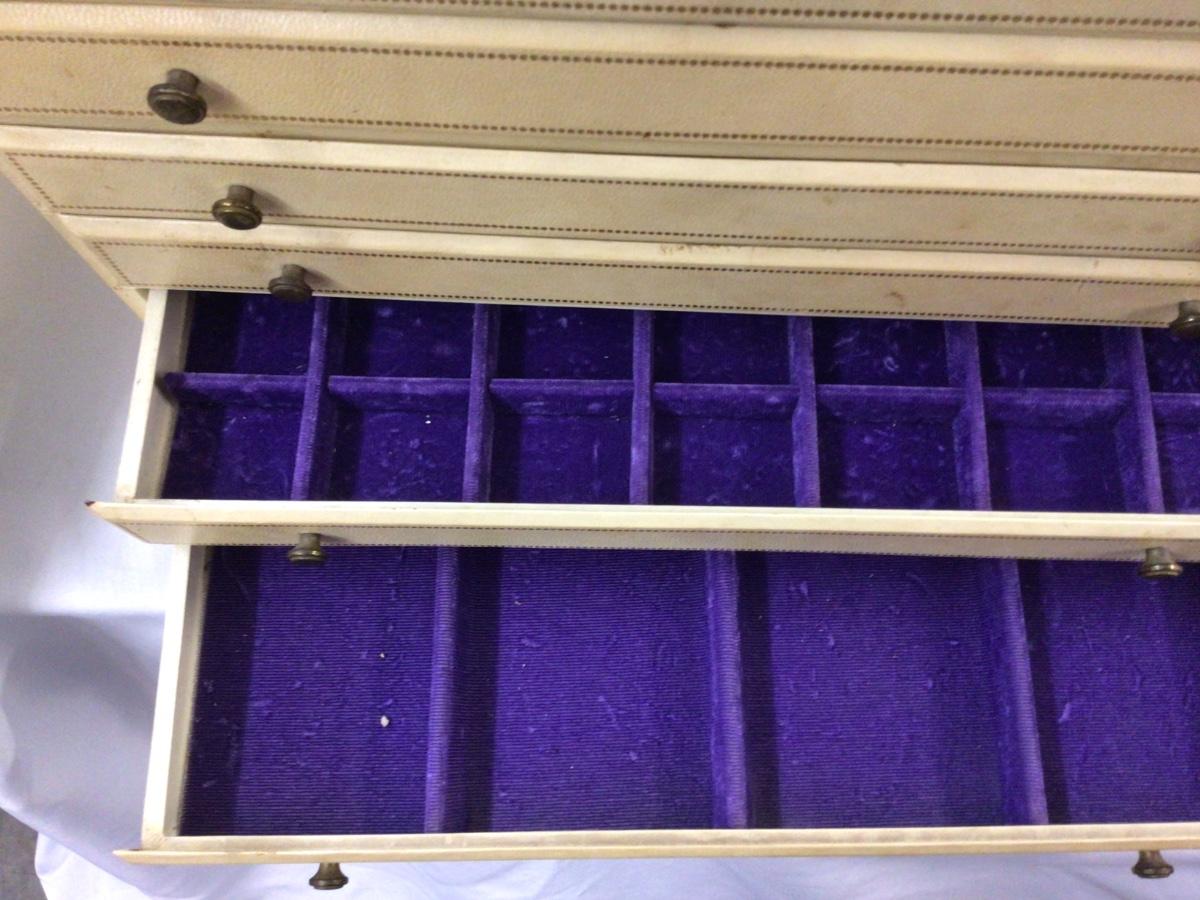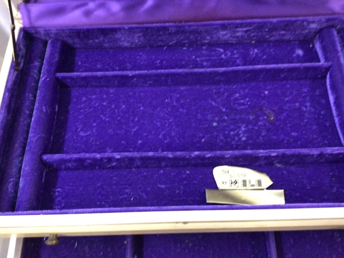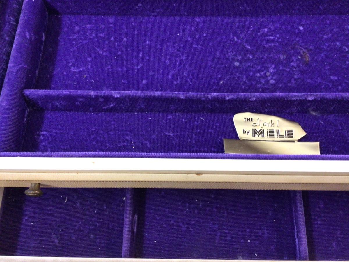 You get this great large 6 draw jewelry box white and purple. You also get a nice oval hand weaved basket, and a vintage wine holder or cooler.
