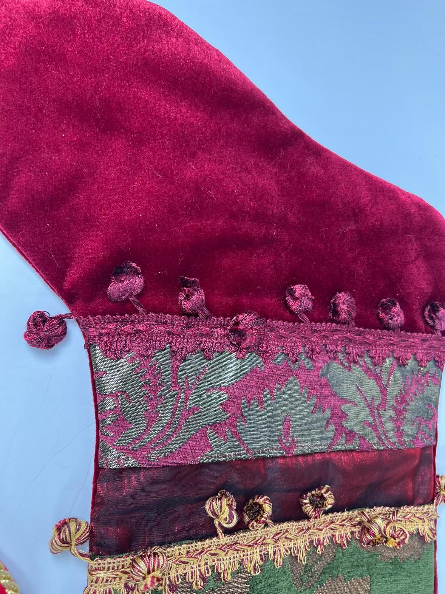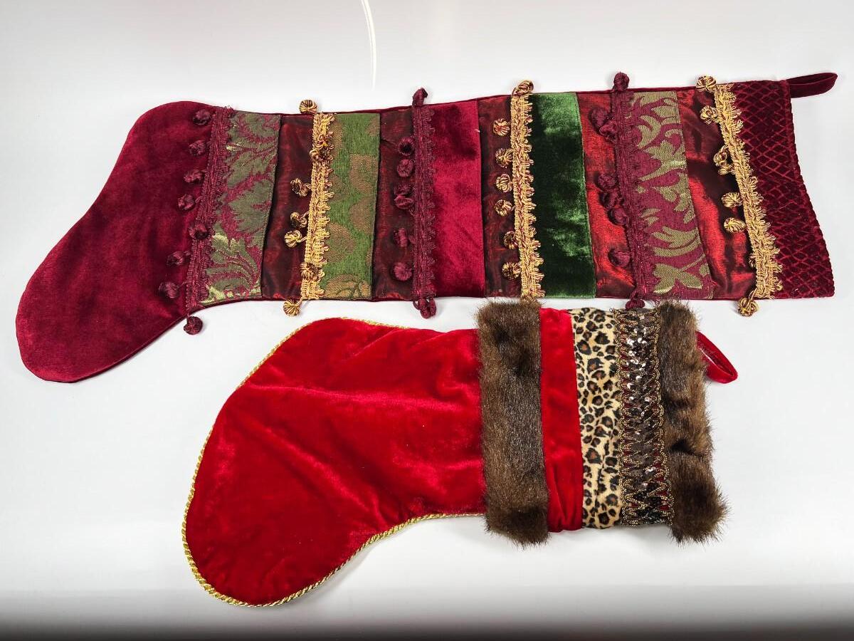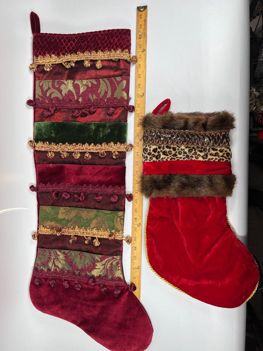 Large Jingling Decorative Felt Patterns Christmas Holiday Mantle Stockings, there are no significant rips or tears to the stockings and is in good displayable condition. Check pictures for more details and for sizing.