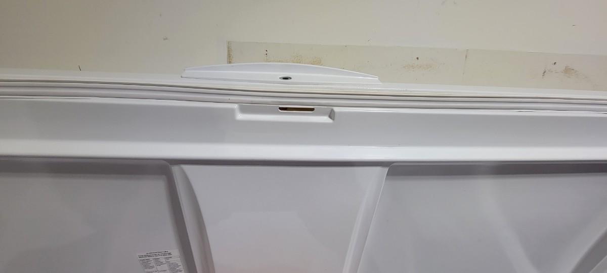 This does have a lock but we have yet to locate the key. The inside of the lid is cracked near the front. This does not affect functionality of the appliance. Dividers are adjustable. Unit is clean. It is also located in the garage for those who are interested in purchasing. It will require 2 people for loading.