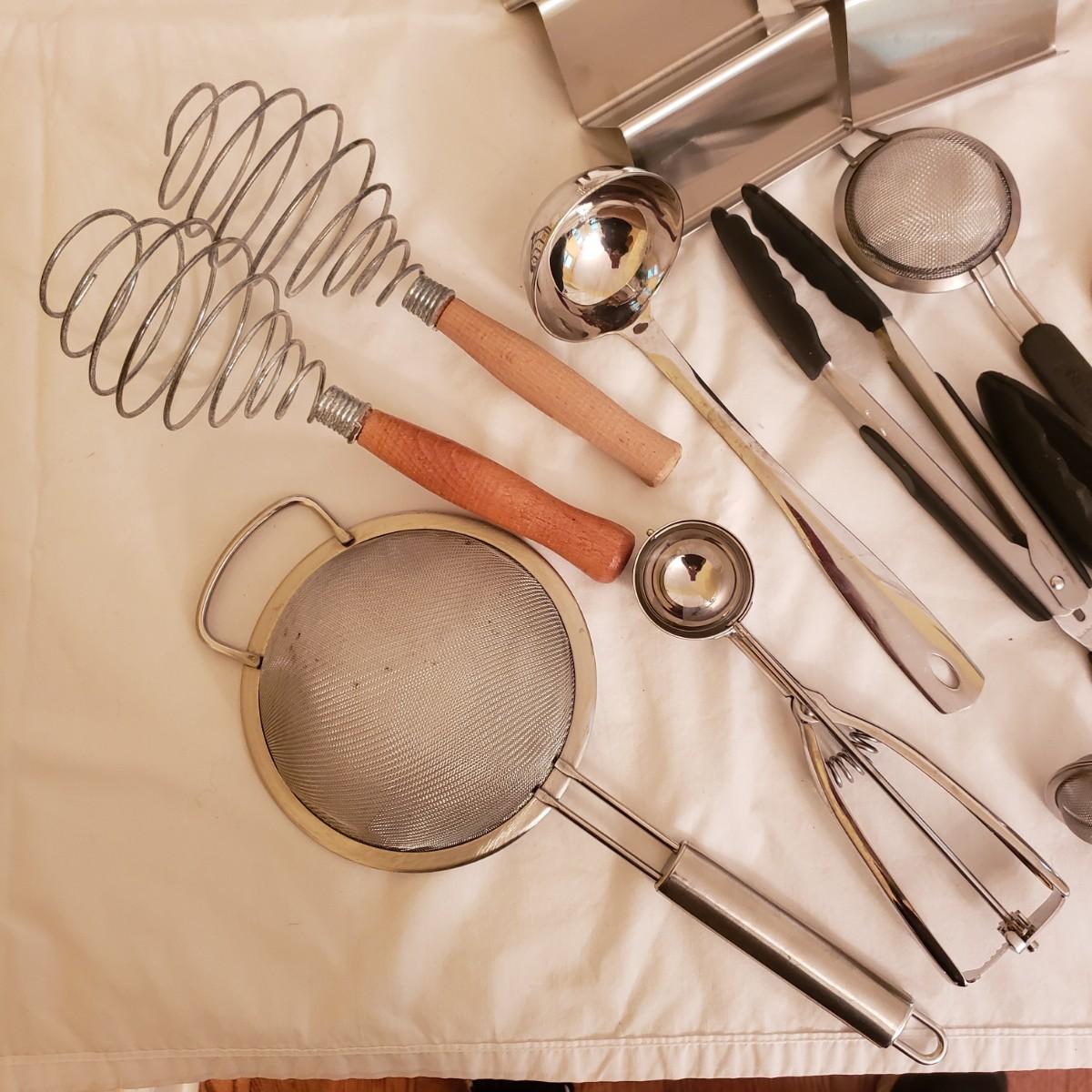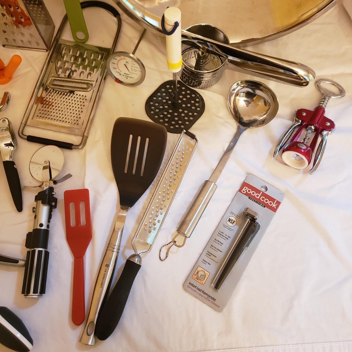 This large kitchen utensil lot over 50 items! Some of the brand names included are Waring, Oneida, Terrapin and LeCreuset. See pictures for details on each item.