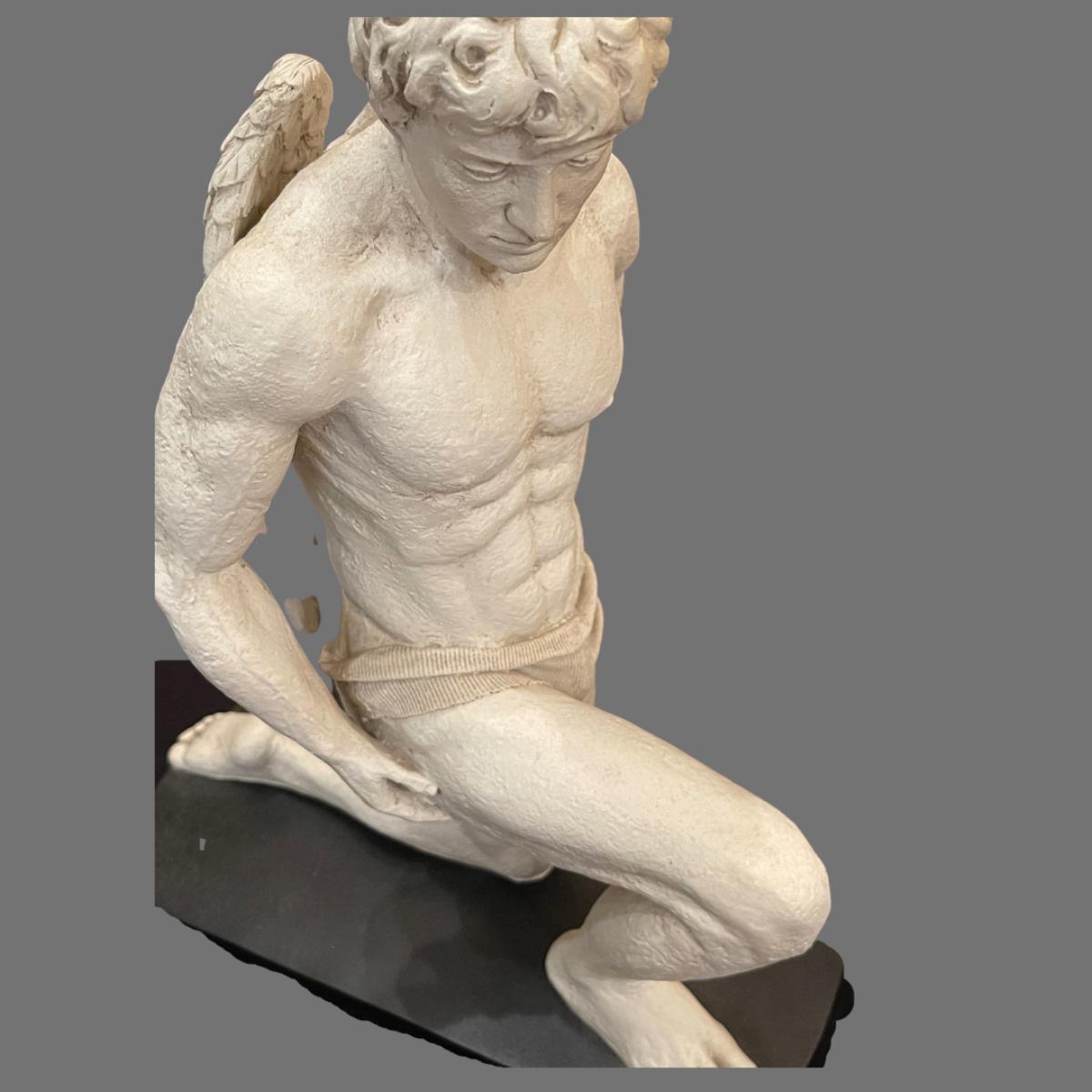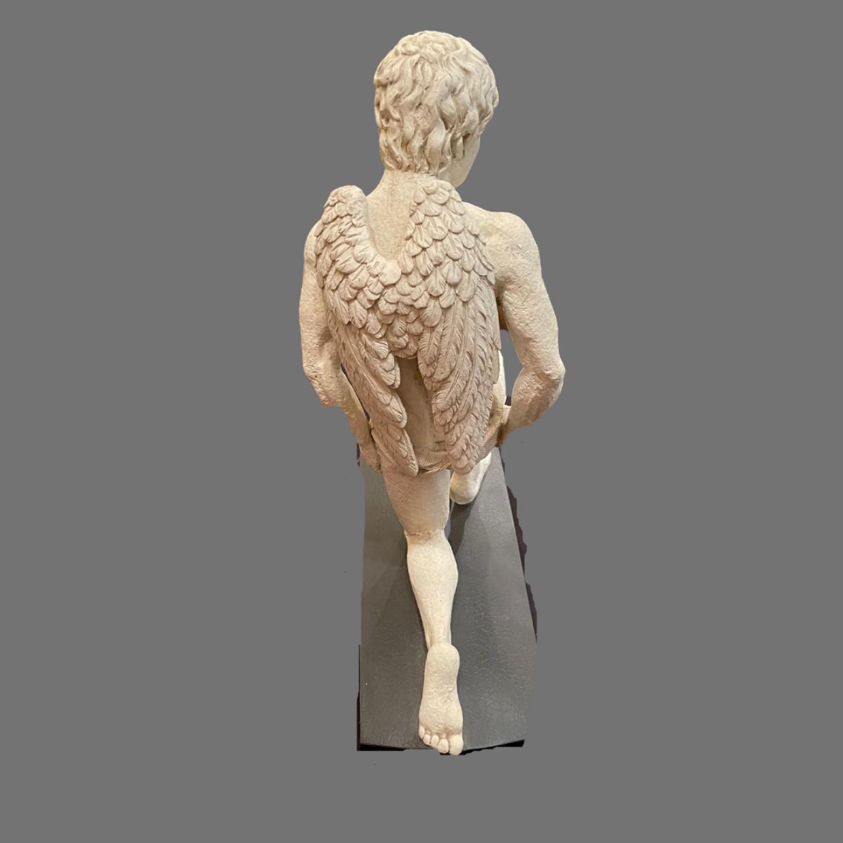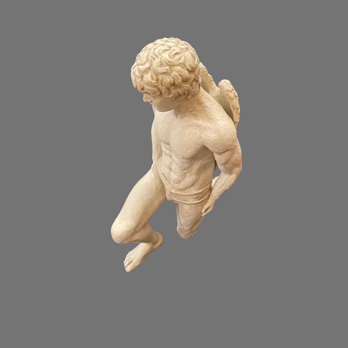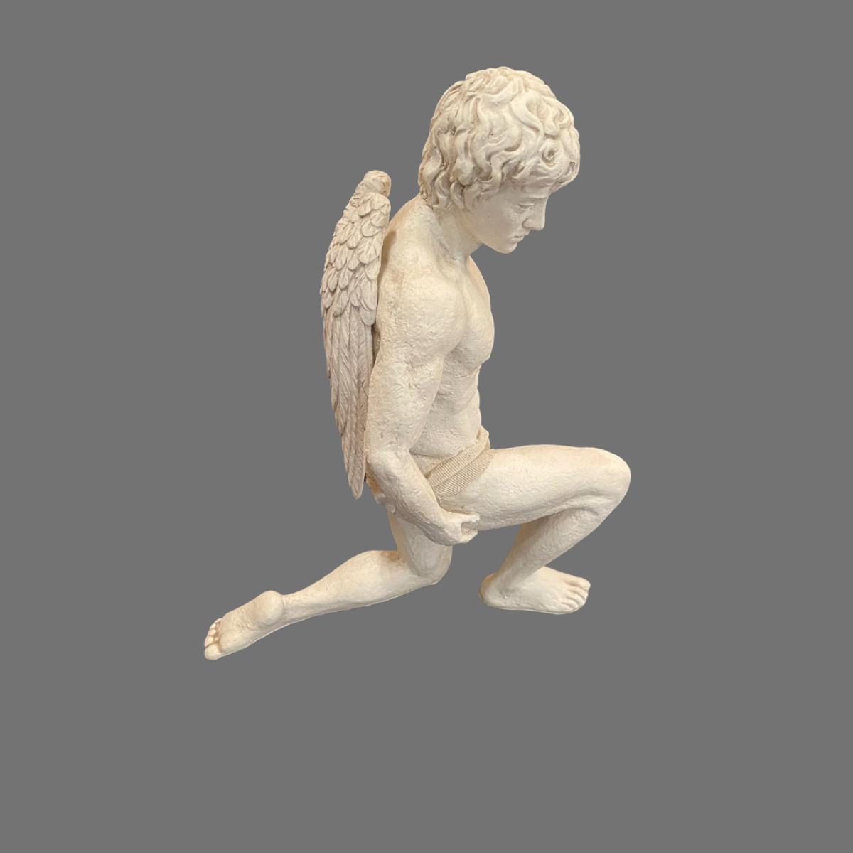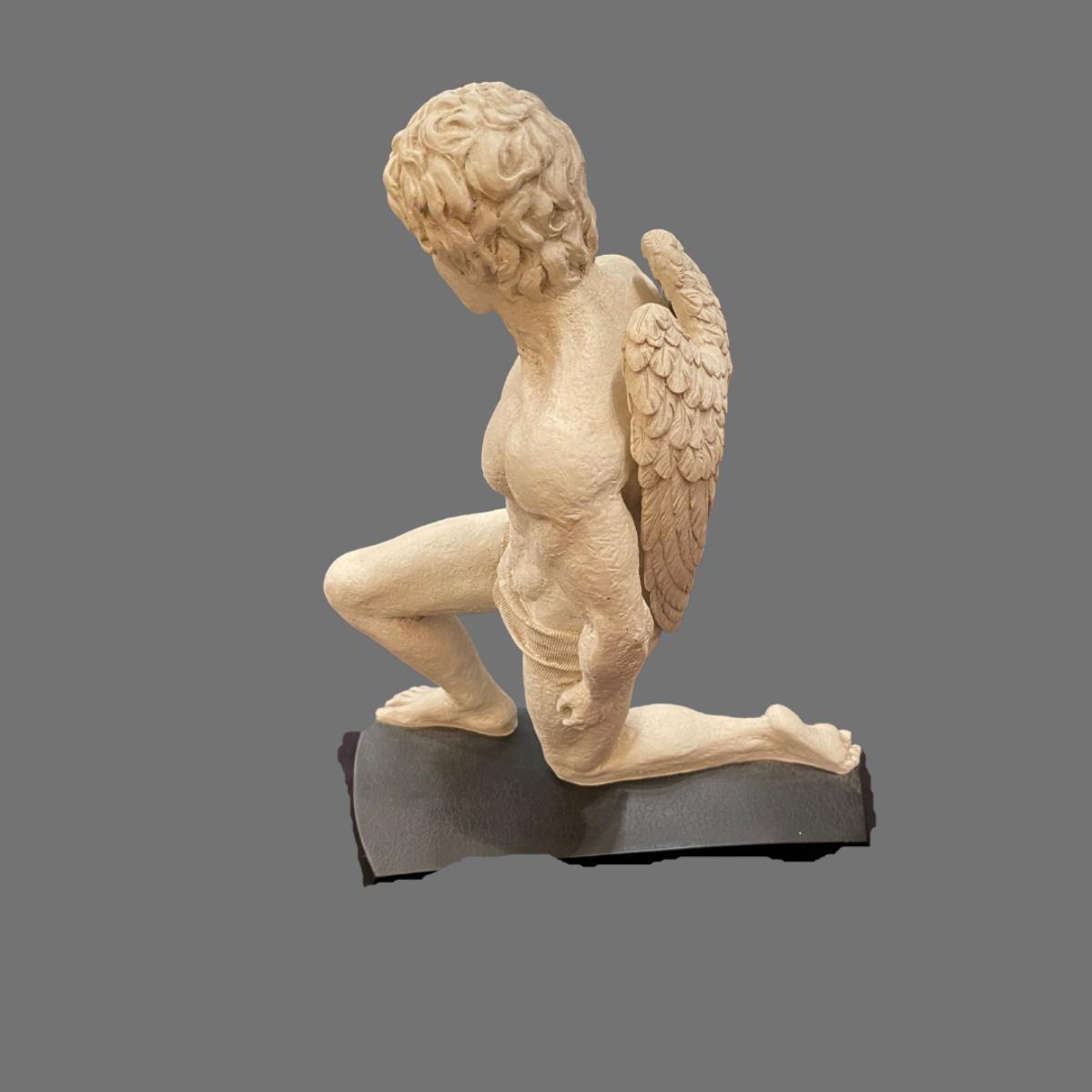 Large Kneeling Cupid Statue on Display Board