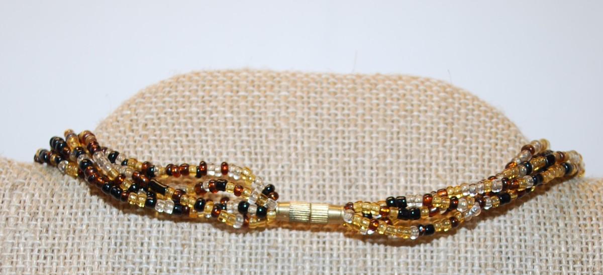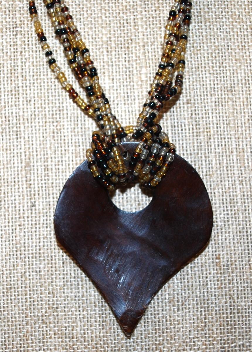 Large Knotted Pointed PENDANT (2½" x 2") on a Multi-Strand Brown Beaded Necklace 22" L