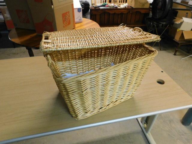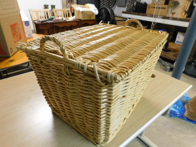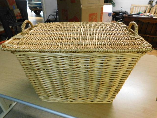 Large Lidded Wicker Weave Basket 21"x16"x14"