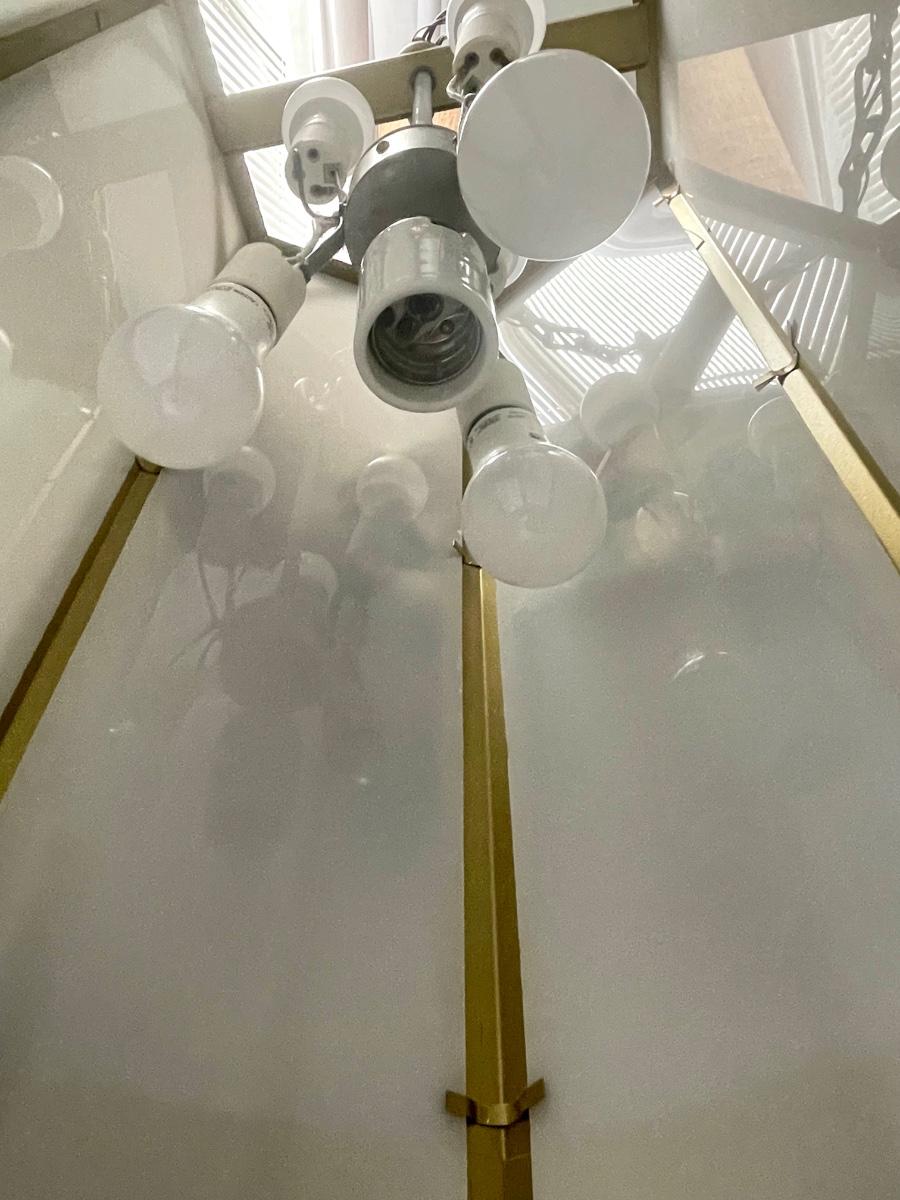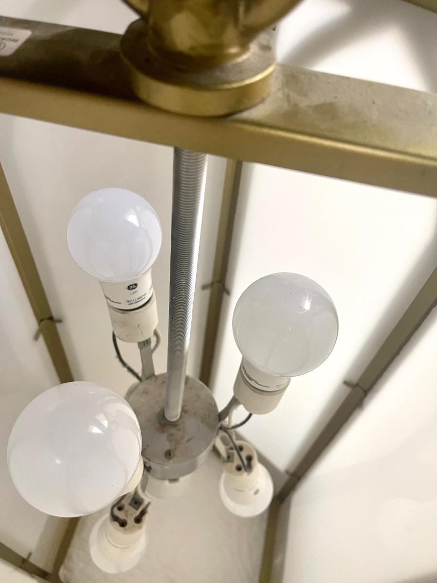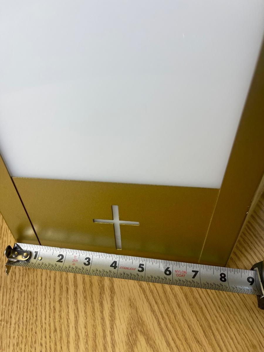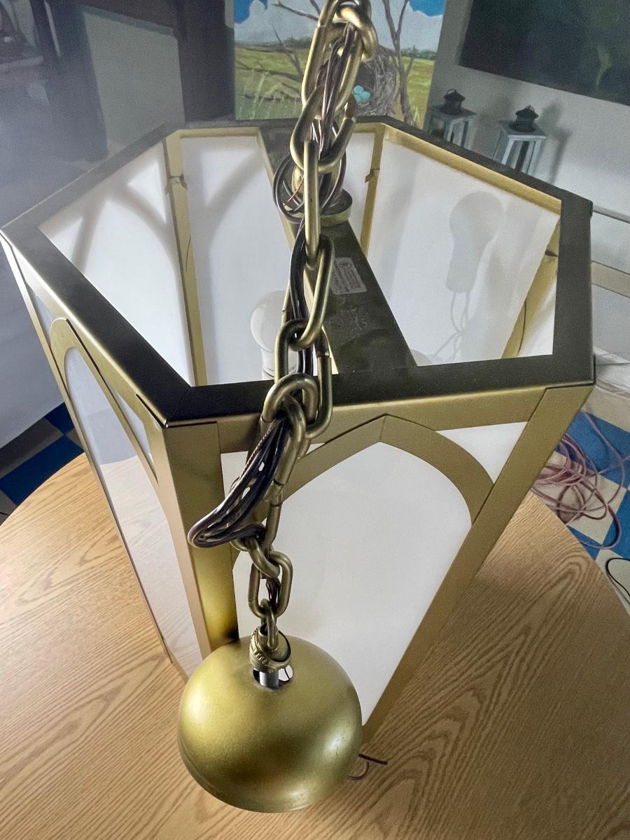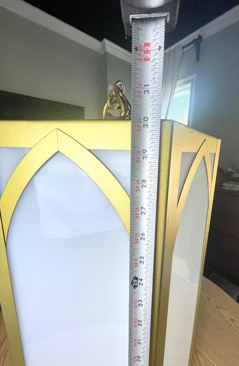 Talk about special lighting!! This is such a cool light fixture. Can you imagine where you could use this and what a statement it would make? Add Colored bulbs, or decoupage or paint the plastic panels! There are soooo many possibilities with this light!!! This would be an amazing upcycle, or you could use it as is and have a real conversation piece! This came out of an old church. Pretty amazing and you certainly don’t find lighting like this every day!! Local pick up only.