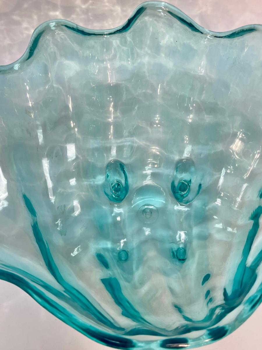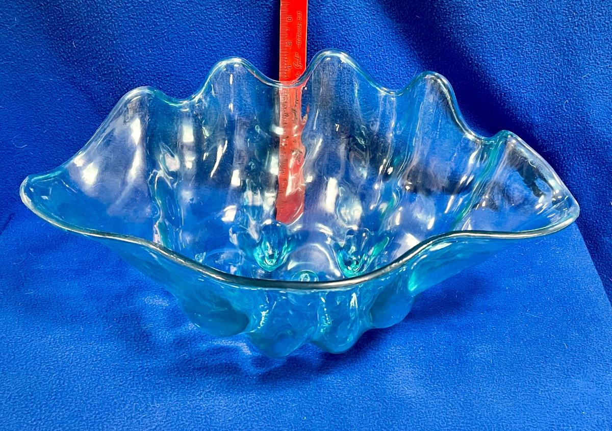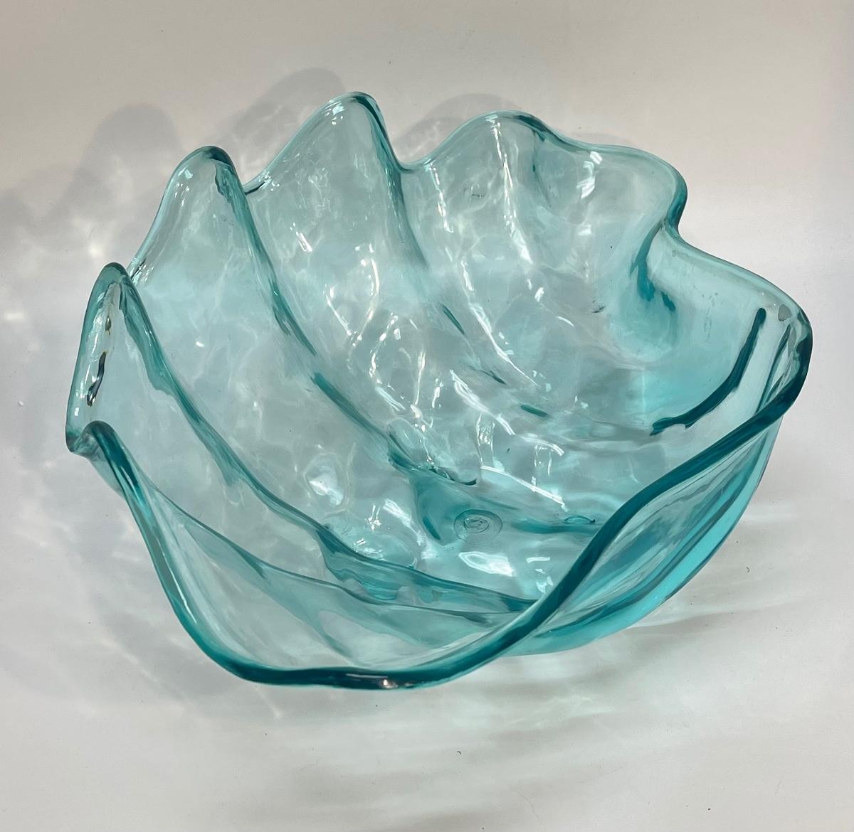 Light blue clam shell bowl. Large size plastic bowl. Good for display or as a serving bowl.