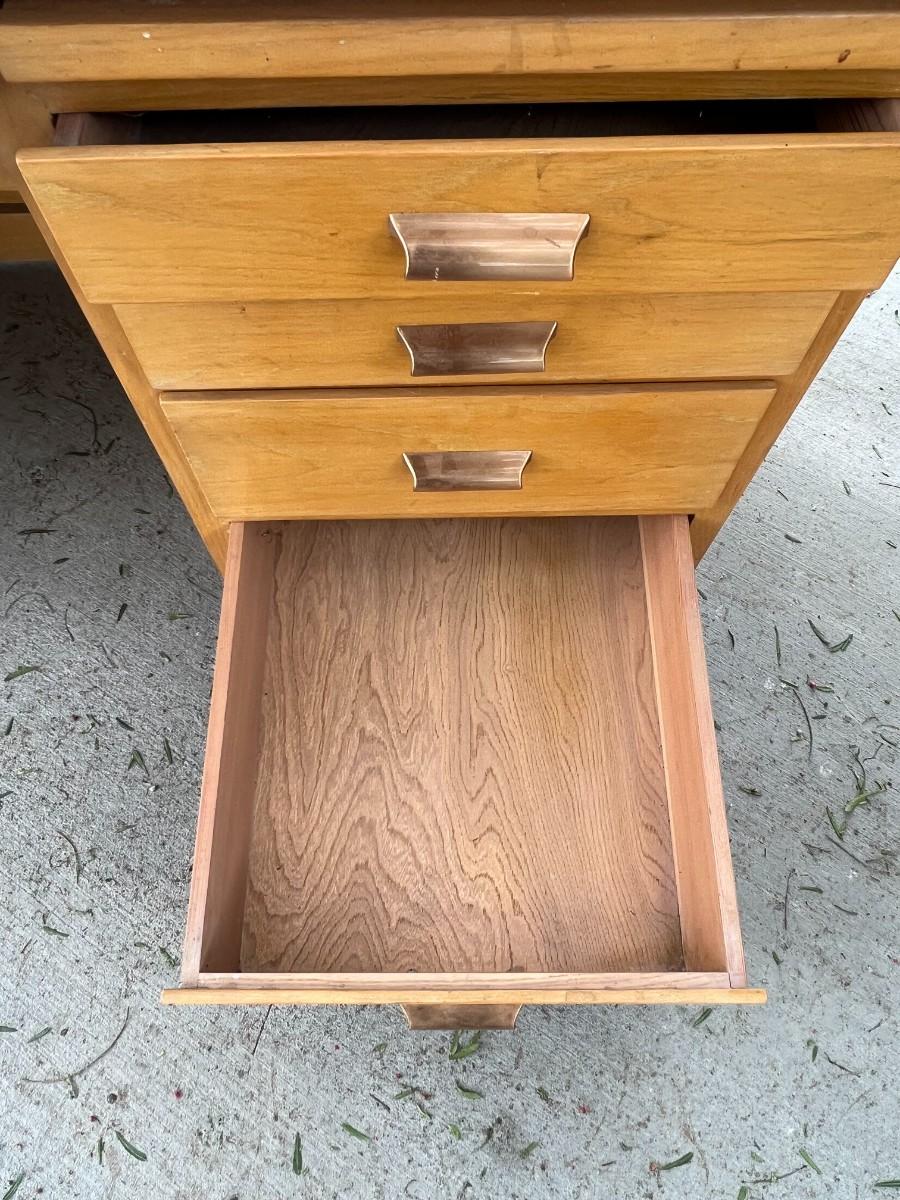 Large Light Wood Desk. In fair/good condition. Many drawers. About 50" wide. TO BE PICKED UP IN LA HABRA HEIGHTS. WE WILL SCHEDULE PICK UP AFTER JULY 4TH.