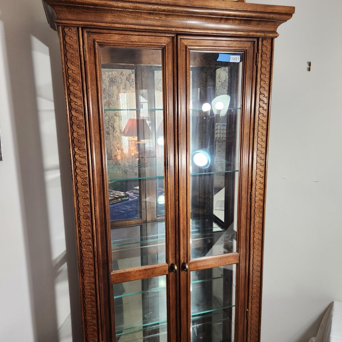 Large Lighted Curio Cabinet w 5 Adjustable Glass Shelves American of Martinsville