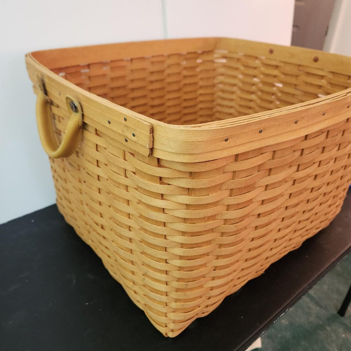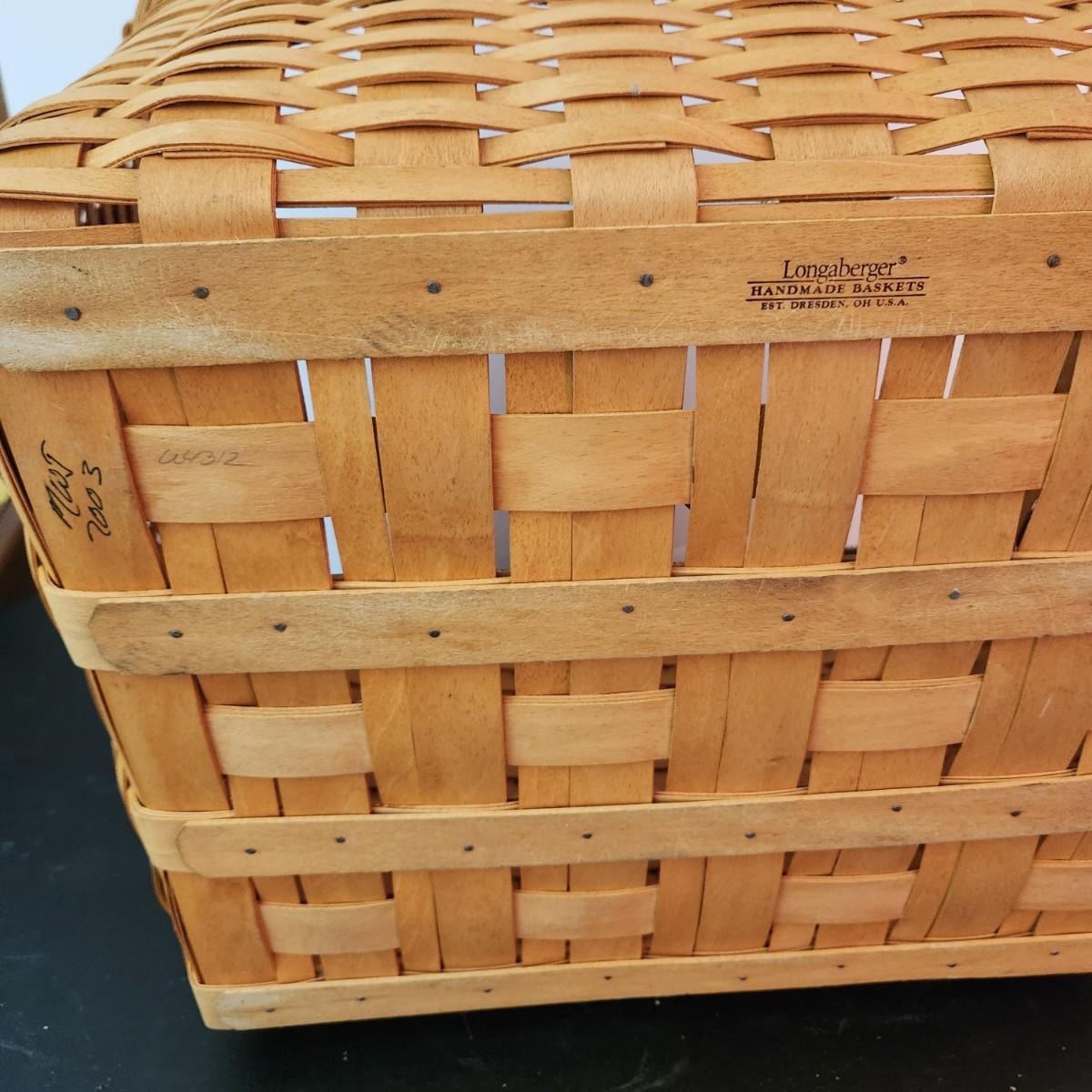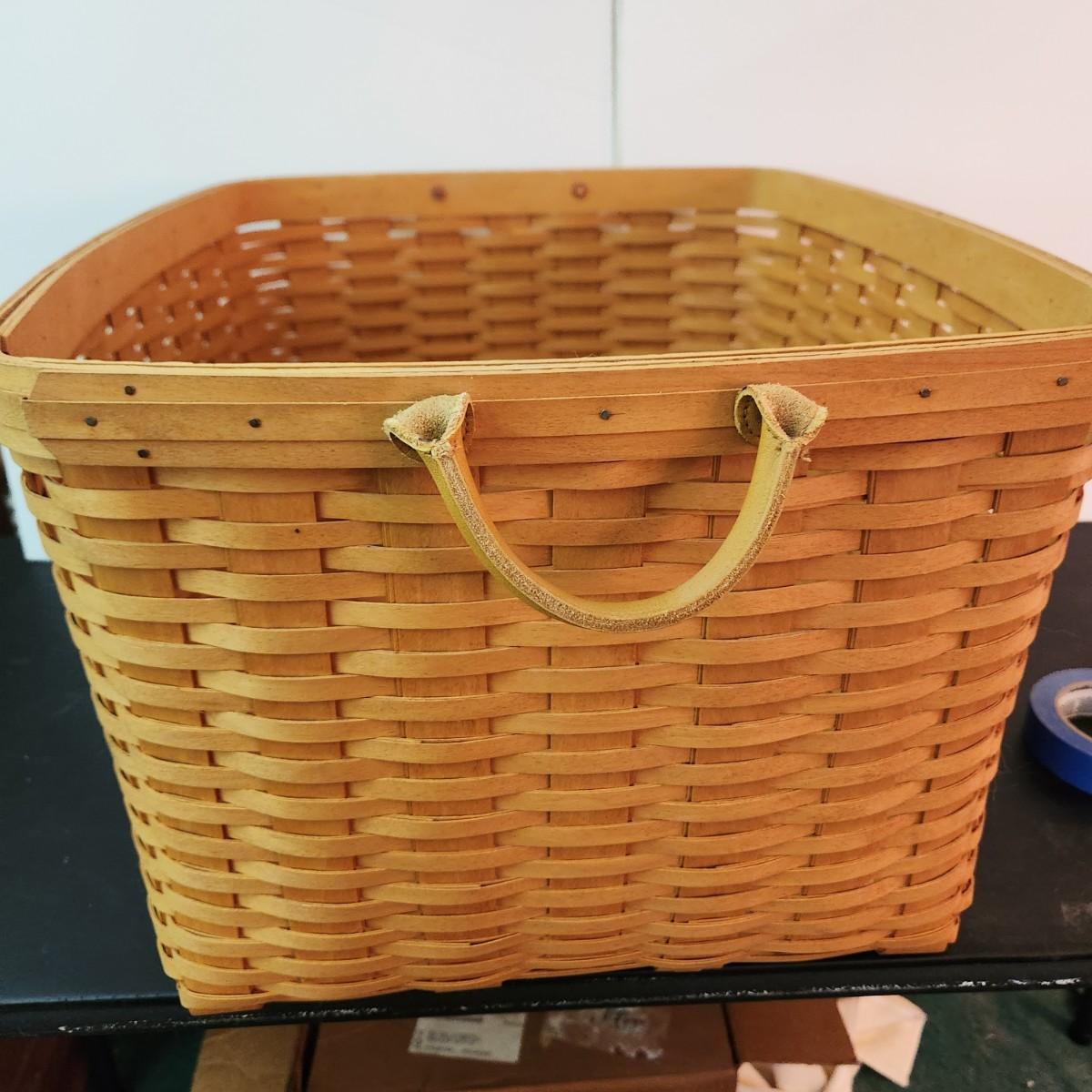 Large Longaberger Basket w Leather Handles 2003 20x17.5x12