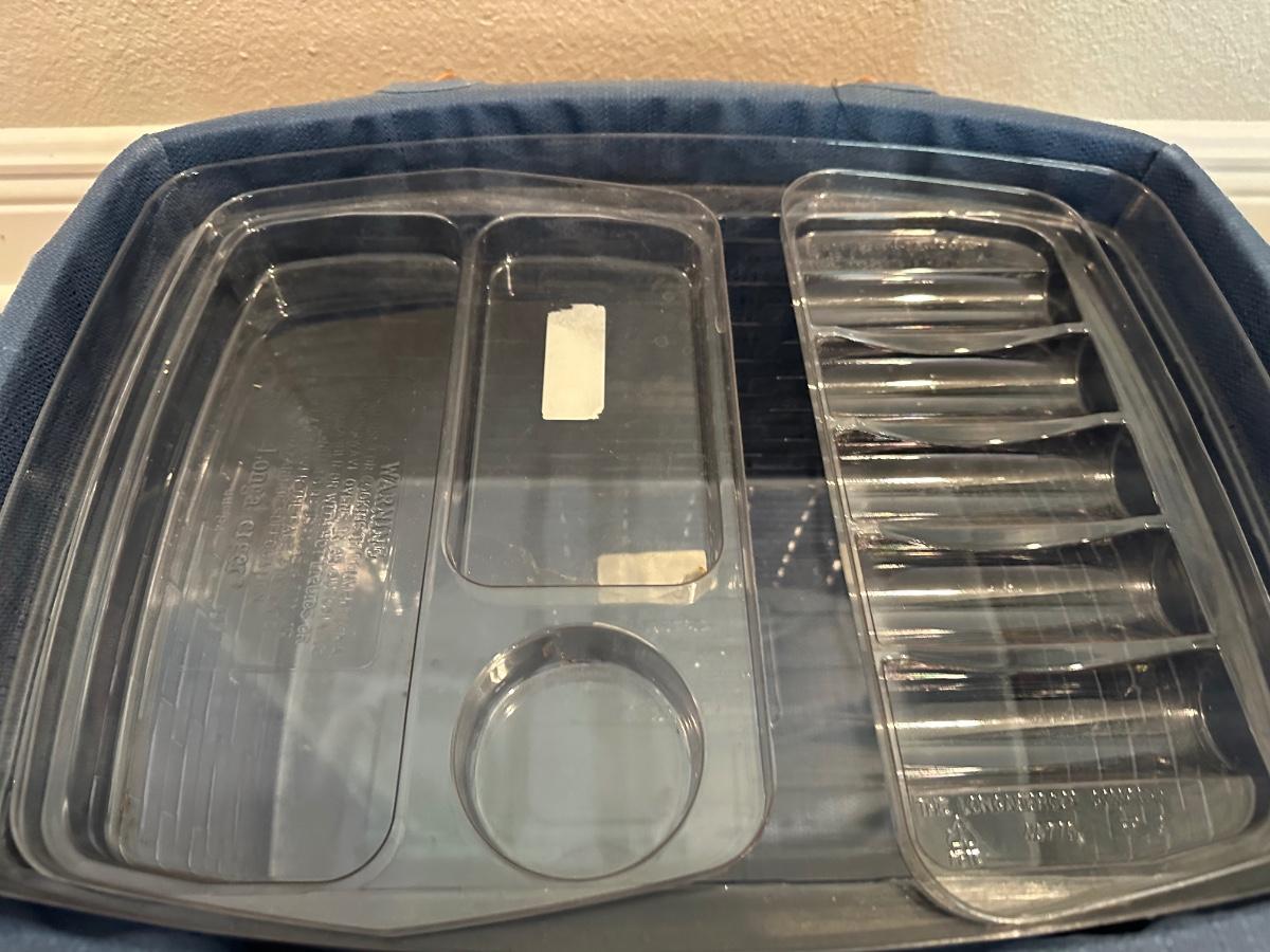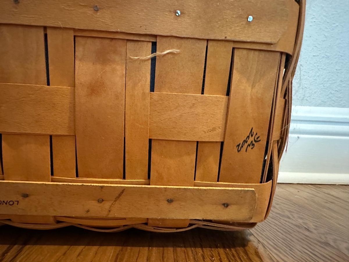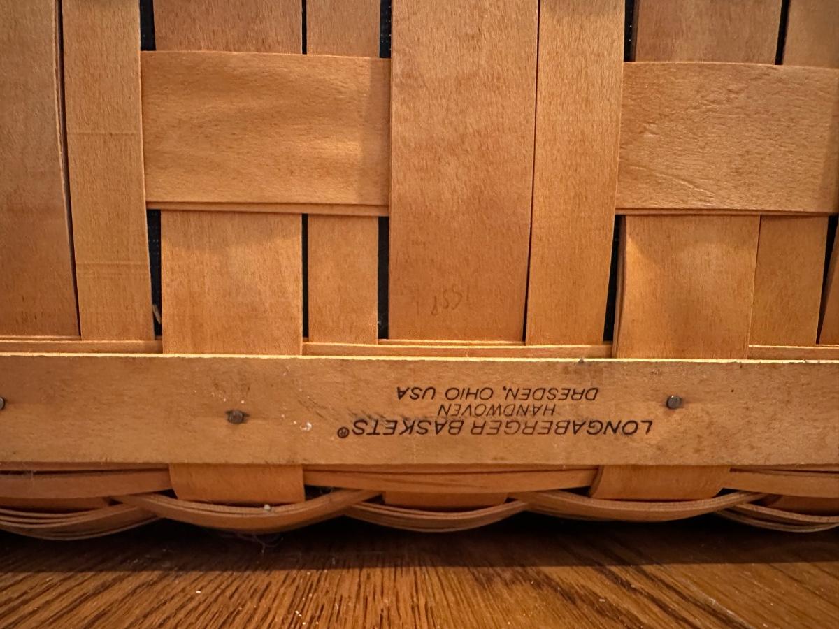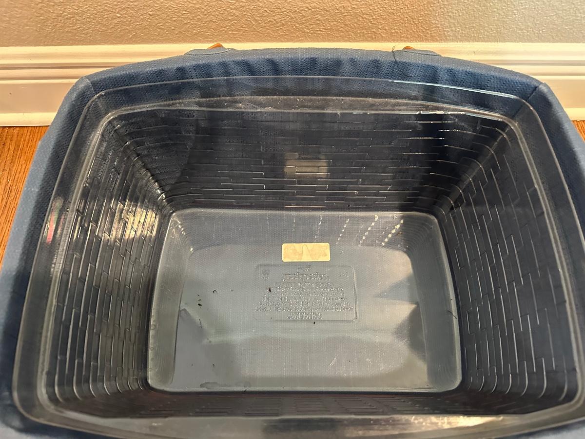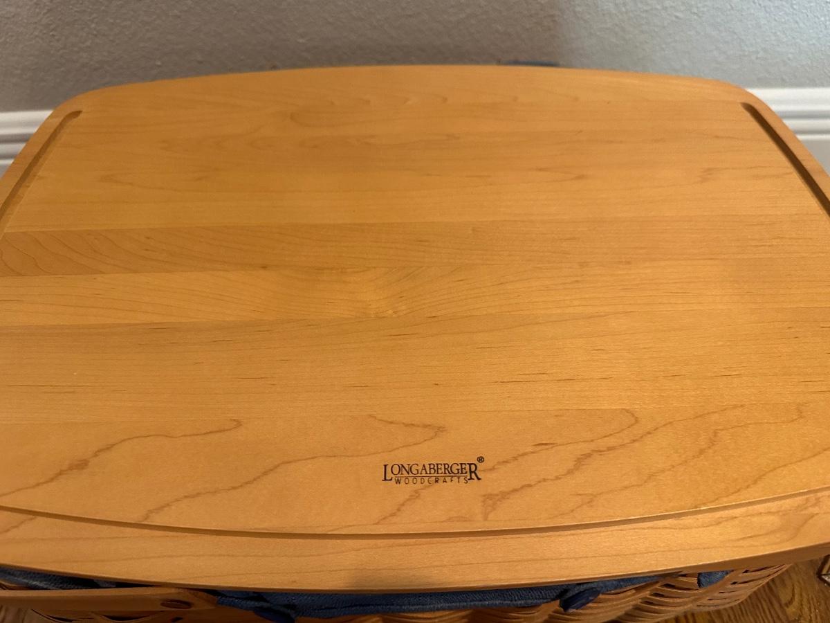 Large Longaberger Basket with Lid, Blue Fabric Liner & Divided Protector