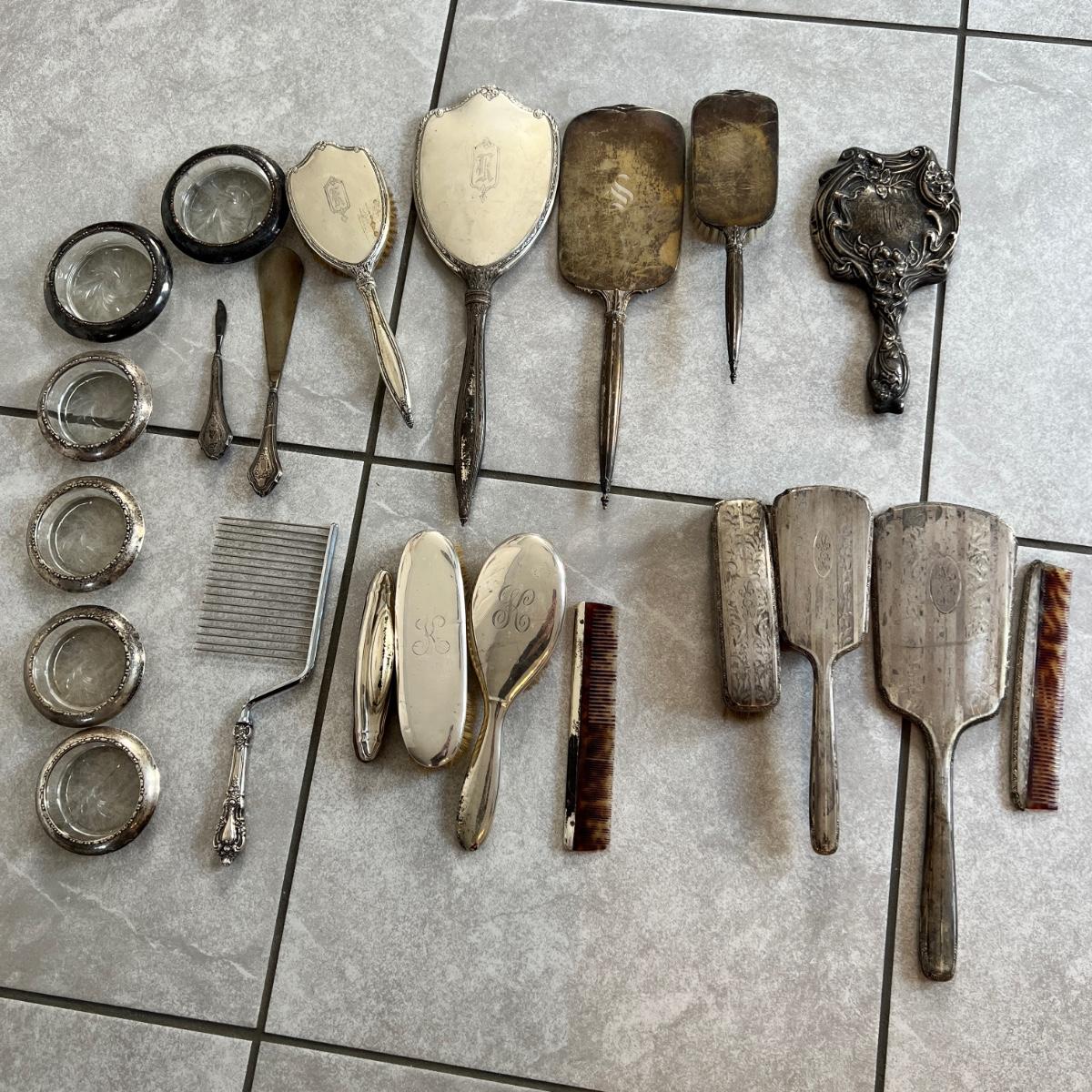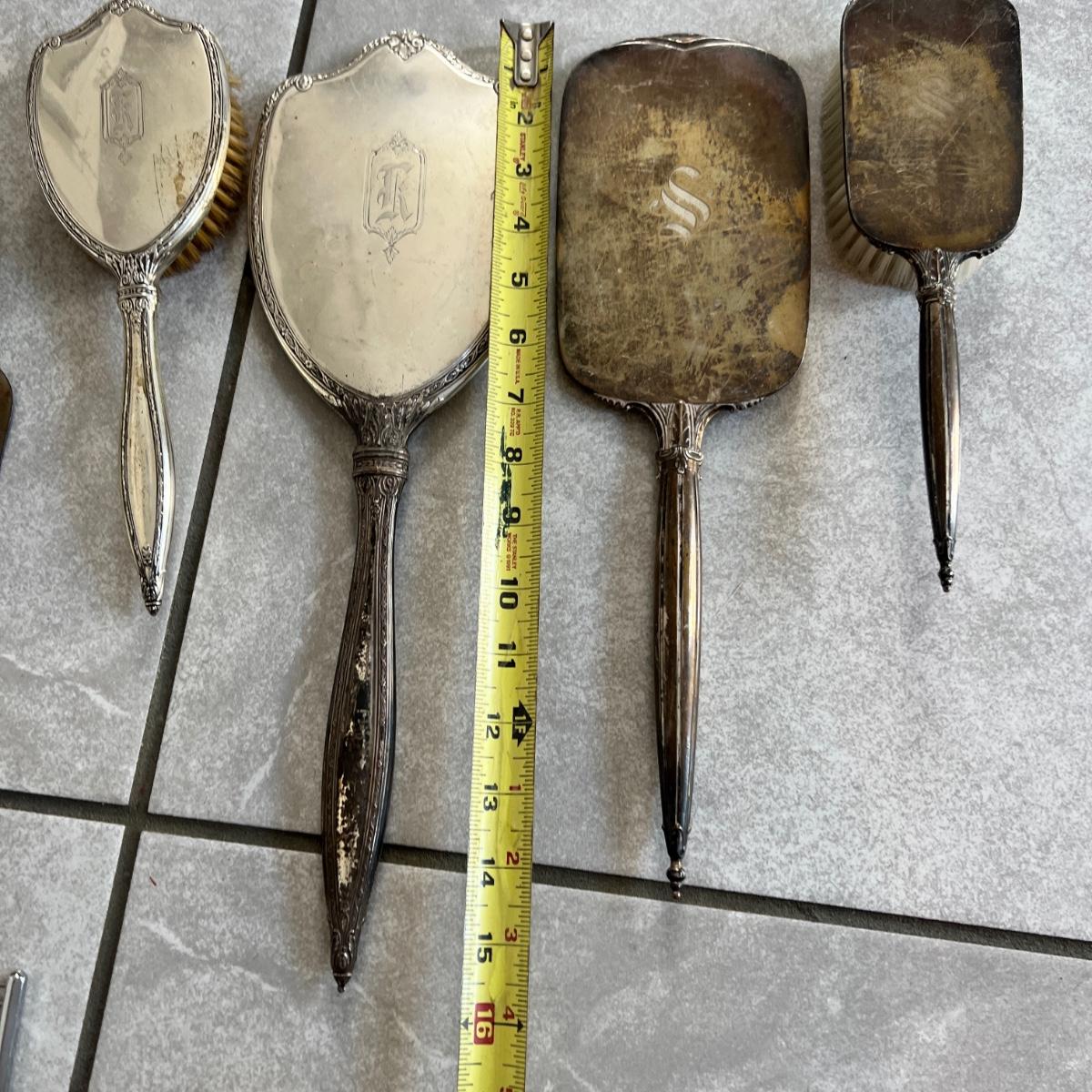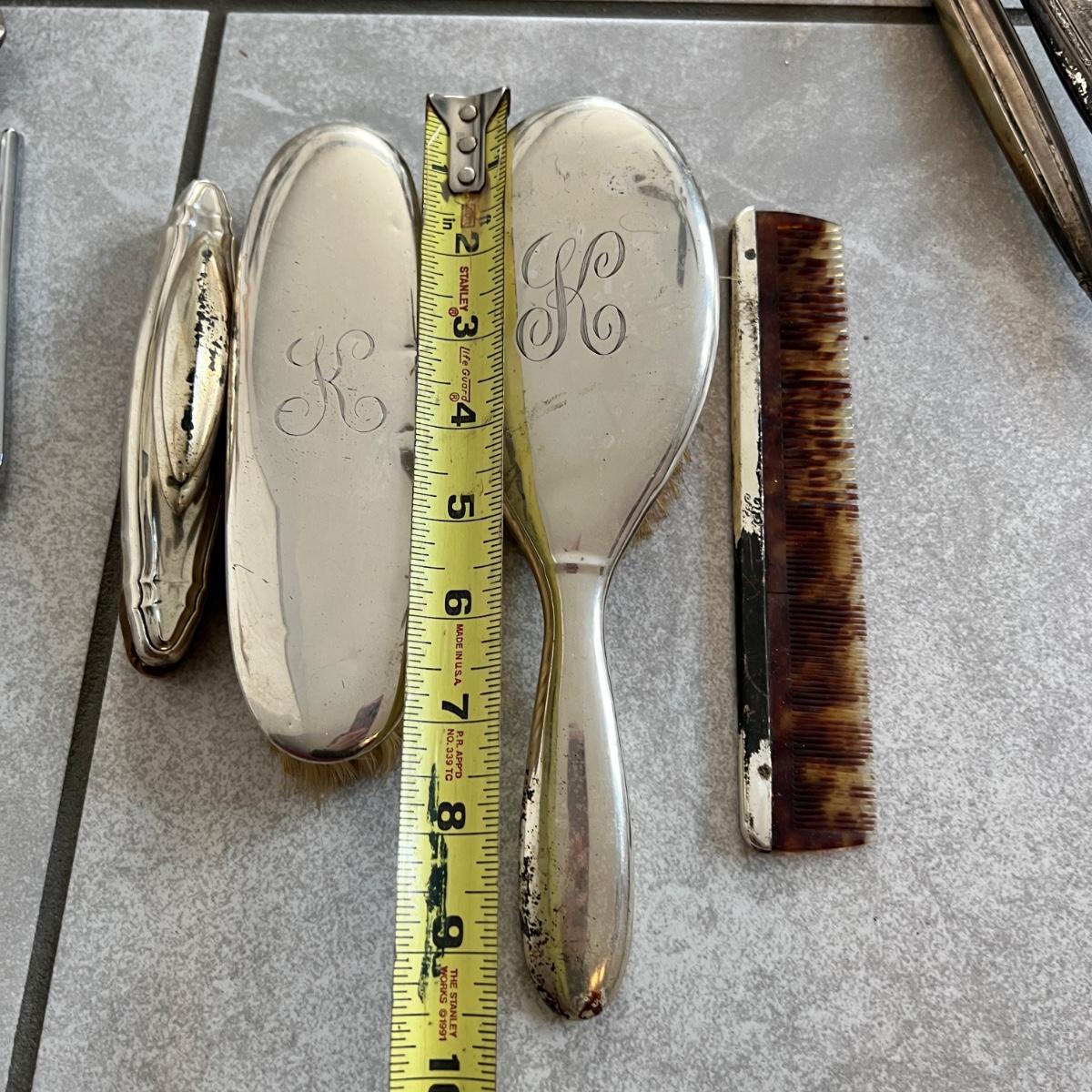 Multiple antique vanity sets plus miscellaneous antique sterling silver items. We did not weigh the lot since obviously many pieces are either sterling handled, contain glass, mirror ect. See all pics for measurements and hallmarks to determine value..