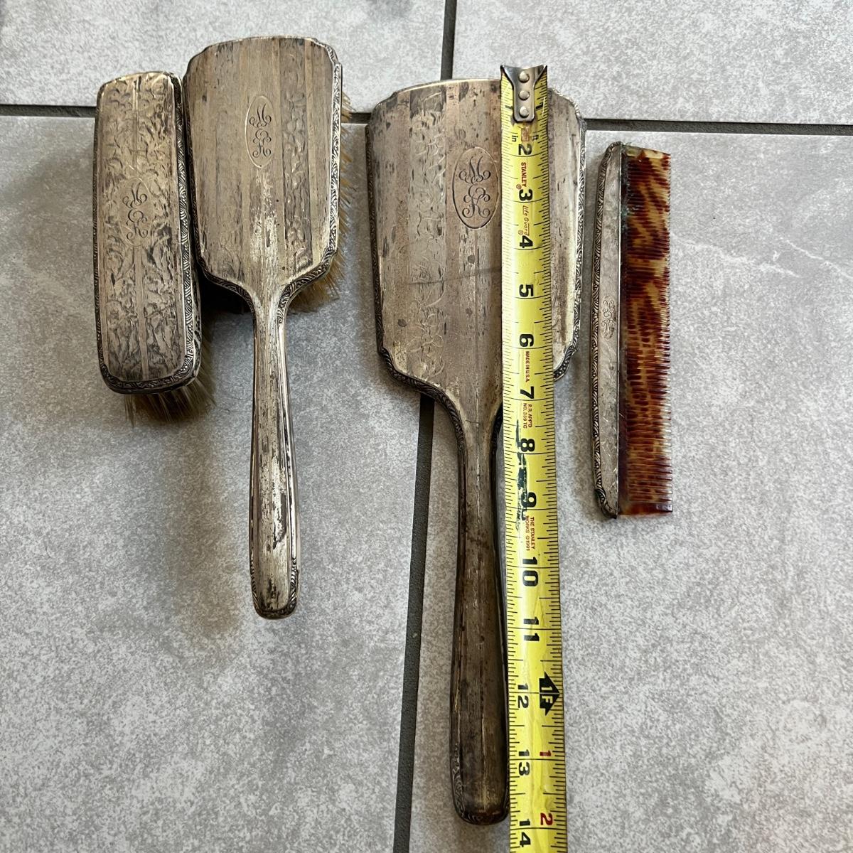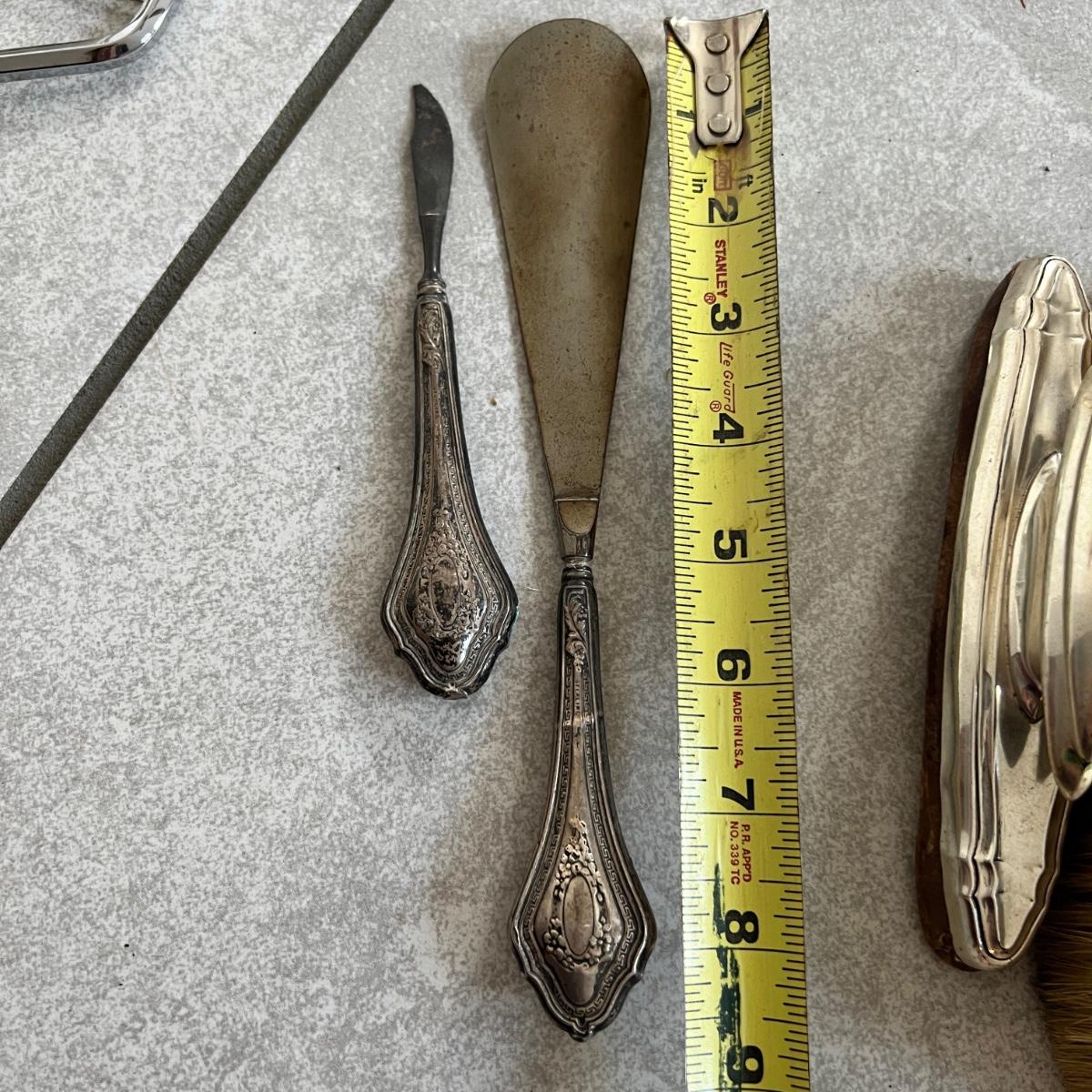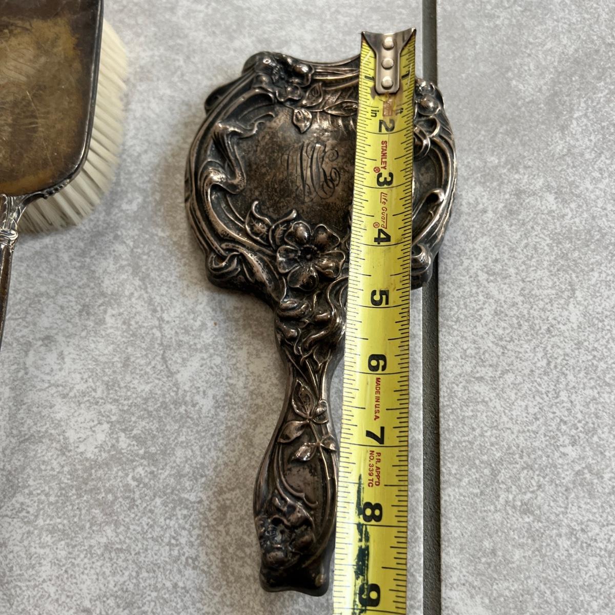 Multiple antique vanity sets plus miscellaneous antique sterling silver items. We did not weigh the lot since obviously many pieces are either sterling handled, contain glass, mirror ect. See all pics for measurements and hallmarks to determine value..