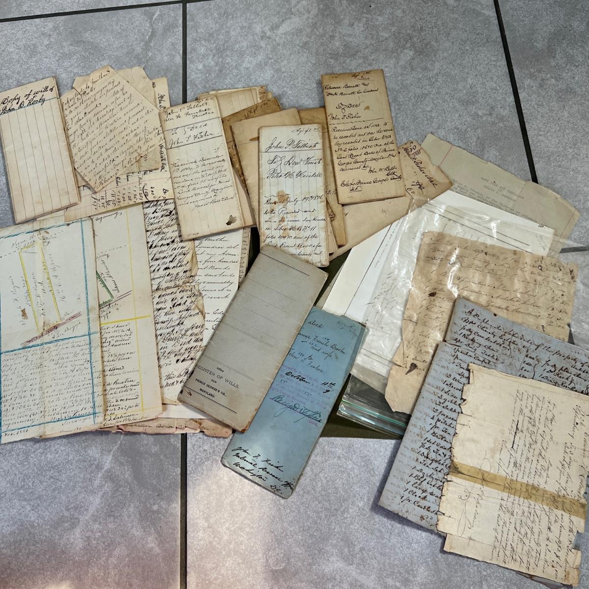 Amazing lot of ephemera dating as far back as 1812. Most are from the 1800's. See all pics for details. As is.