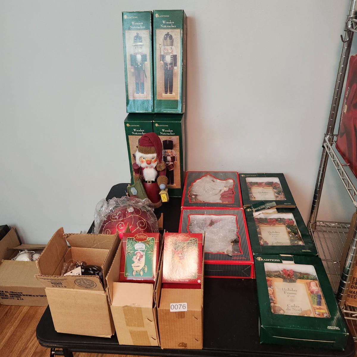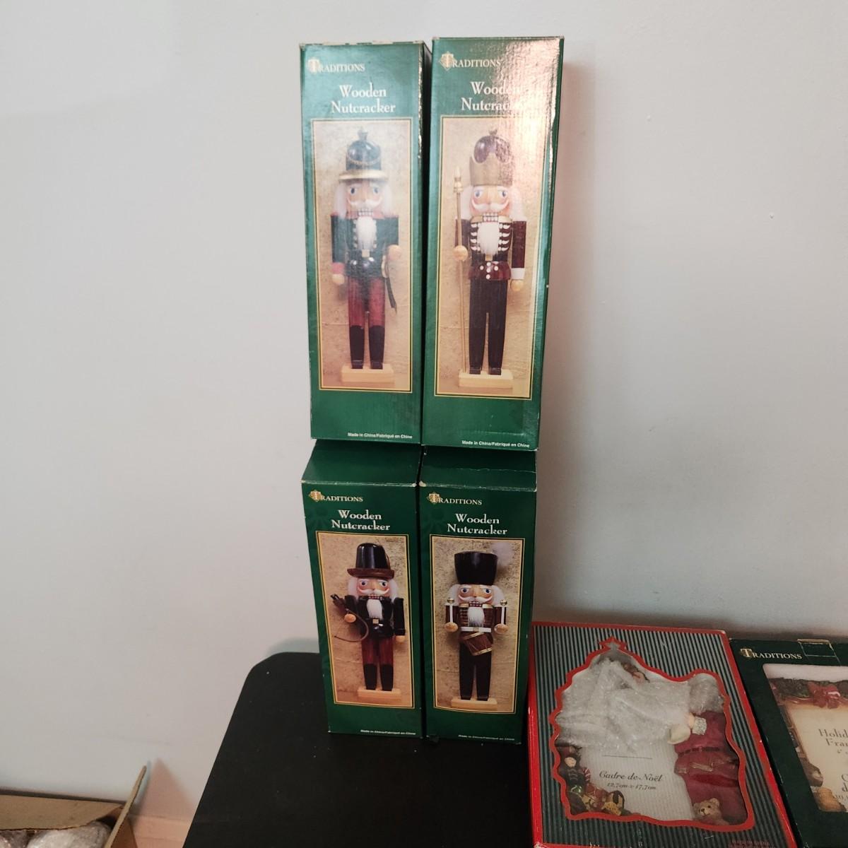 Large lot Christmas Holiday Decor Nutcrackers ,Holiday Frames ,Heirloom Collection Ornaments ,Glass Friendship Ball