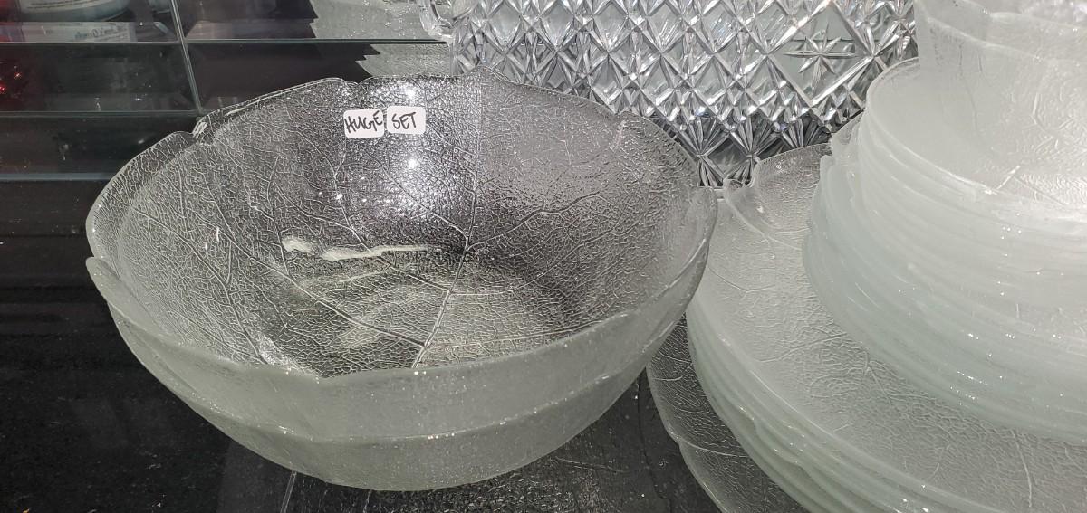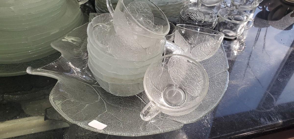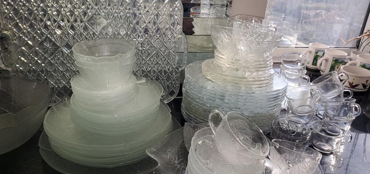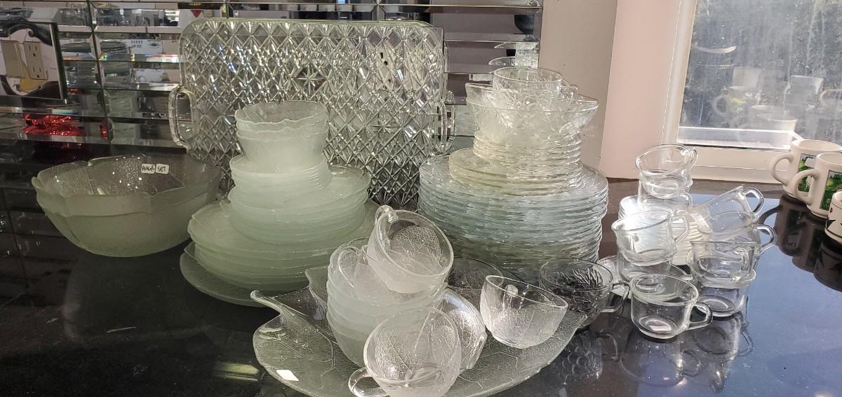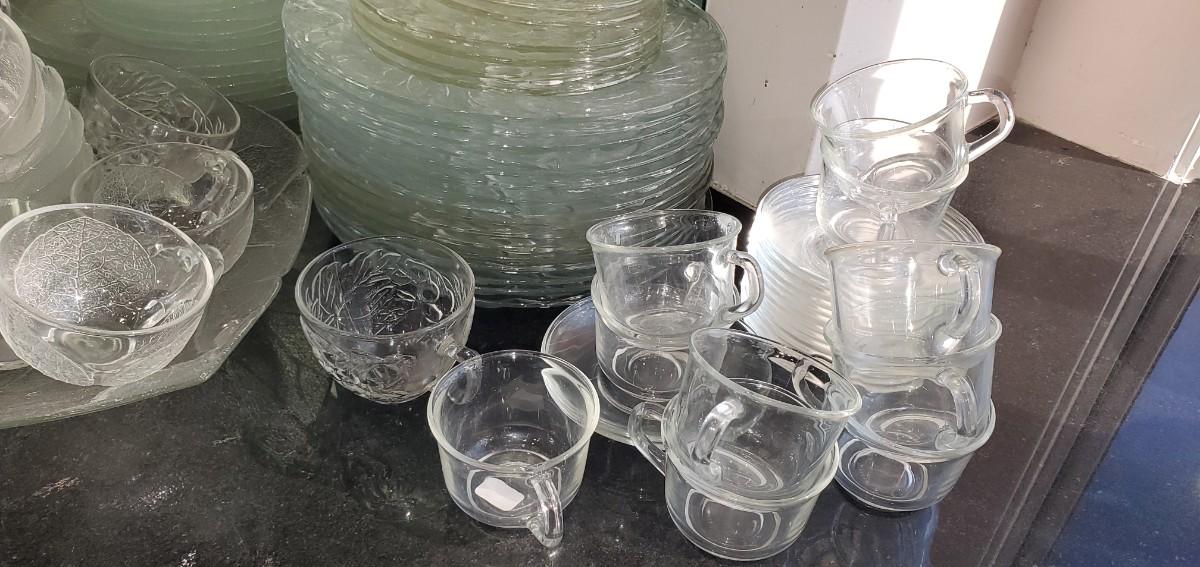 2 or 3 sets of different clear glass here. Plastic tray.