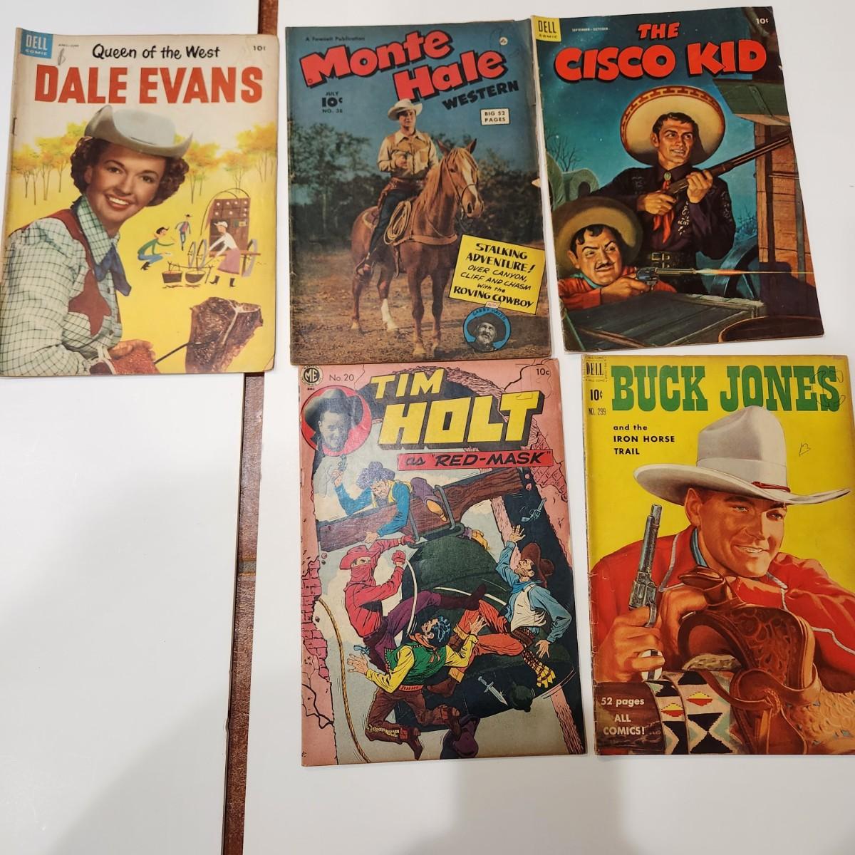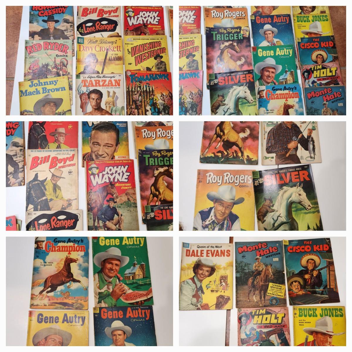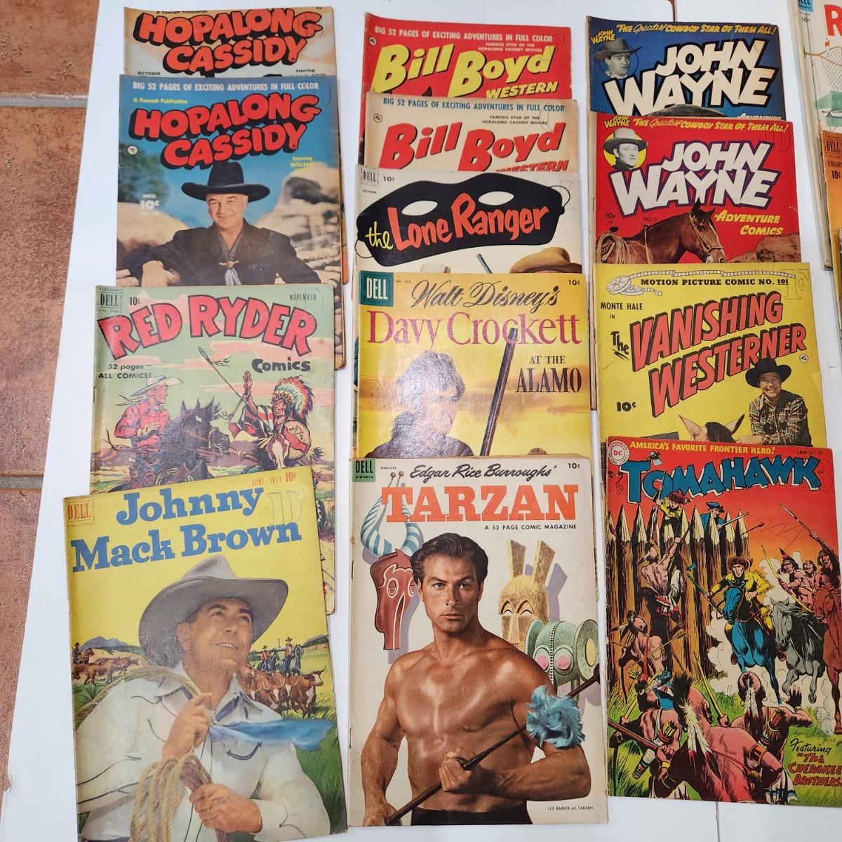 John Wayne Buck Jones Tim Holt, Monte Hale, Dale Evans, Gene Autry, Roy Rogers, Trigger Bill Boyd Papa Hopalong Cassidy,Tomahawk Tarzan, David Crockett Johnny mack Brown, Red Rider.