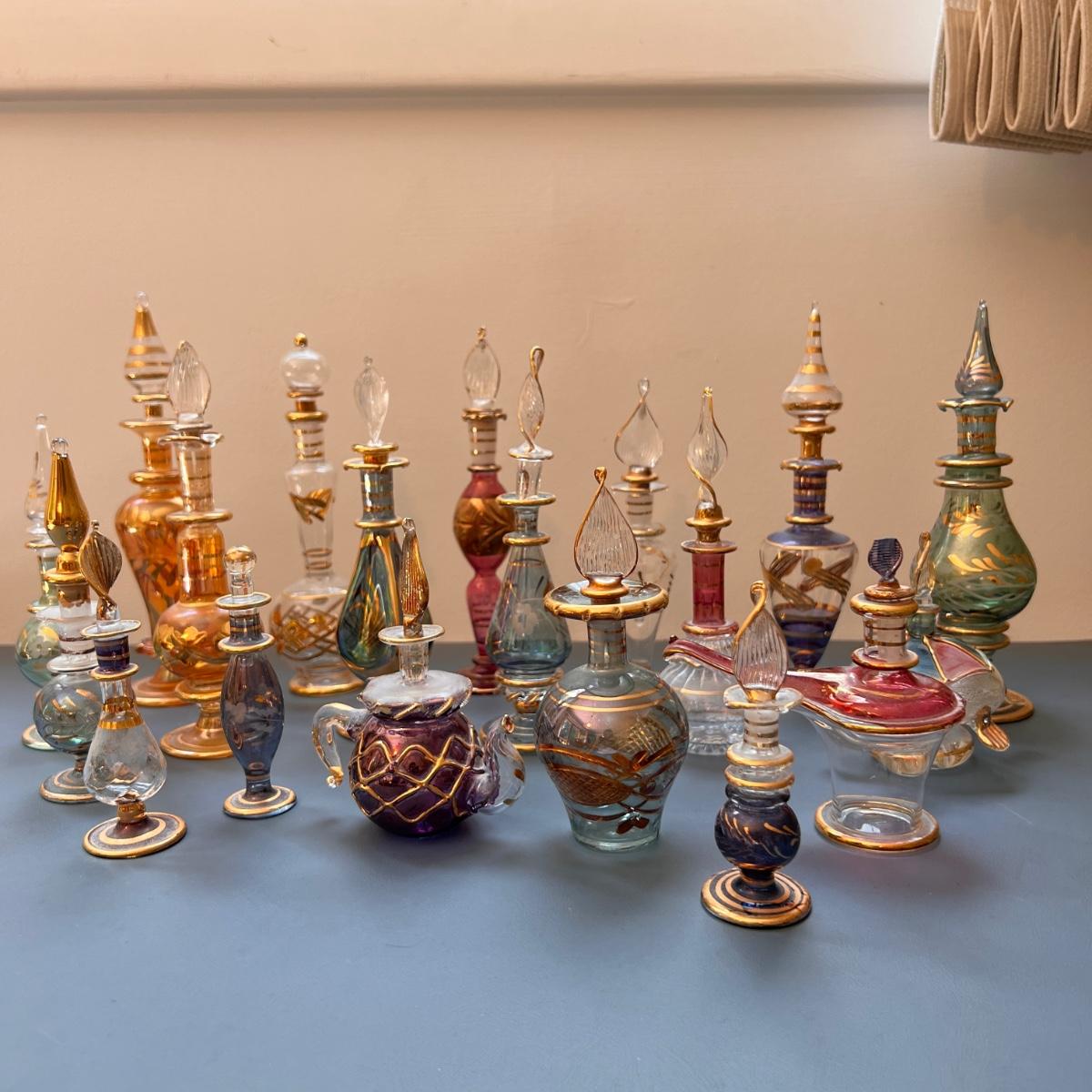 Large Lot Vintage Egyptian Blown Glass Perfume Bottles