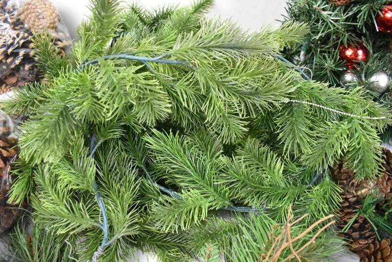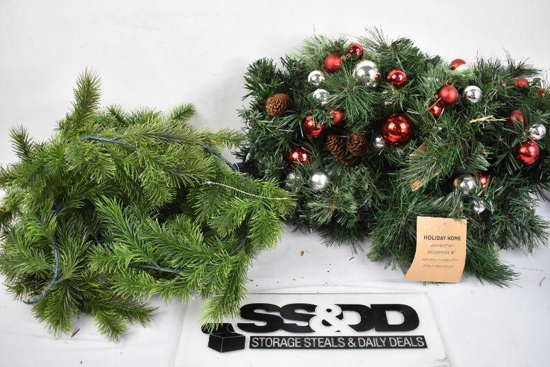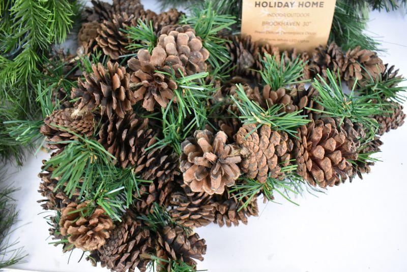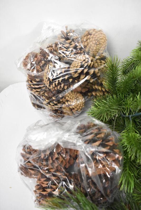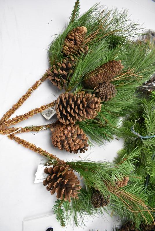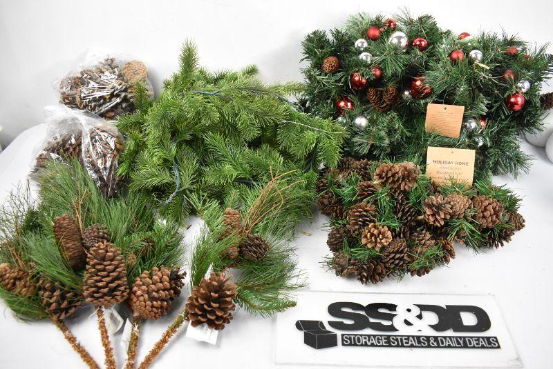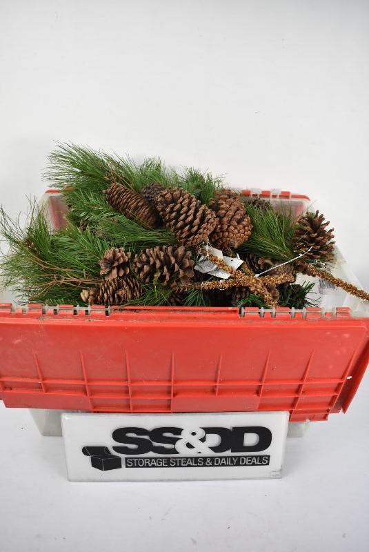 Large Lot Evergreen & Pinecone Holiday Decor with Clear & Red Bin (includes bin)