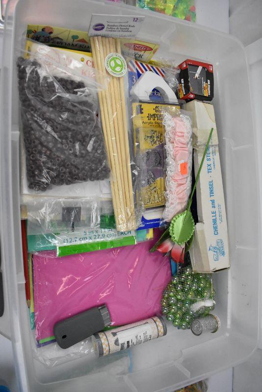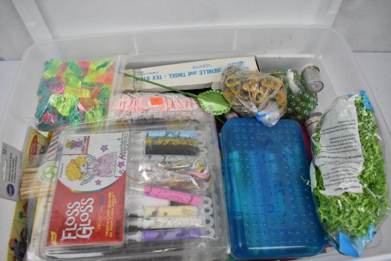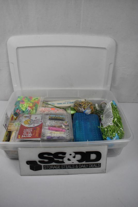 Large Lot Misc Craft Grab Bag in Clear Bin w/ White Lid