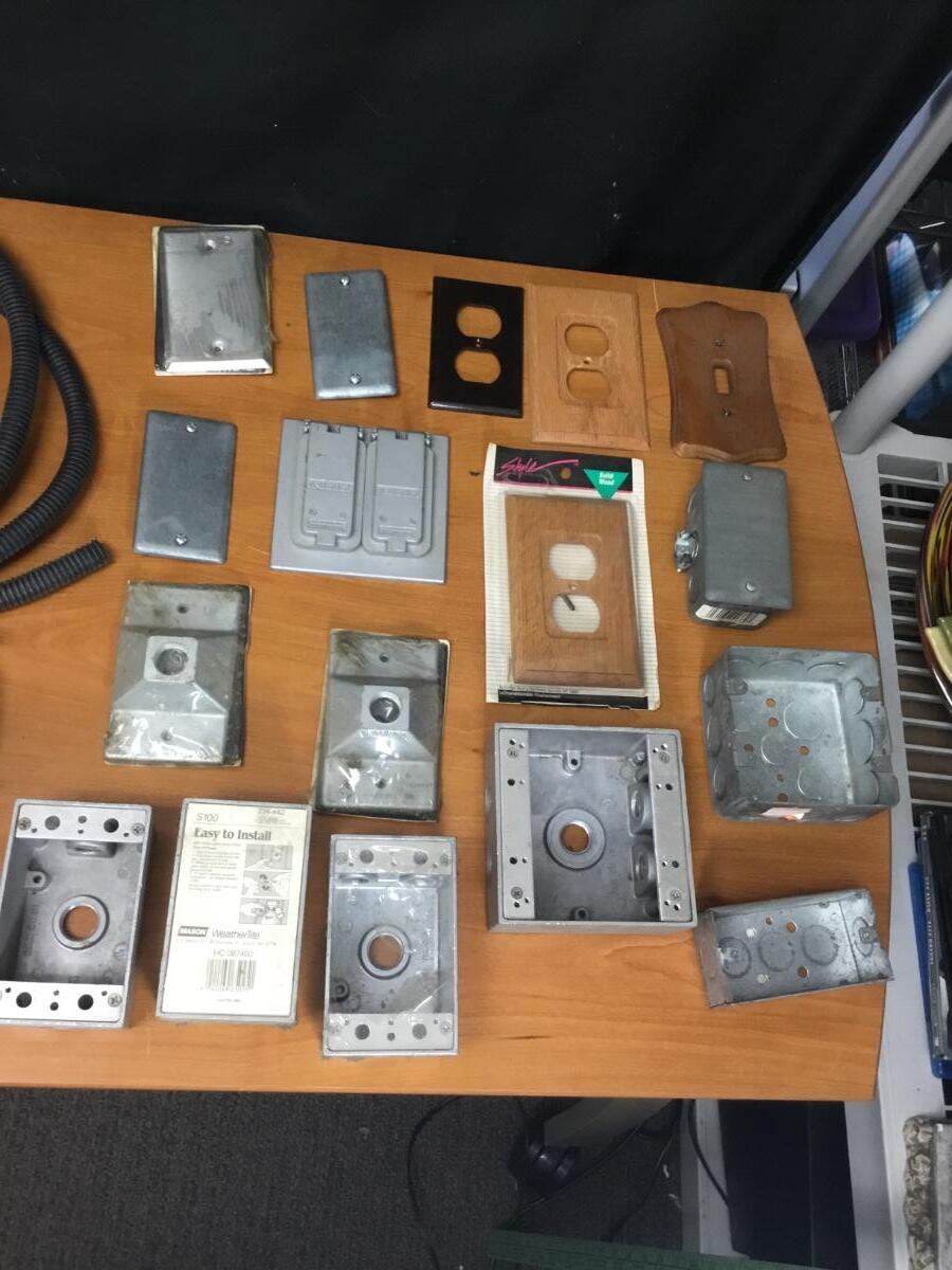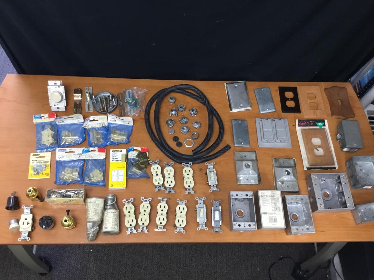Variety Mixed Lot of Household Hardware. Cabinet pulls, electrical outlets, bolt locks, and more. Great for the handman.