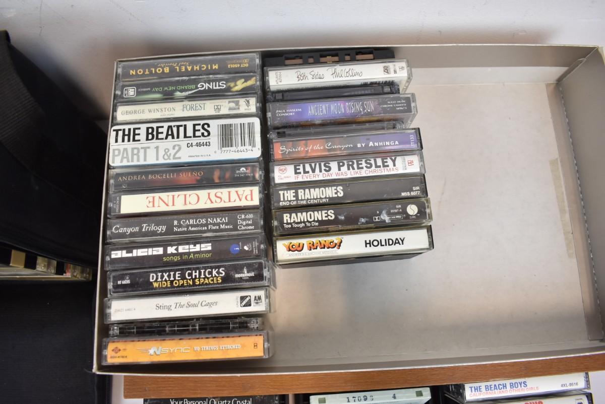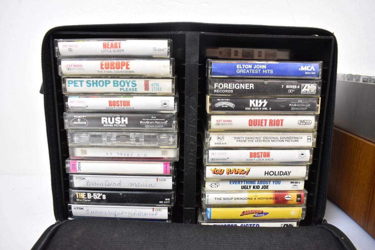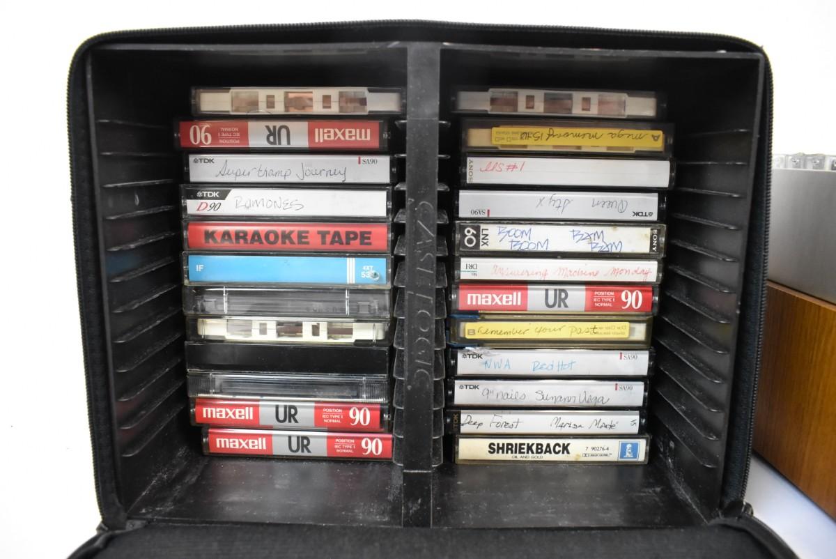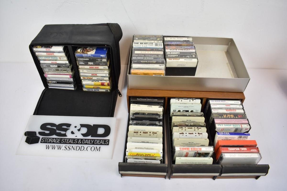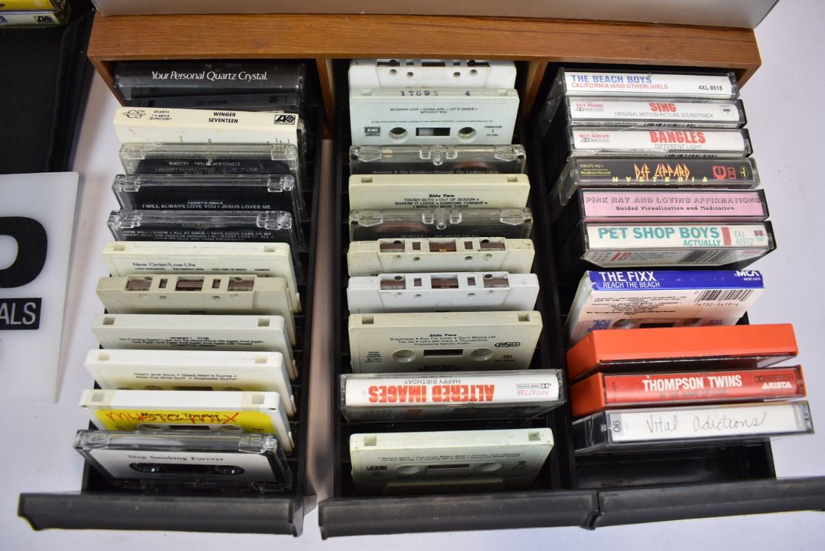 Large Lot Music Cassette Tapes: 50+ with drawer case & case logic