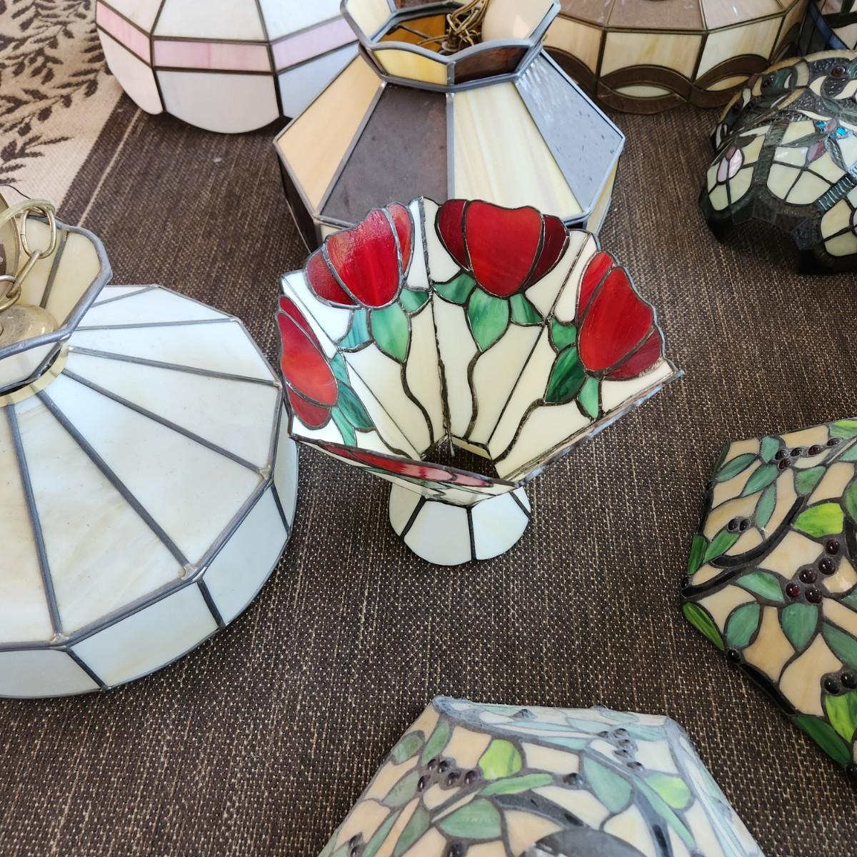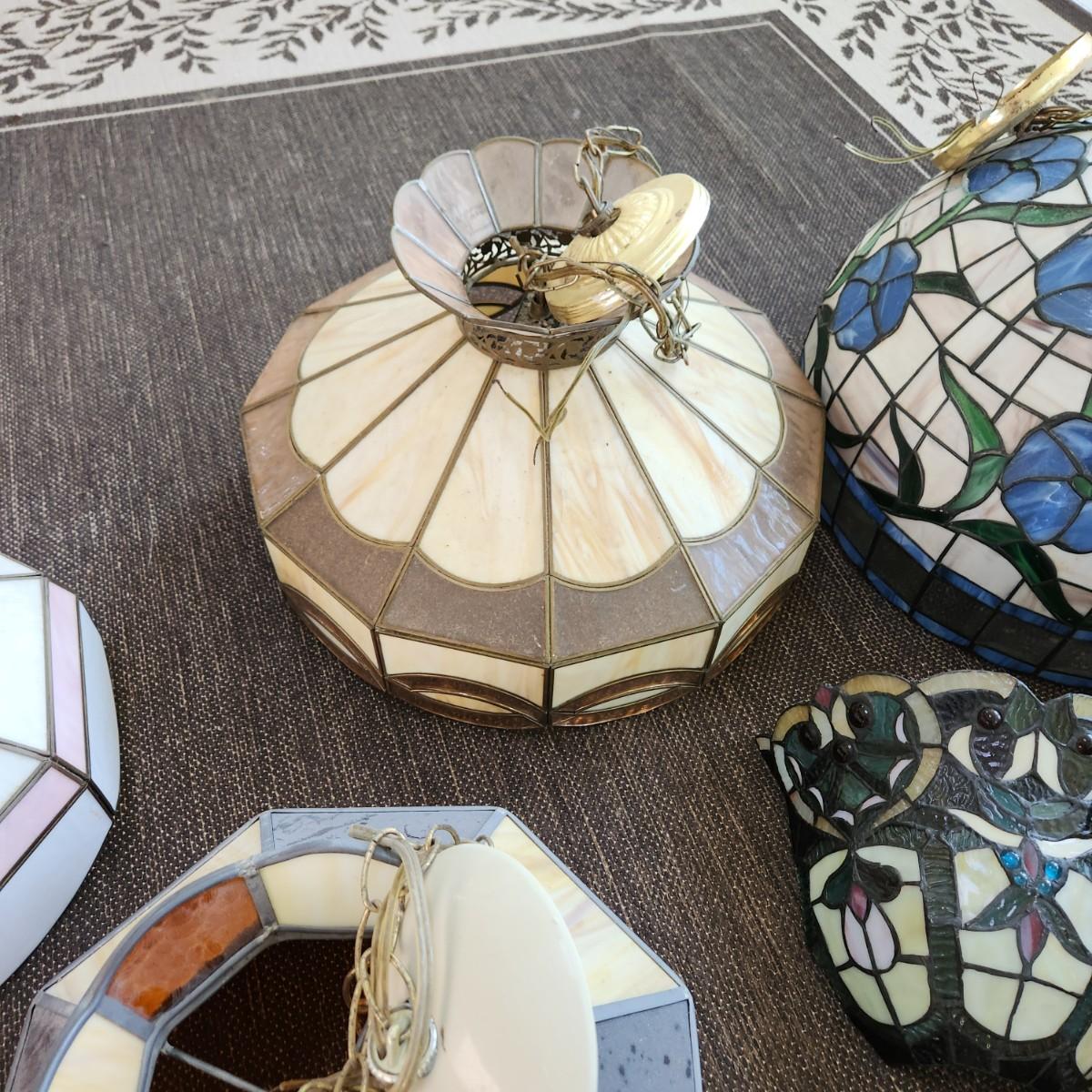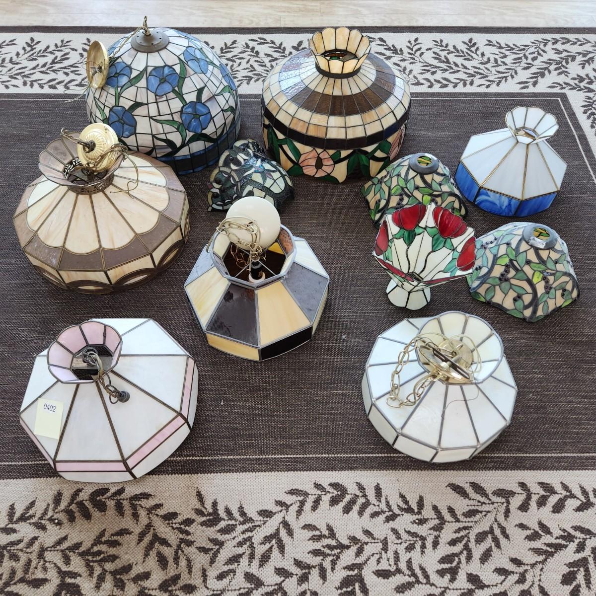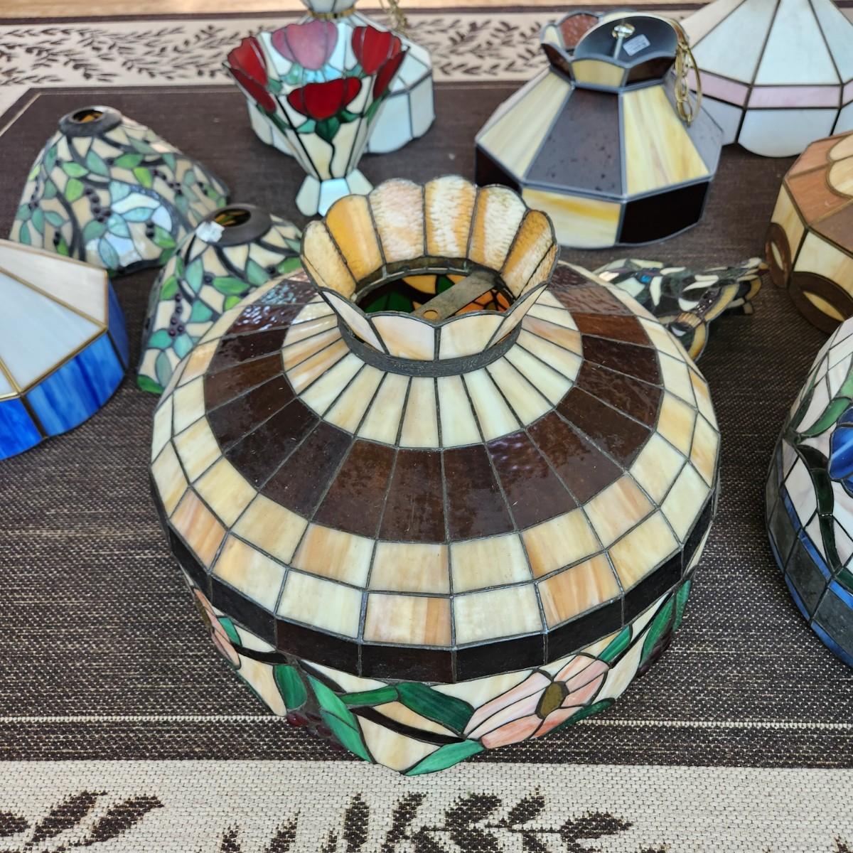 Large lot of 10 Stained Glass Hanging Lamp Shades