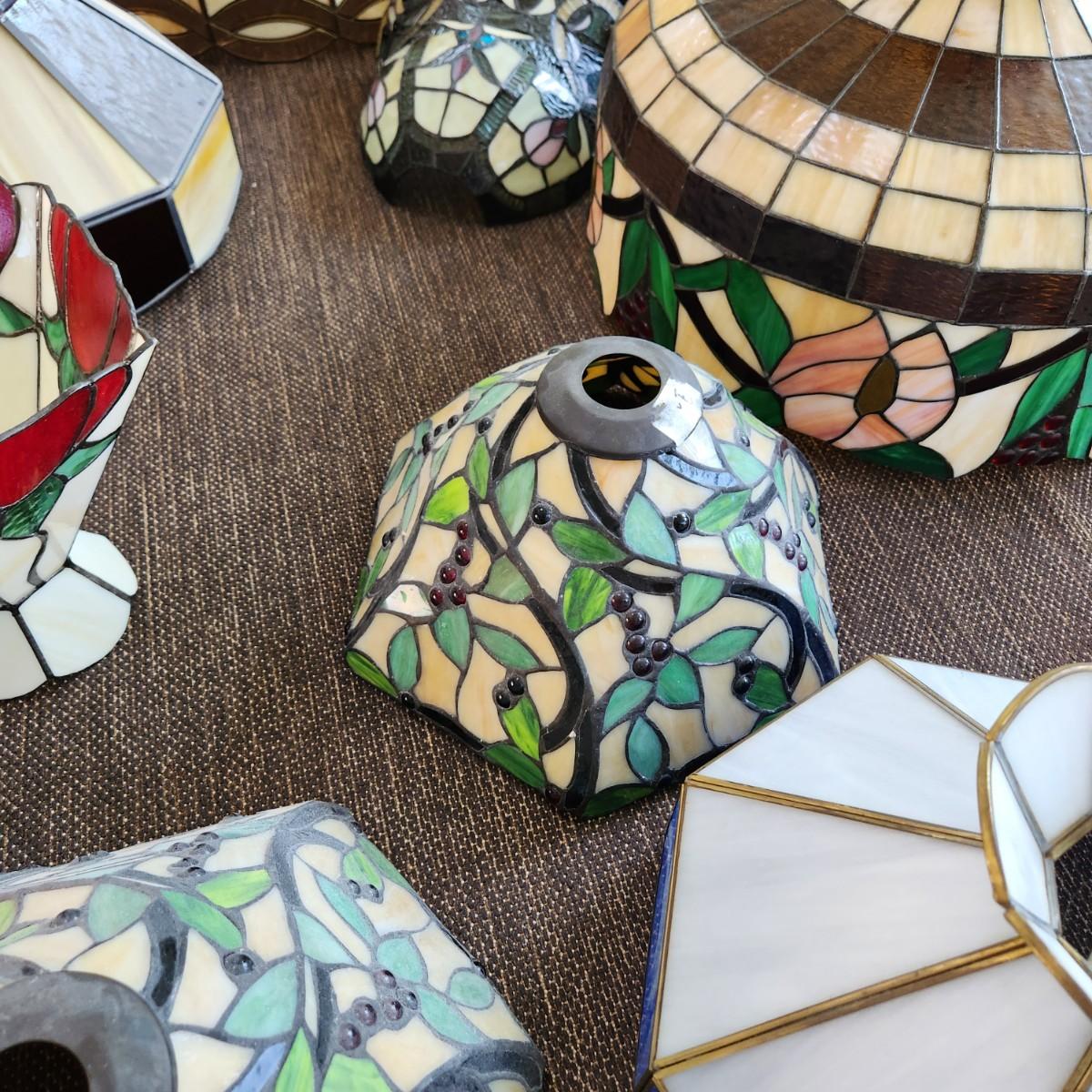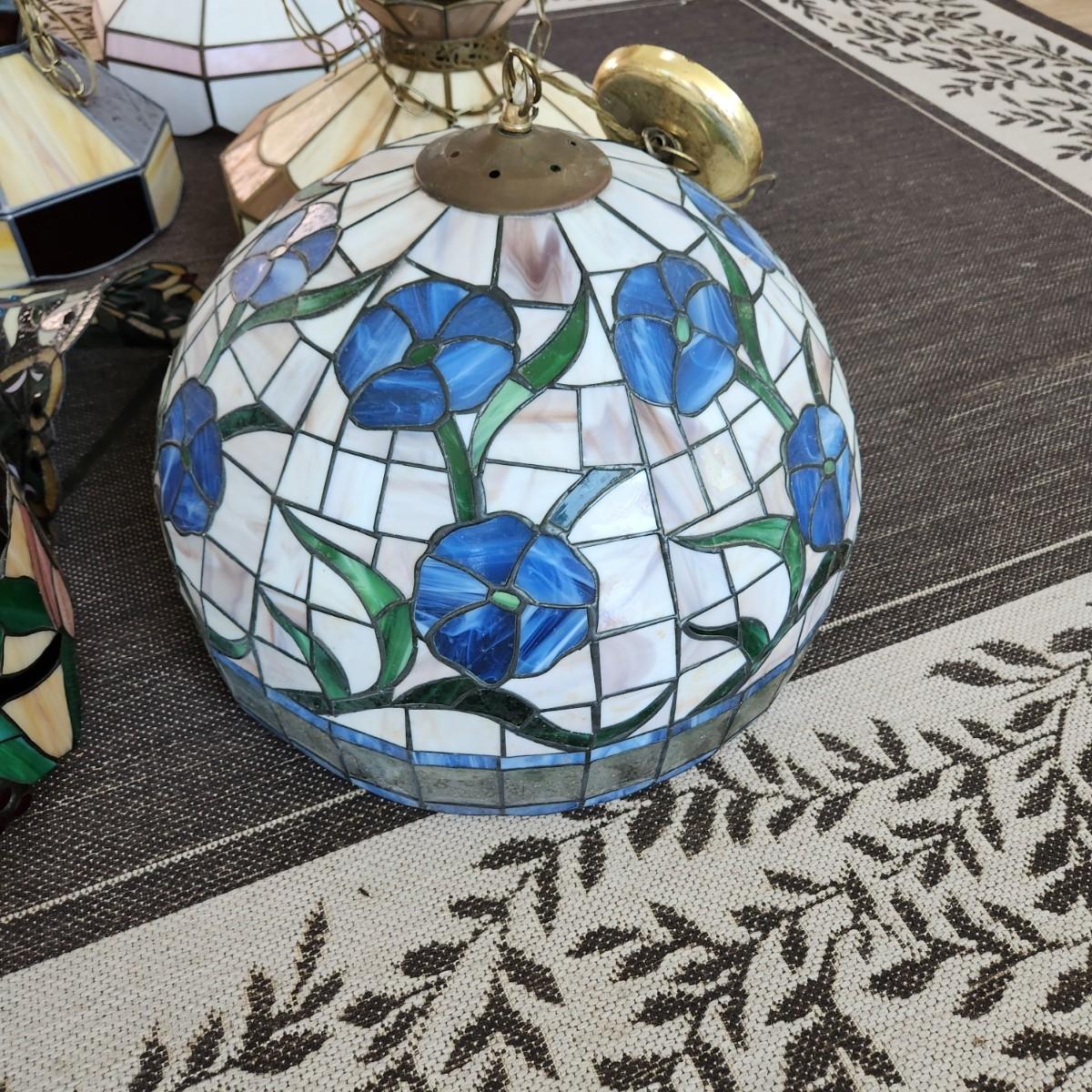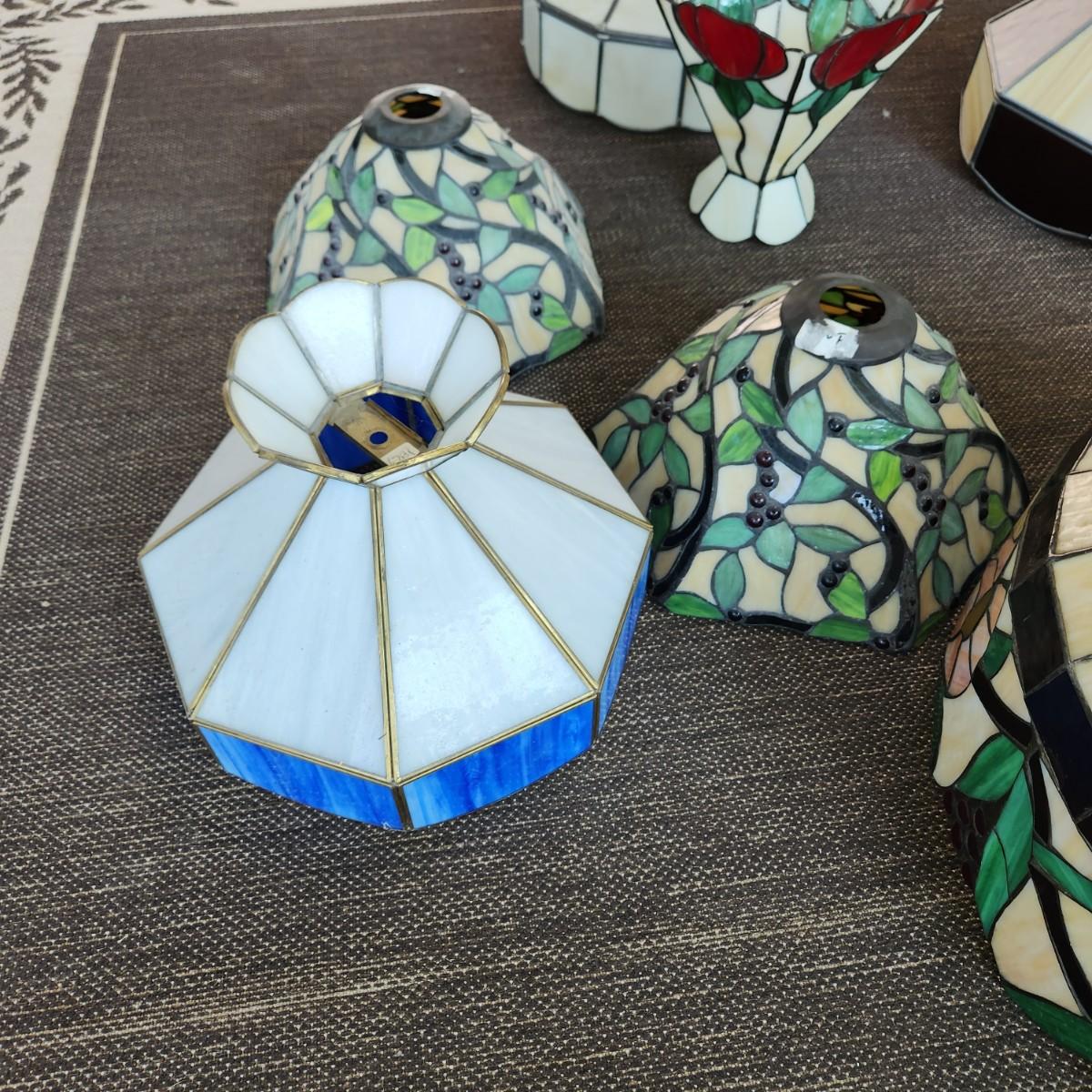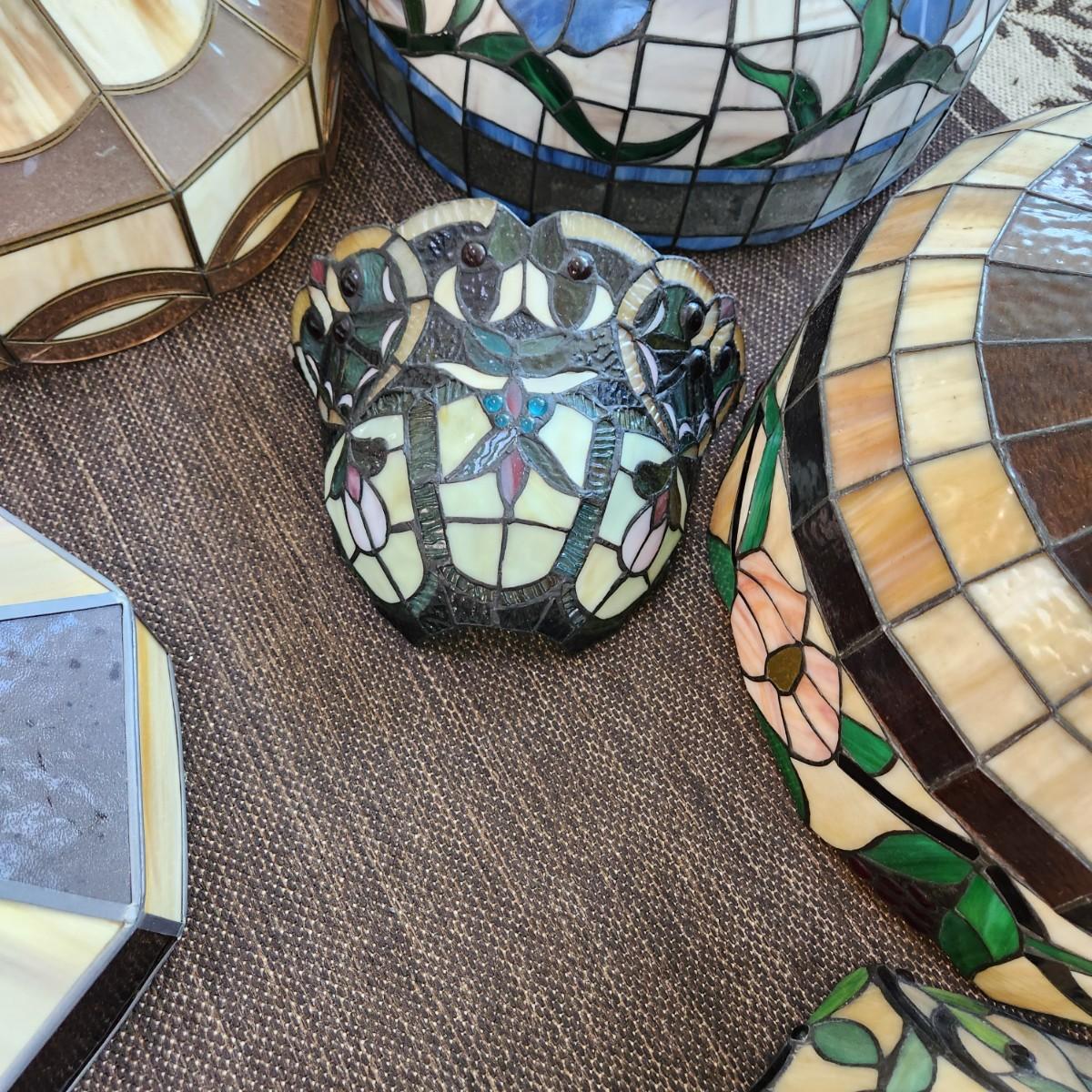 Large lot of 10 Stained Glass Hanging Lamp Shades