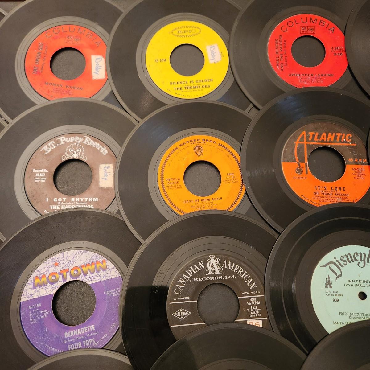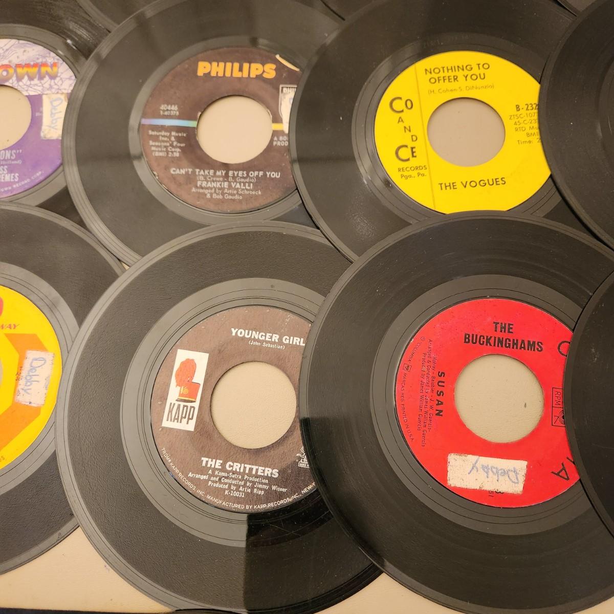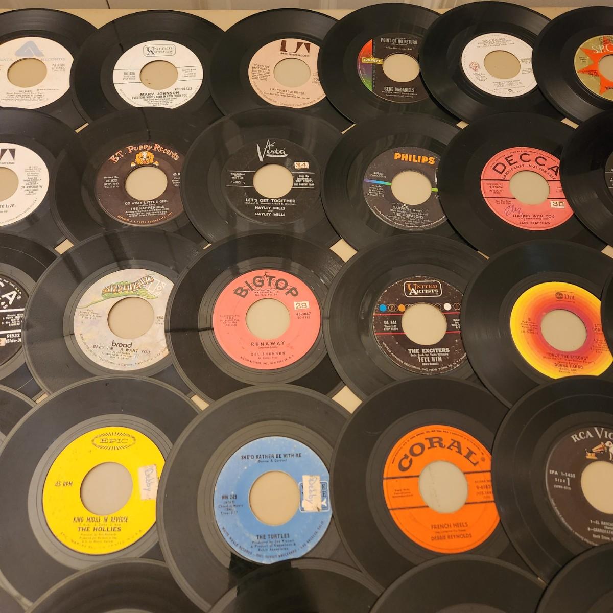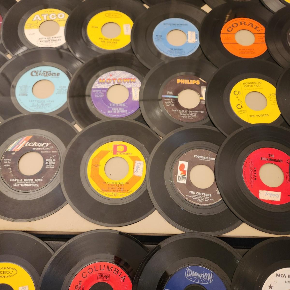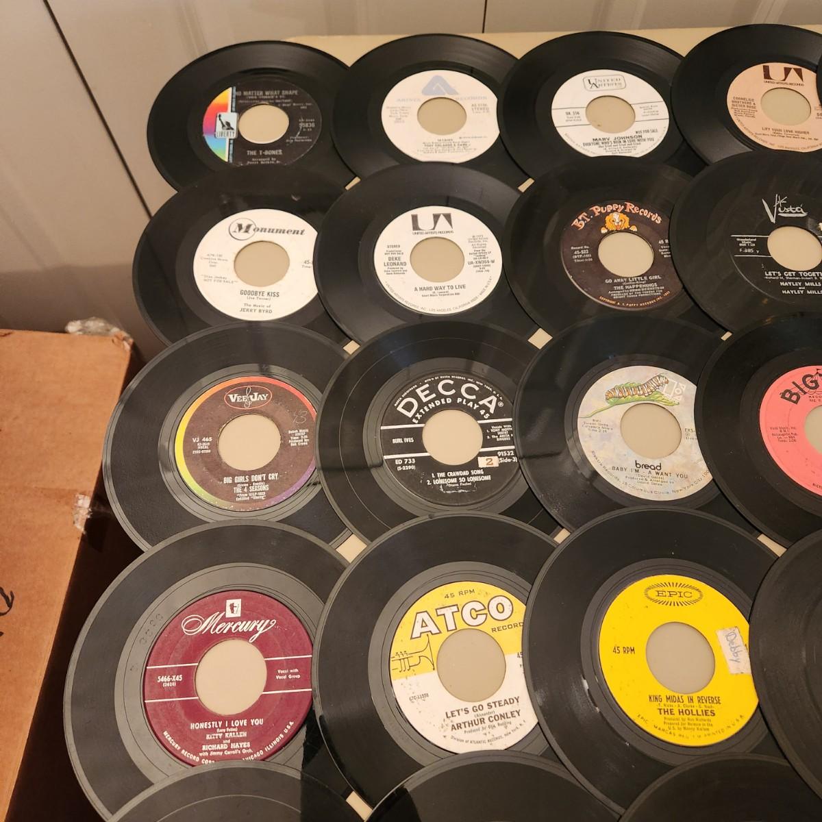 Large Lot of 45 RPM Records Jerry Byrd the 4 Seasons The Hollies, Diana Ross, Bread, Four tops, Supremes, Turtles