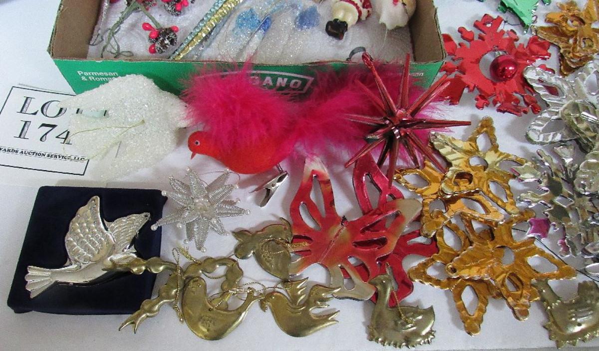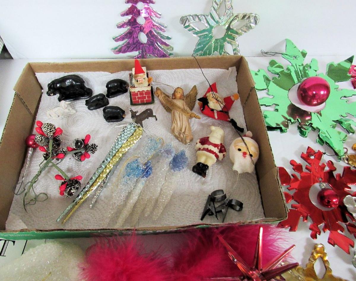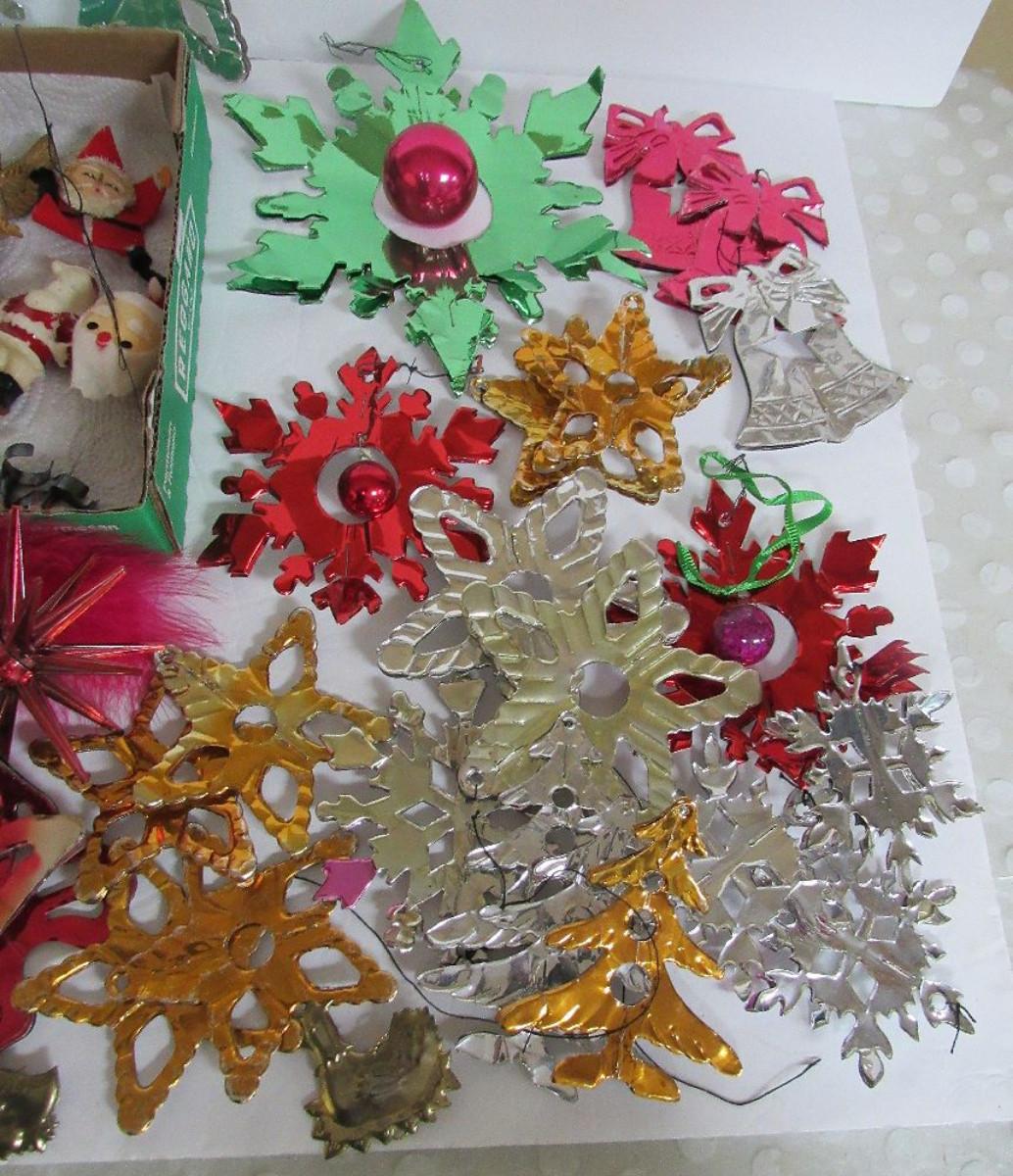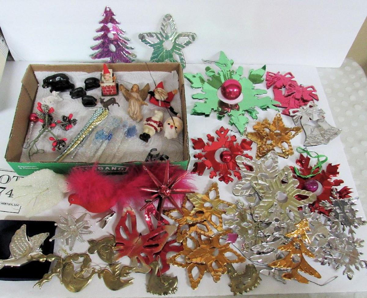 Large Lot of Christmas Ornaments, Foil, Metal, Plastic
