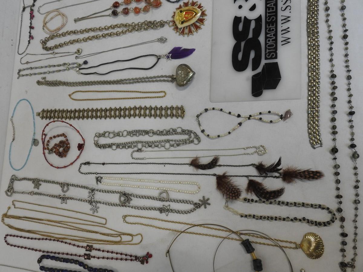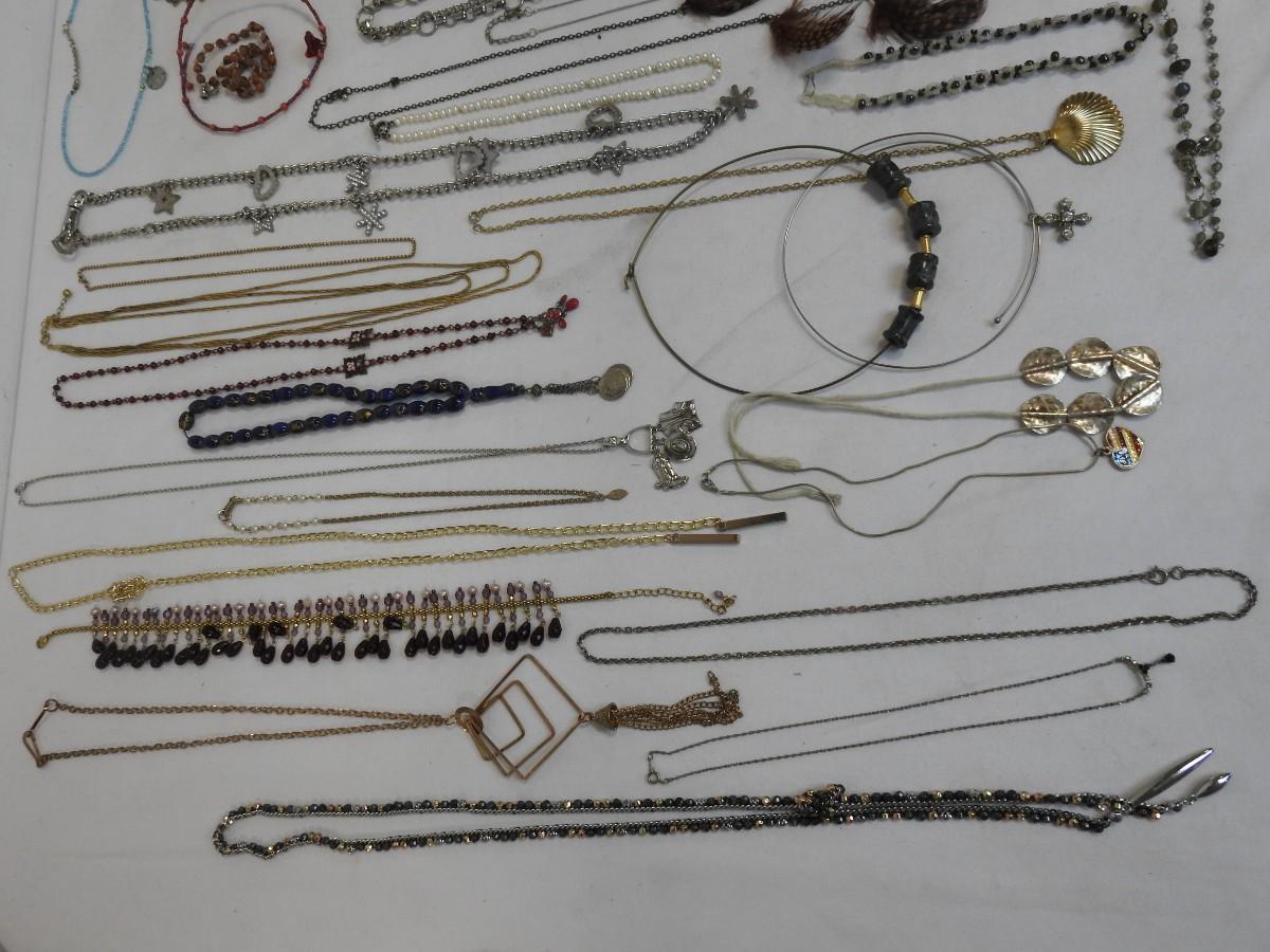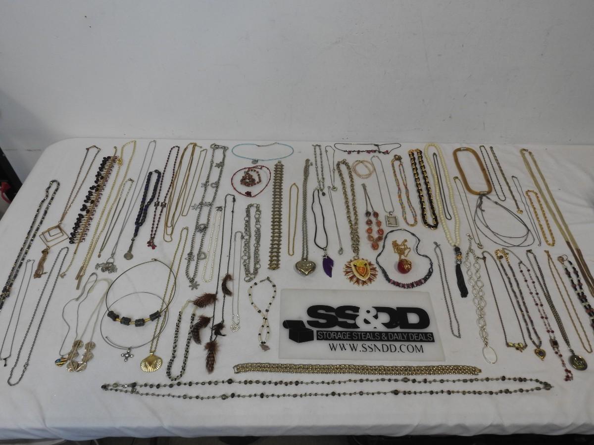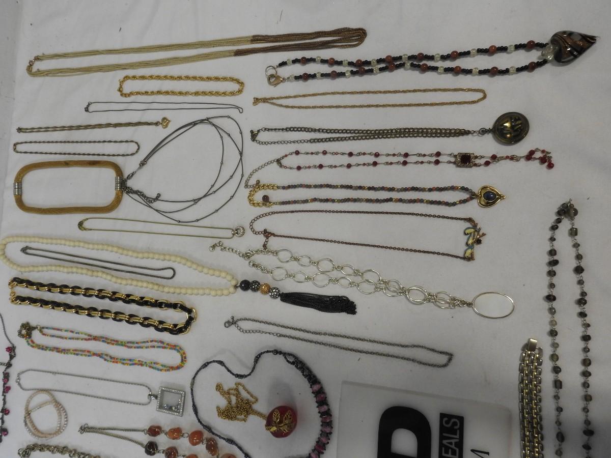 Large Lot of 63 Costume Jewelry Necklaces: Feathers, Beads, Casual, Formal