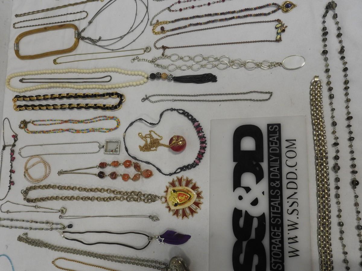 Large Lot of 63 Costume Jewelry Necklaces: Feathers, Beads, Apple, Casual, Formal